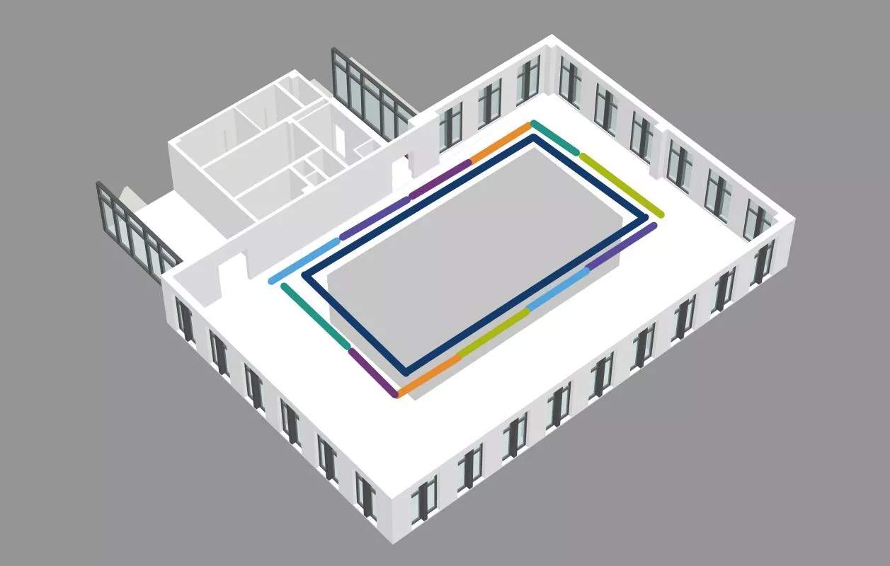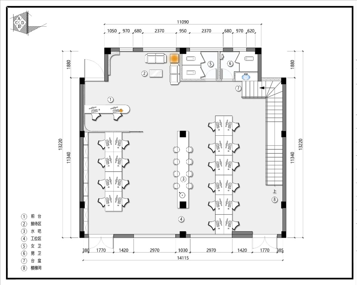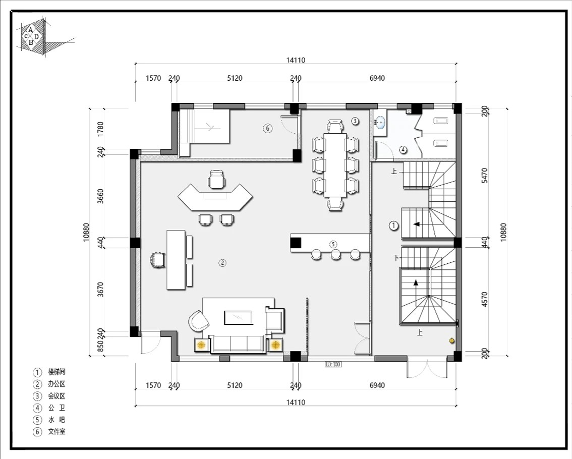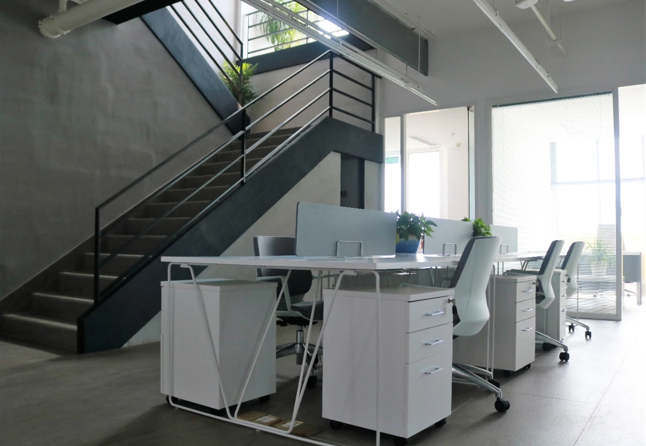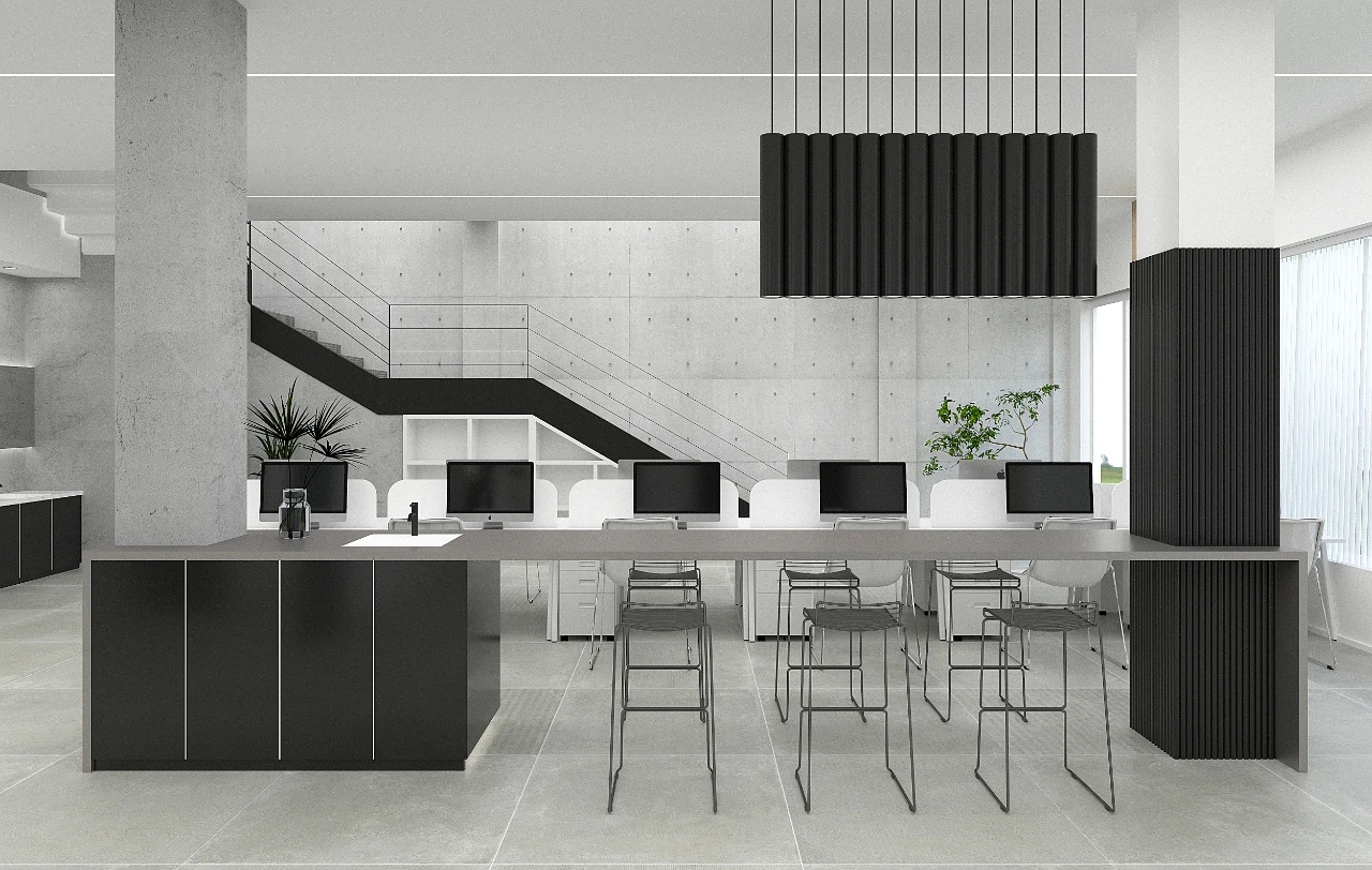 造型吊顶与地面色块相互呼应,轻松有趣的气质穿梭在人员协作之间,中性色彩办公家具在细节上增加耐用和降低视觉刺激导致的疲劳感。真正舒适的空间做到与功能需求一致,提供给使用者专心的设施和敏捷的思路。