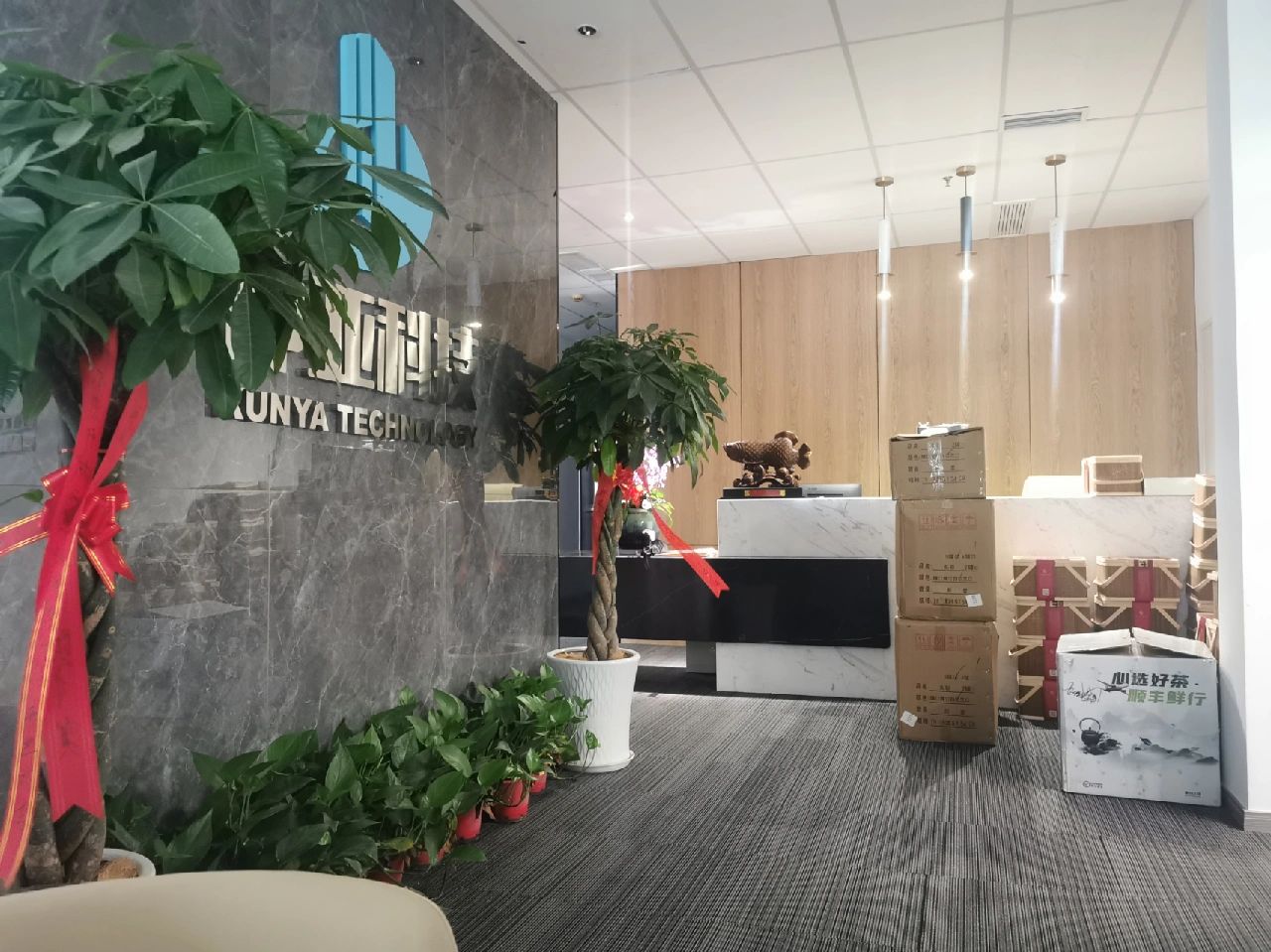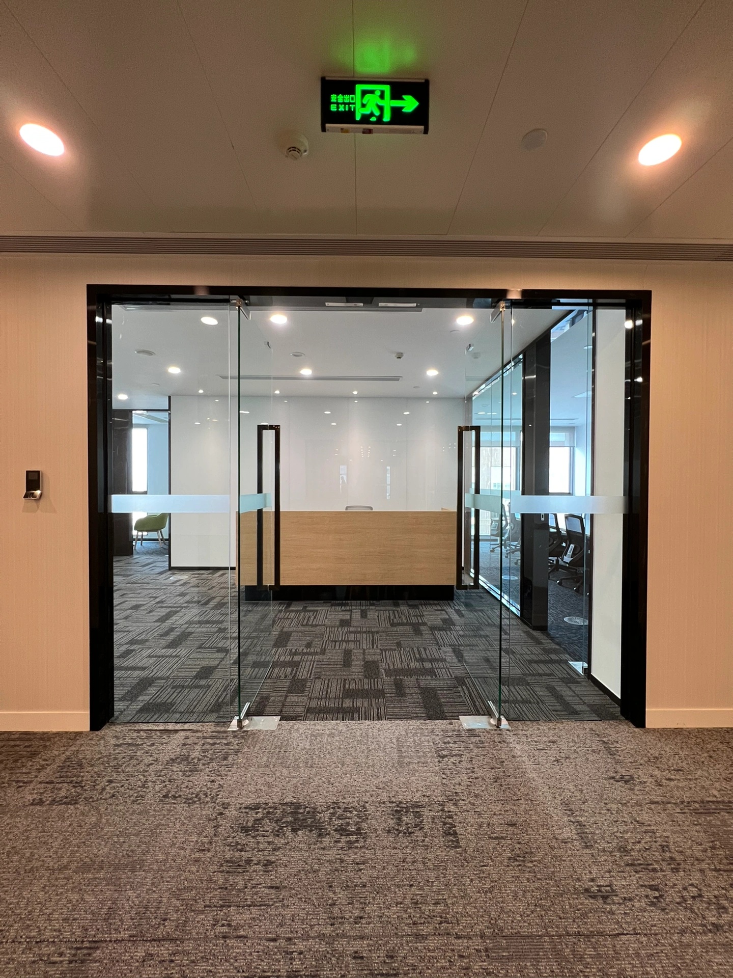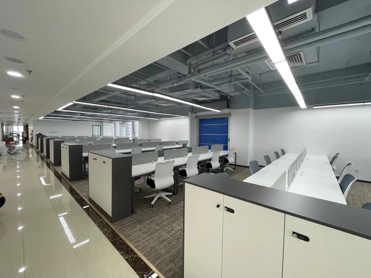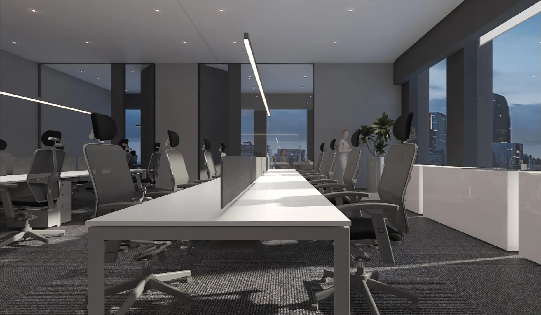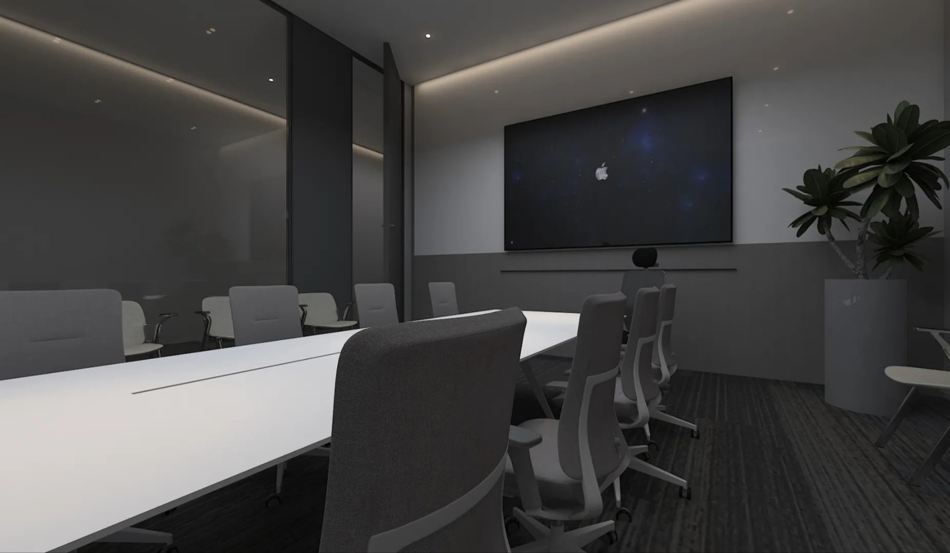 前台桌子用了亚克力的材质,结合暗藏线性灯,从前台开始就营造一种现代化的科技办公氛围
