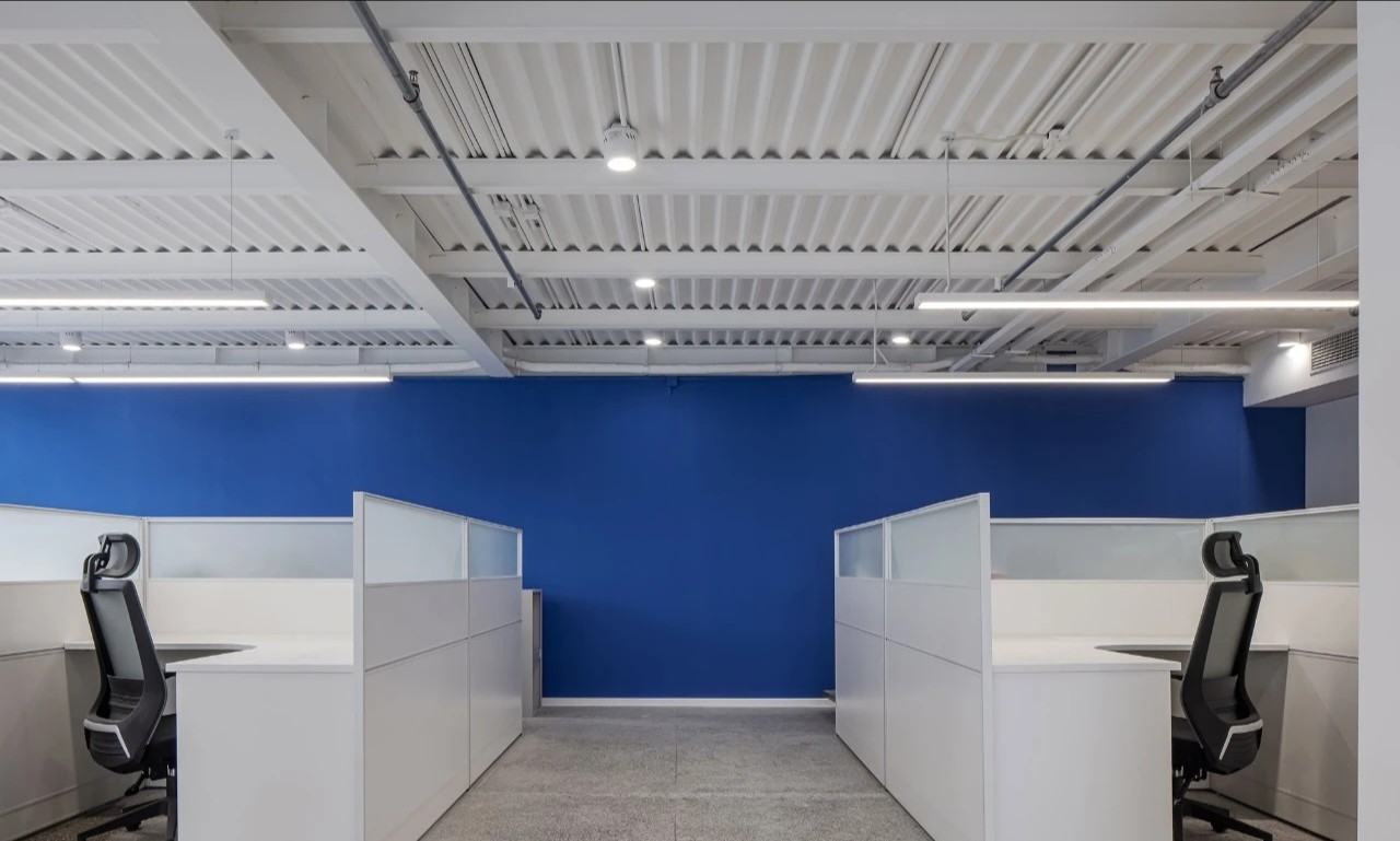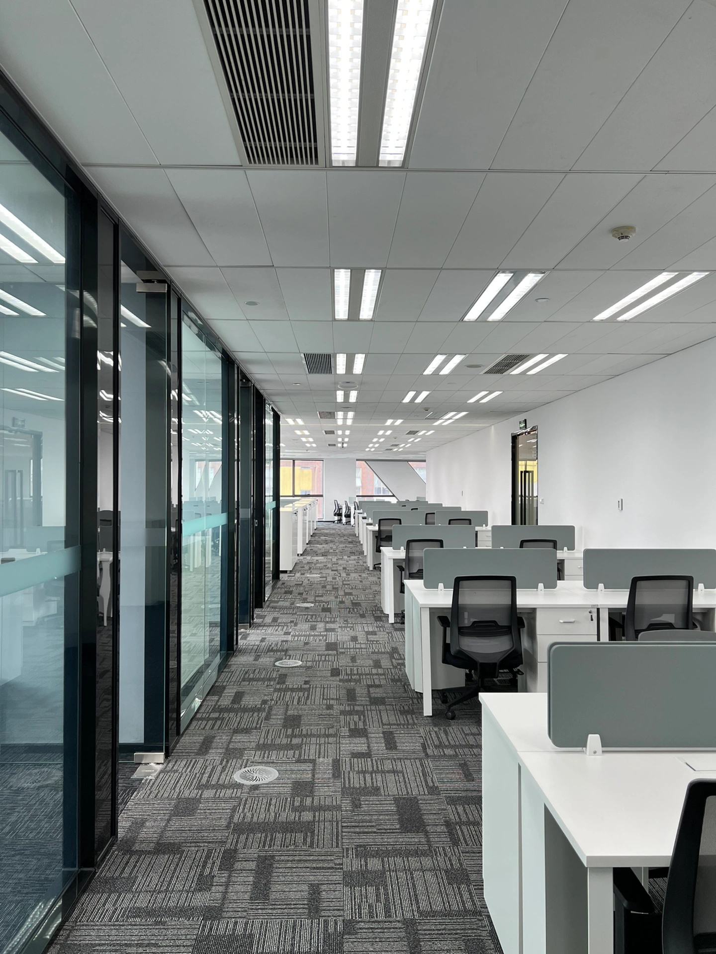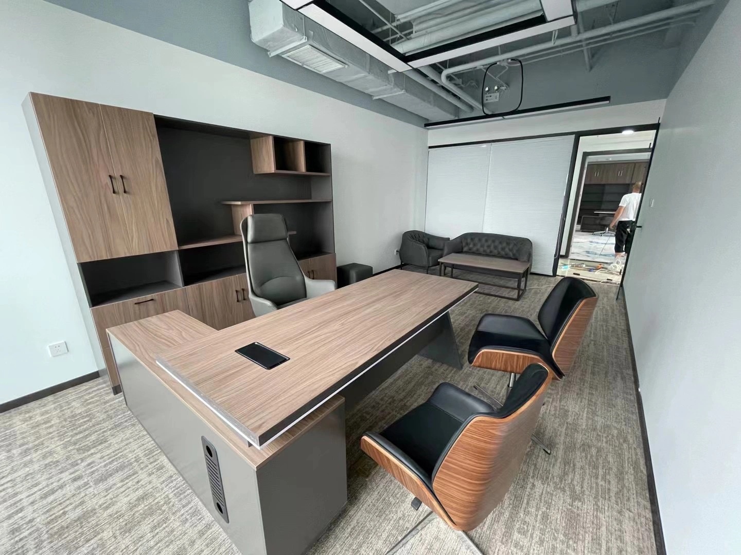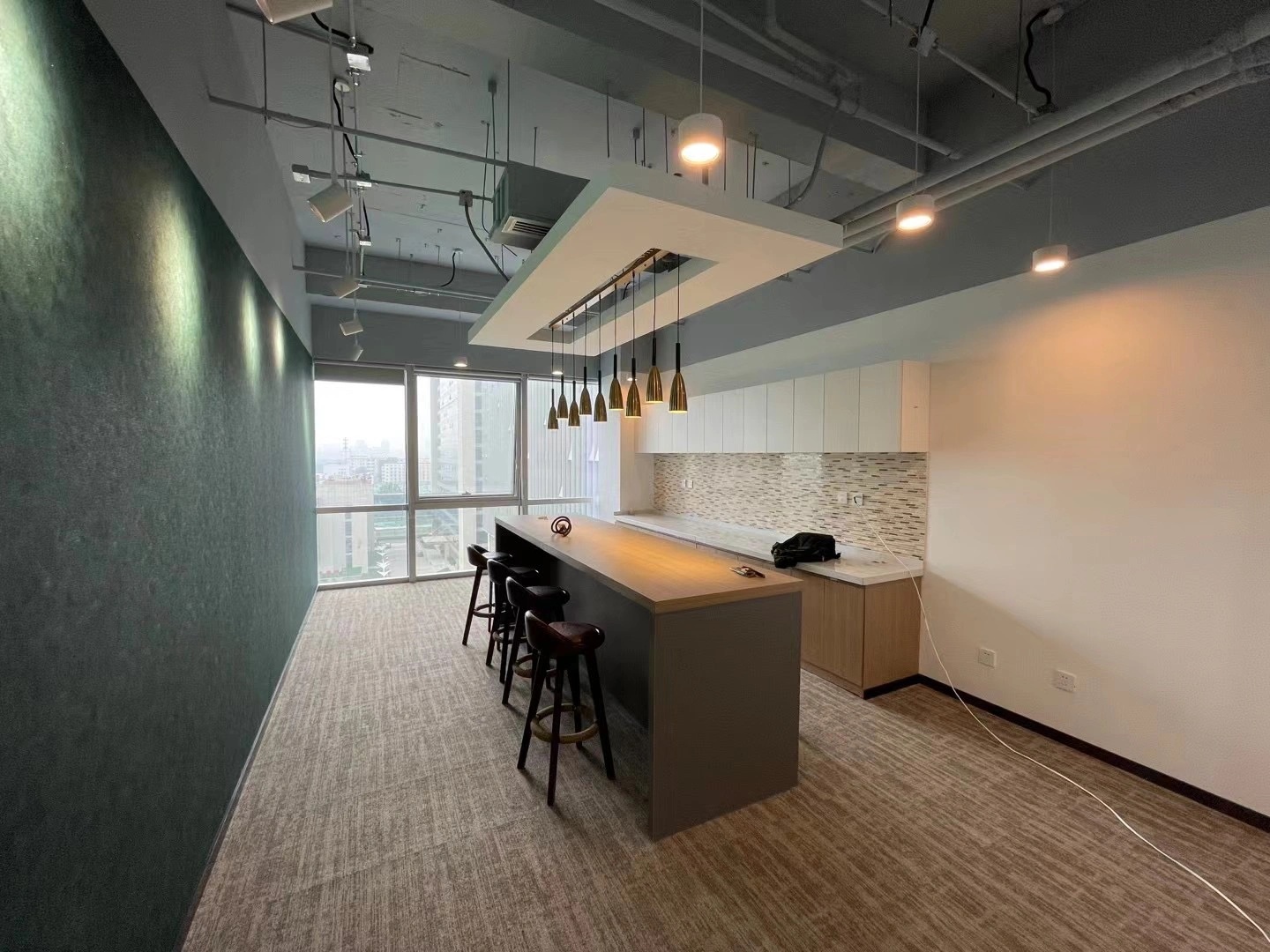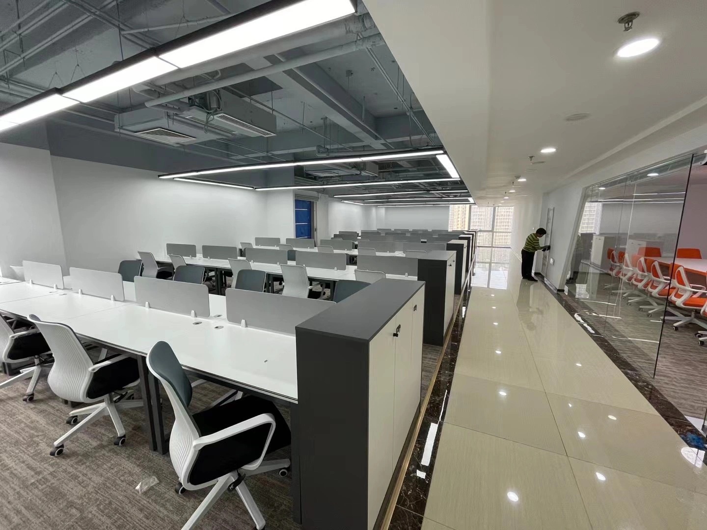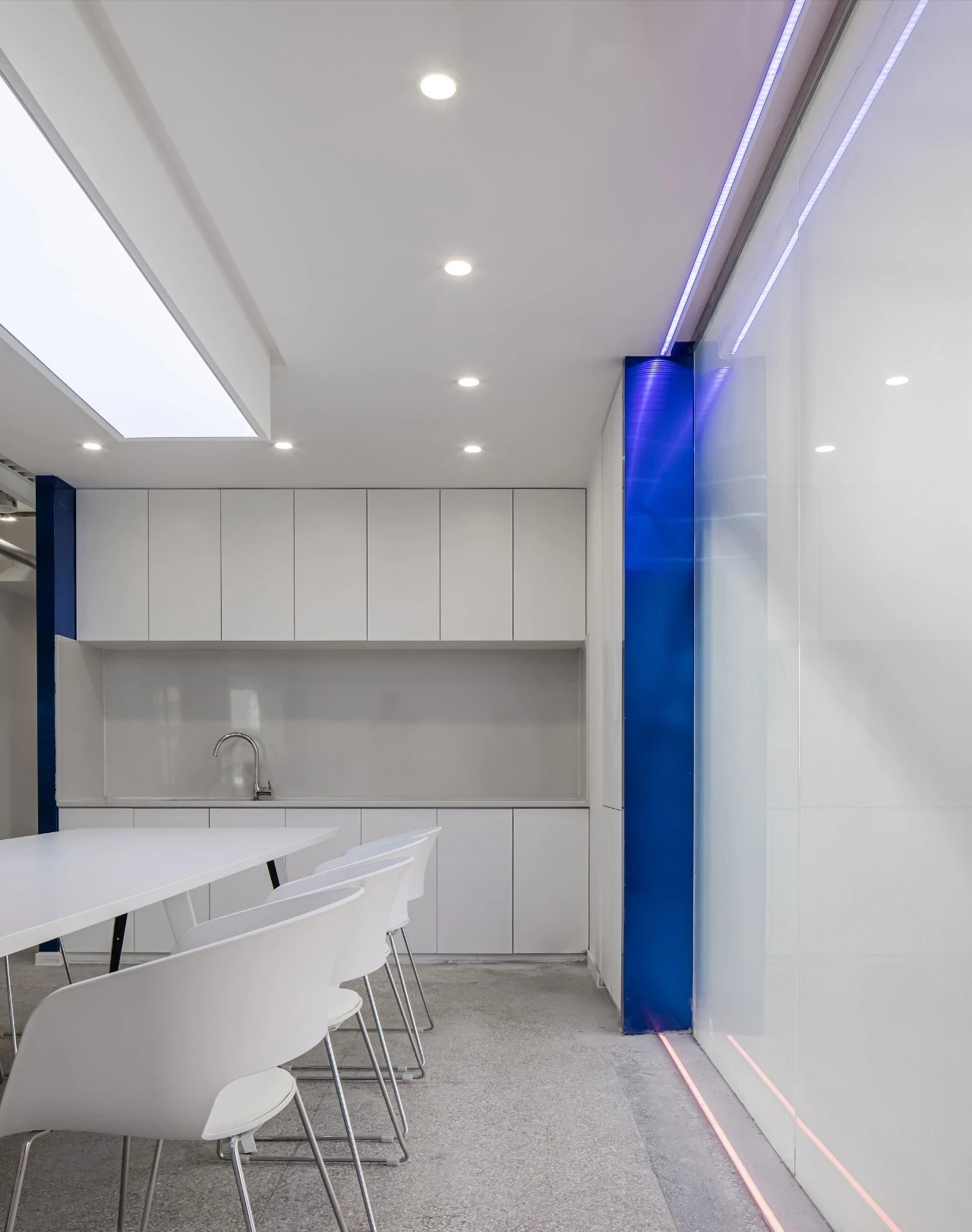 前台桌子用了亚克力的材质,结合暗藏线性灯,从前台开始就营造一种现代化的科技办公氛围