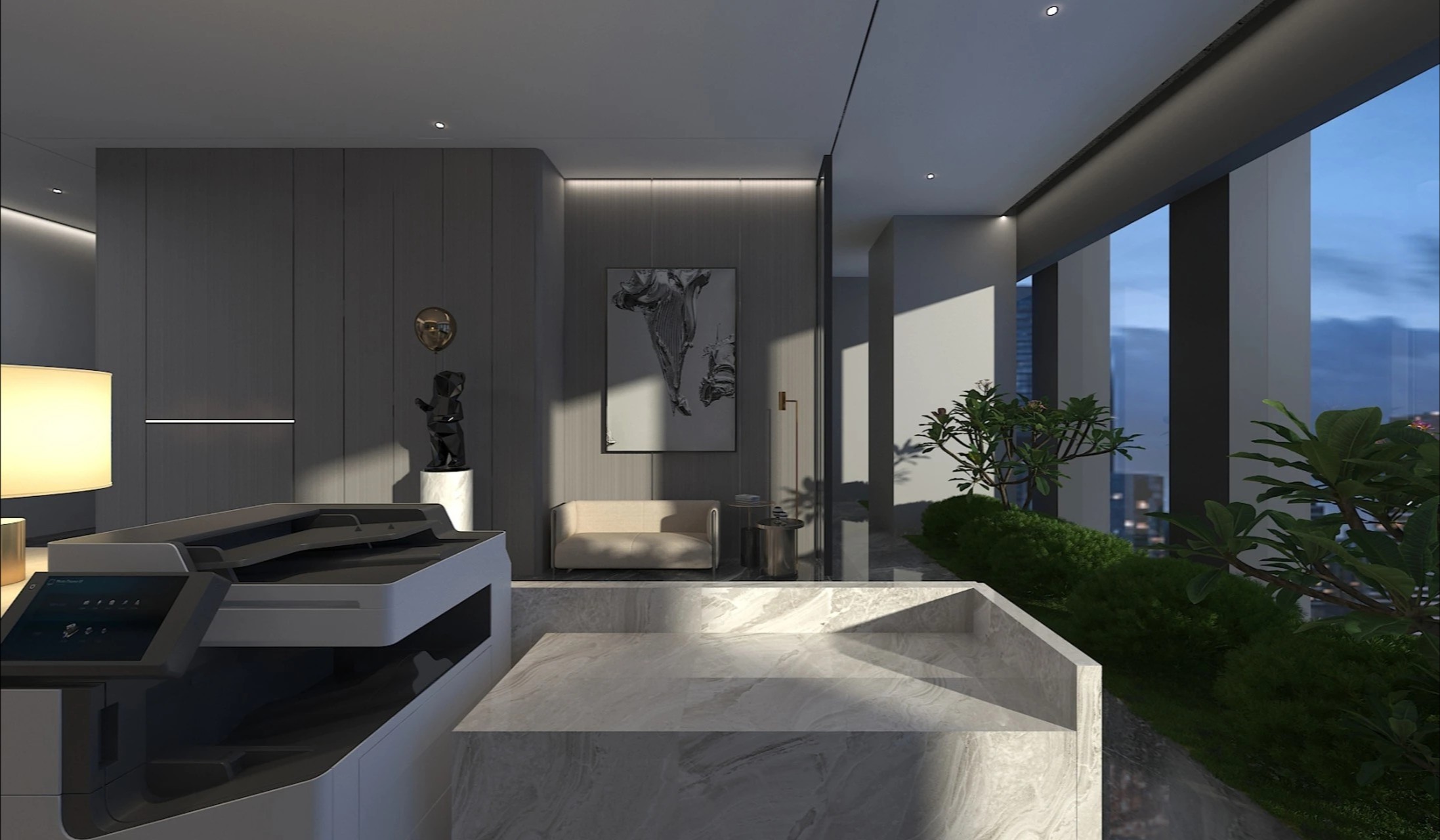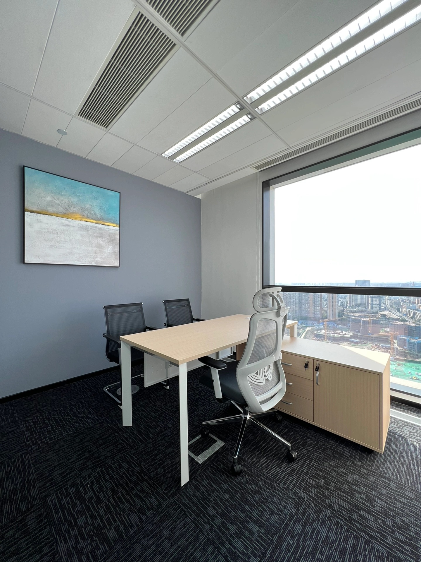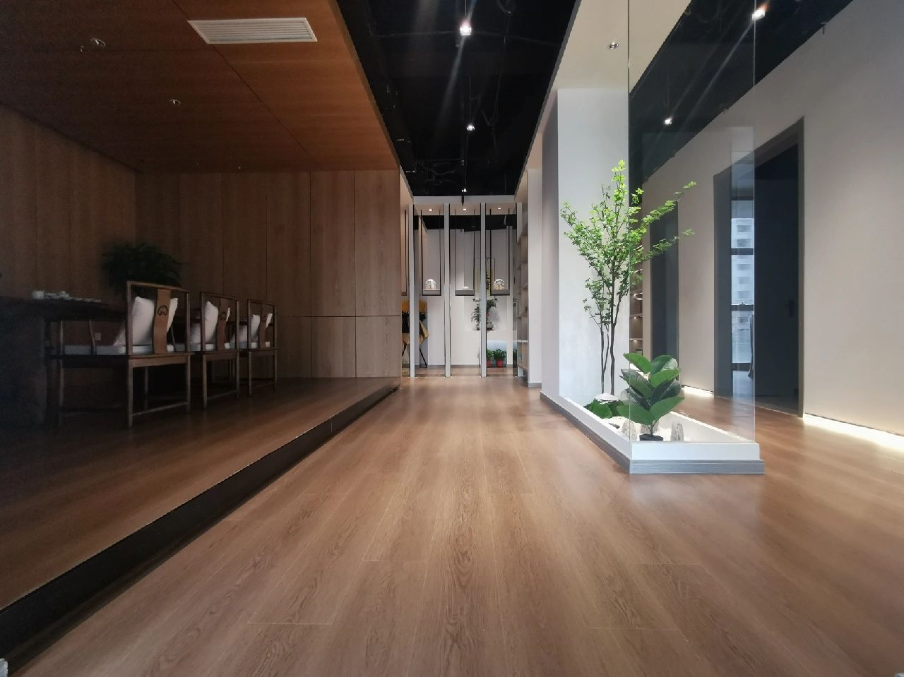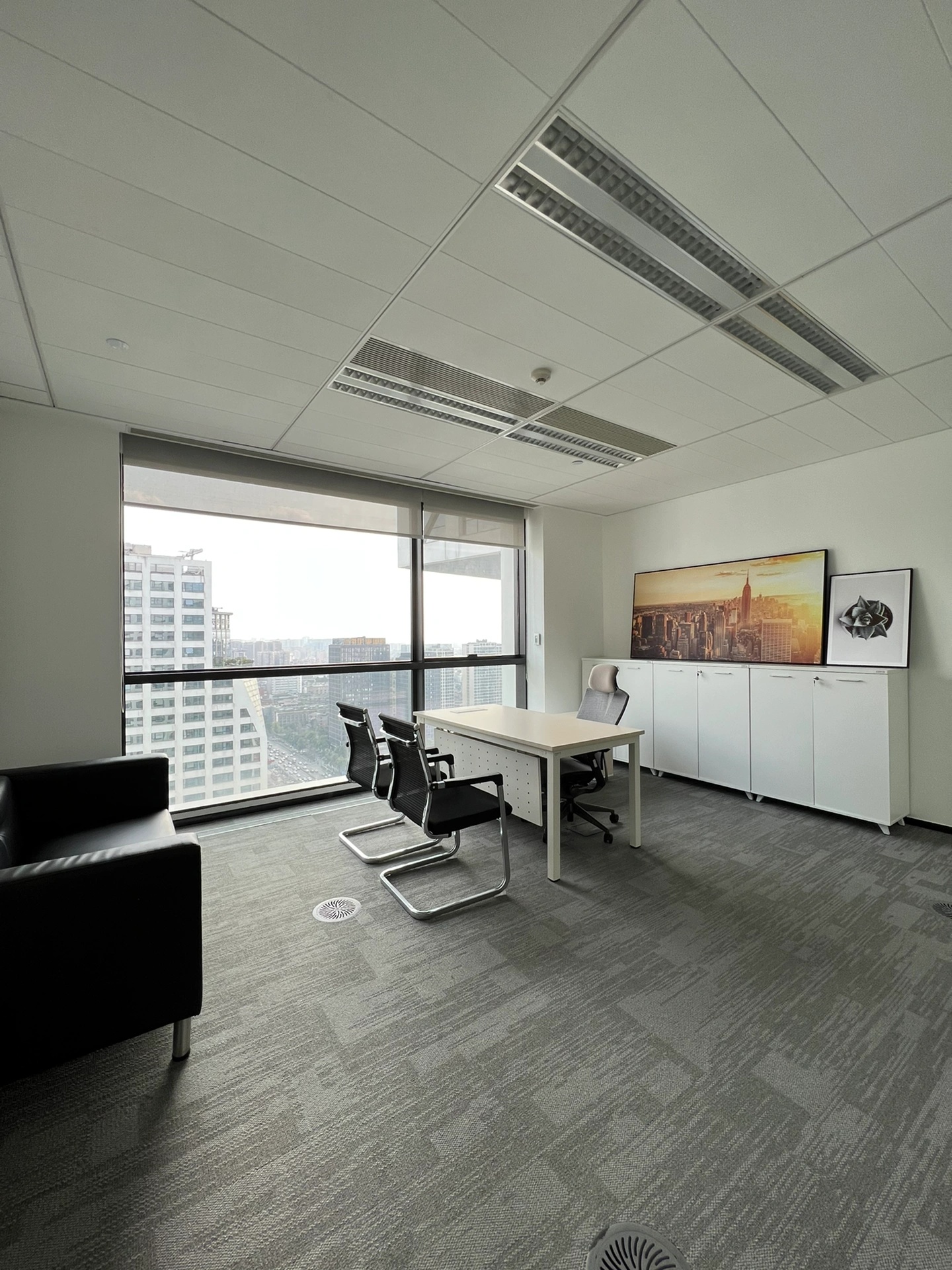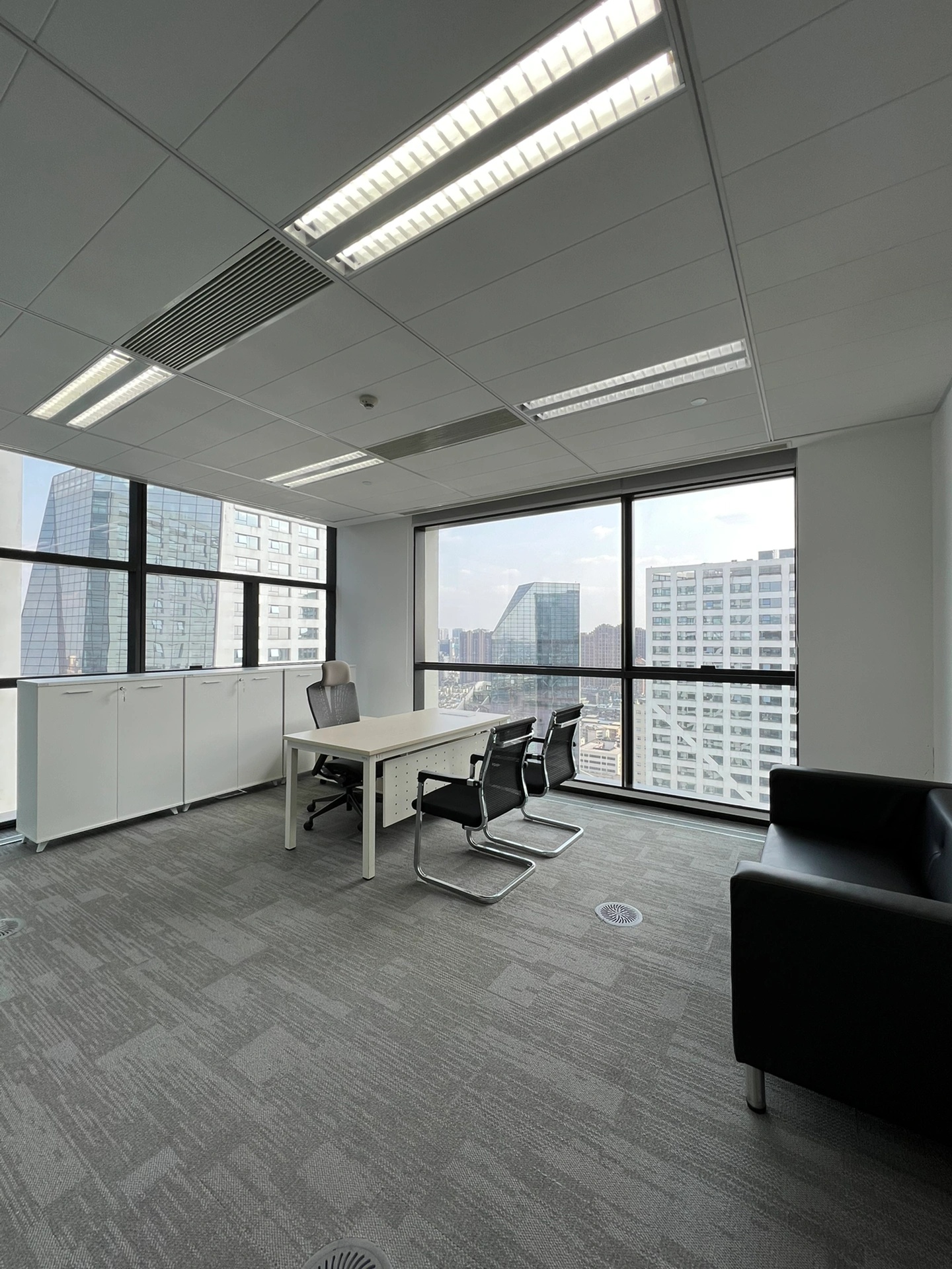 前台桌子用了亚克力的材质,结合暗藏线性灯,从前台开始就营造一种现代化的科技办公氛围