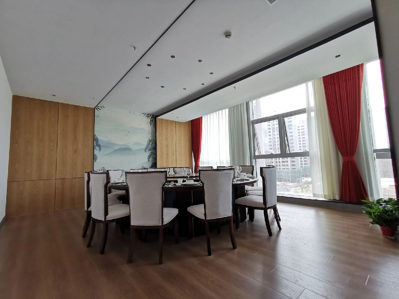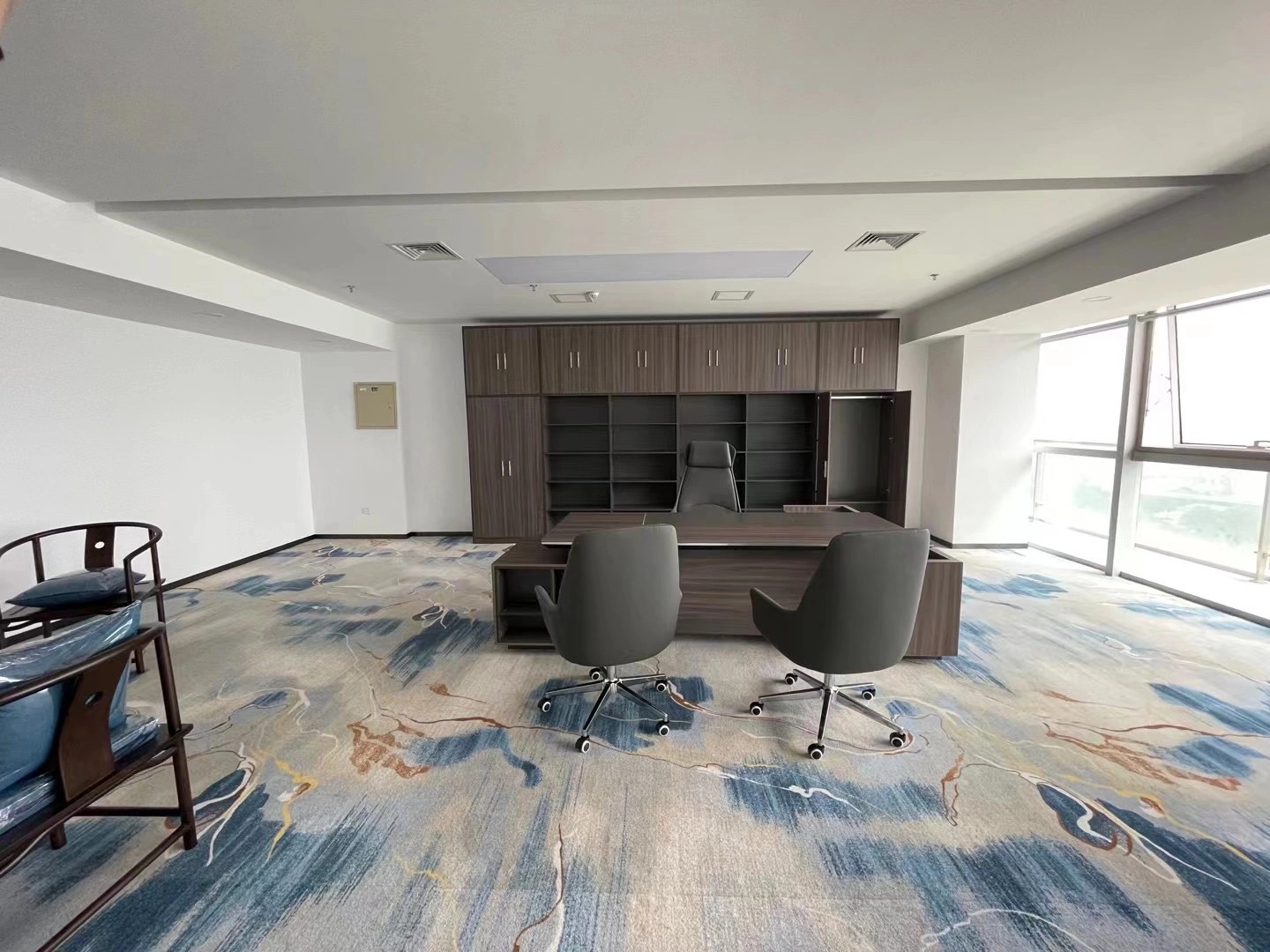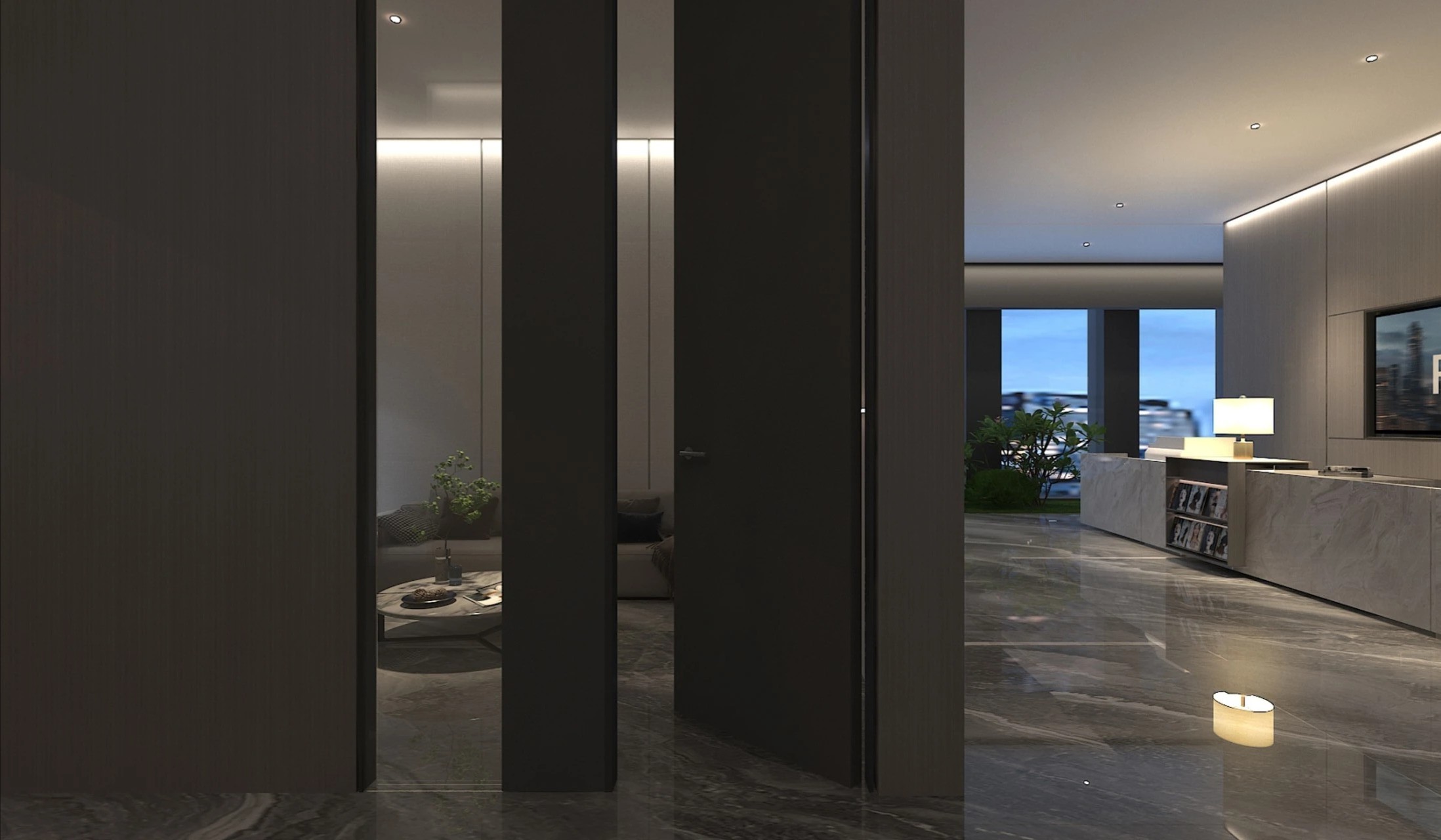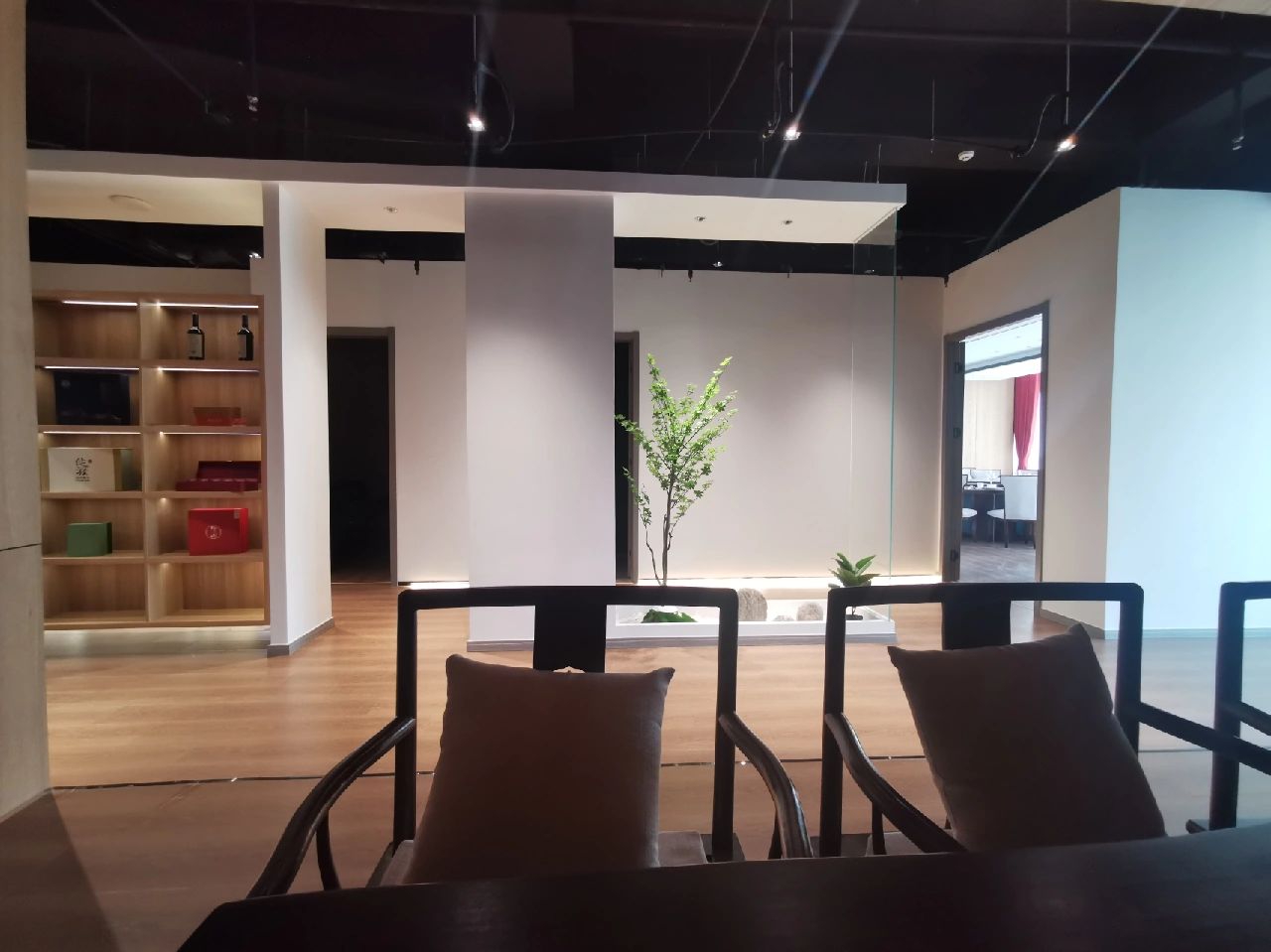 前台入口处的设计才用了弧线的墙面与接待桌形成一个整体,考虑到本身入口的角度,用弧线垭口让这种与整体平面形成夹角的入口形式起到一种引导的作用。大厅接待区是整个办公空间视觉设计感最强的地方,本身利用了空间的层高,让大厅本身有很强的的空间感,用装置艺术结合灯光增添一种科技氛围。彰显企业特点。