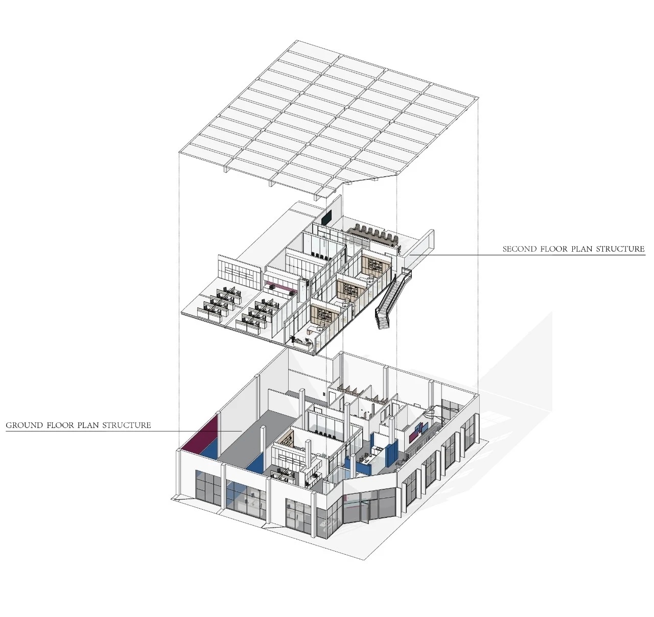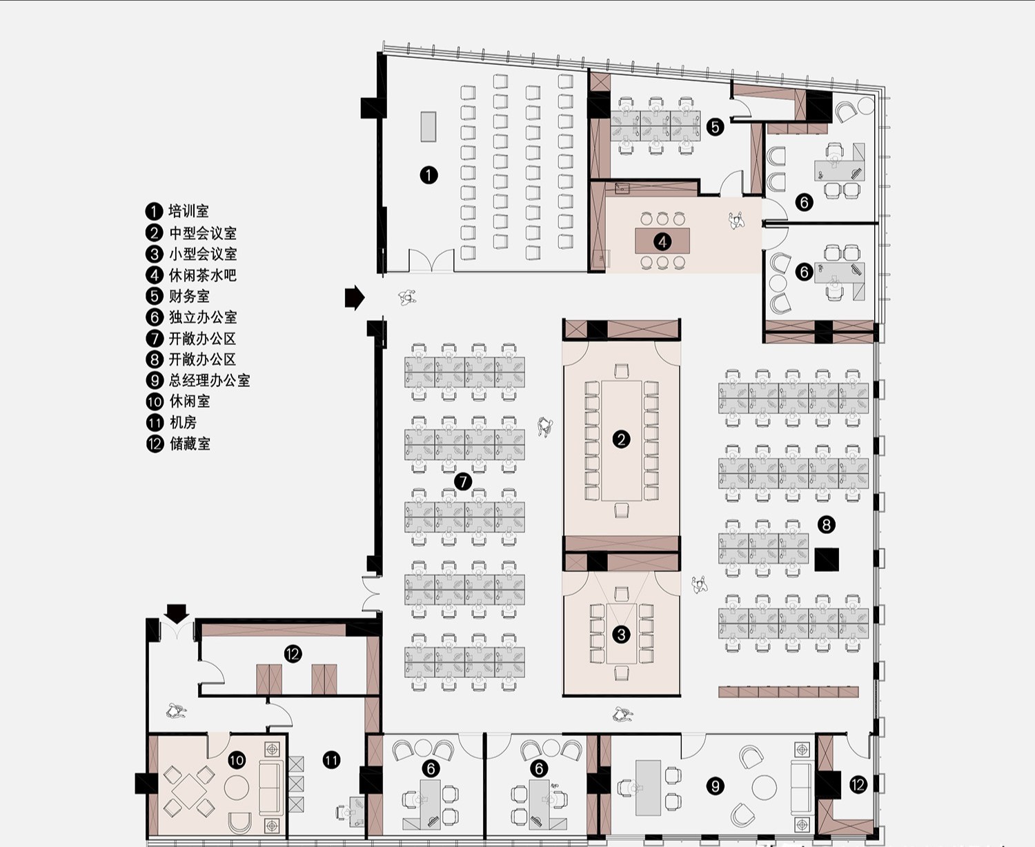 在极简框架内,通过色彩对不同功能区加以识别与分离,添加部分人文主义表现,提升空间的可亲度与自由意识。