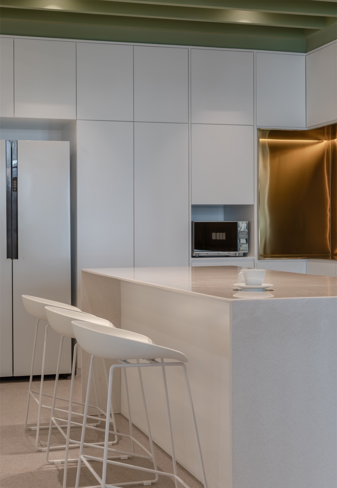 设计中『装饰』的意味被降至最低,极简的框架、全白的基调、裸露的管线、温文的肌理,似乎都在试图将空间的本质乍泄给你看。