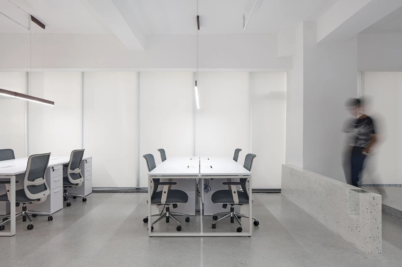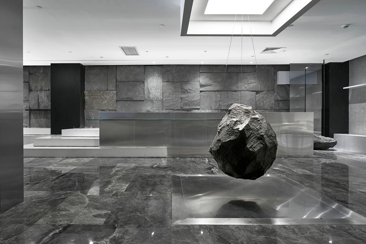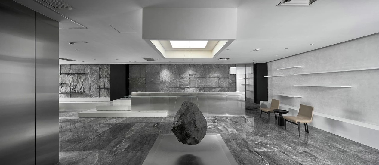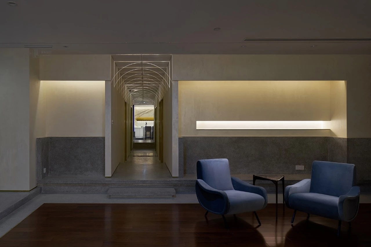 办公空间与公共空间被前厅与展厅划分成两半,动静得以区分。用大量的原始材料,同时又通过安静与简洁的处理方式来传递美学与空间情感部分。尝试着用一种最基本的方式解决问题,关于对平衡的表达则是阐述人与空间的本质,或者说是人与空间的一种关系。悬挂与垂落是平衡在美学上的某种表达方式。空间与材料之间通过艺术装置呈现中心视角的聚焦与精神传达。
