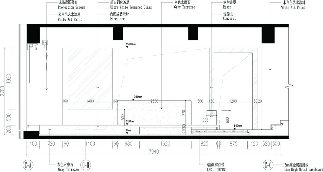 有一处神秘的空间,采用的是机械结构结合一扇定制的半圆形的门,处于空间的尽头,带着一条竖向的光。人们不知这扇巨型的人半圆门通过智能控制,缓缓移动,一处私密空间藏与空间的背后。