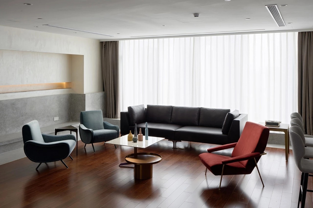 茶室的静谧是头脑风暴后的短暂休息,暗黑的色调与工作区明显的分割开来,让工作与休息都能得到最好的状态。