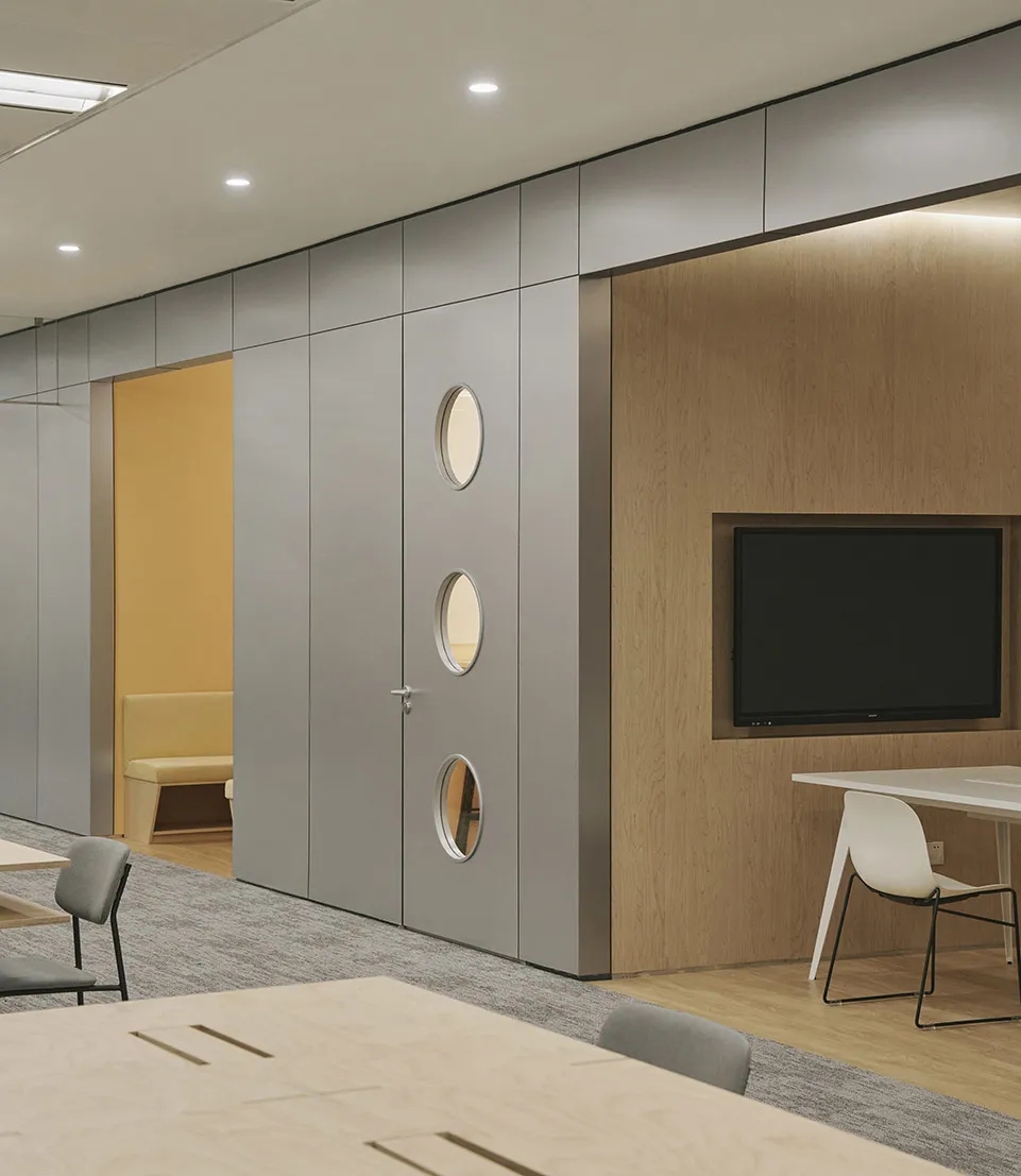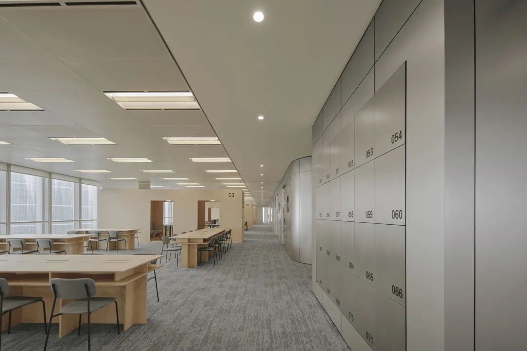 ‘厚墙’是把消防环形走道的二维墙面挤出成一个三维的空间,然后用会议、非正式讨论、打电话、直播间、储物格、图书馆等明确的办公场景对其进行掏空。于是厚墙是属性明确的基础设施,可以根据需求来预约和使用。我们希望它构成一种如城市中纪念物般的象征性,用一种拒绝的姿态不让纷杂的私人物品和非正式的使用方式进入其中。