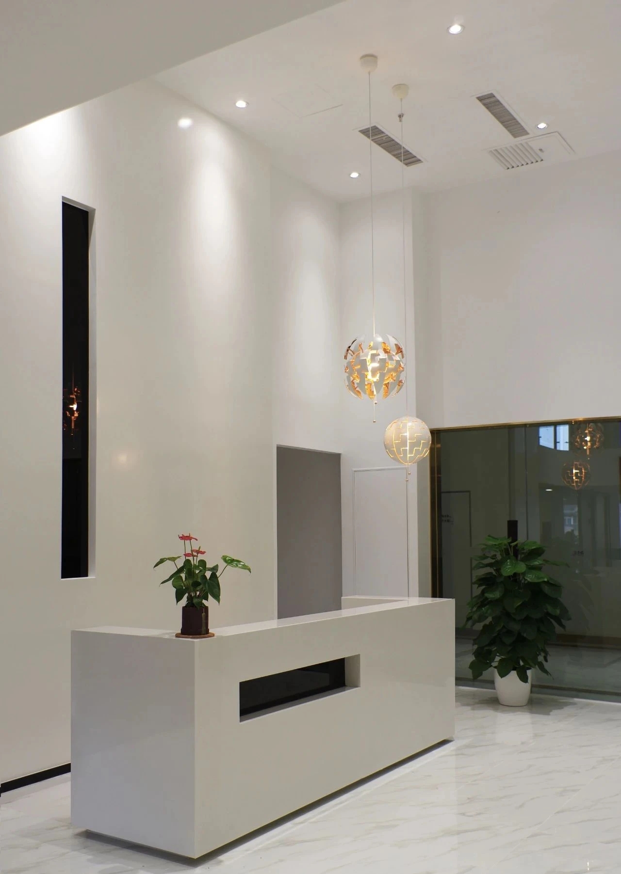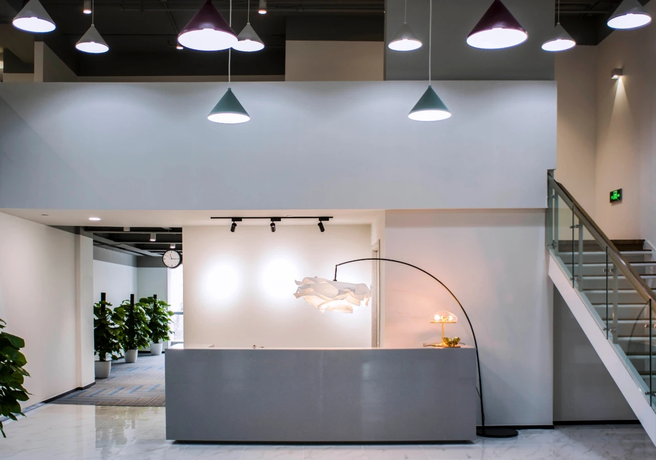 步入前厅,接待区简洁明亮,通过在墙上装点精致的挂画或摆件,或者置一盏具有家居氛围的吊灯,营造宾至如归的氛围,使访客倍感亲切温暖。