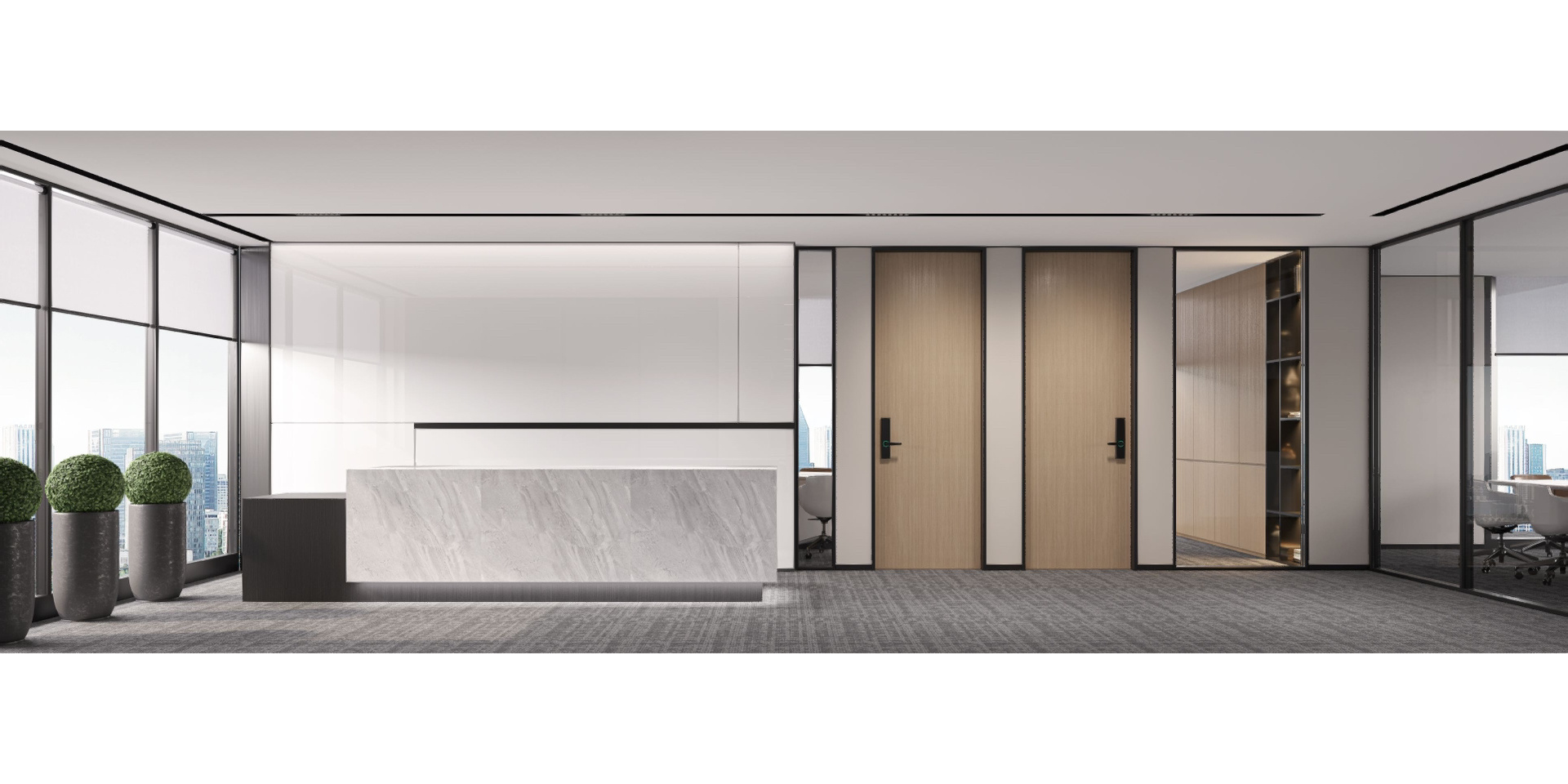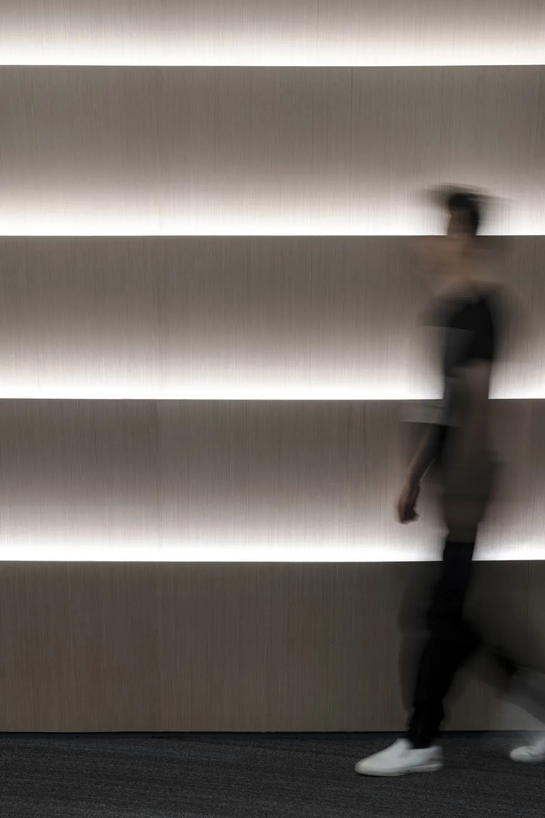 接待处以极简的造型呈现整个空间演奏旋律的变奏,挣脱传统的桎梏,打破常规空间,用墙体重塑视线及音源的多样功能性,秩序化的无趣办公空在设计师的调动下,封闭感稀释,自由的意识形态充盈立体。融合传统办公与现代先锋,加上流畅的动线辅佐,真正实现人文贯穿,舒适办公。