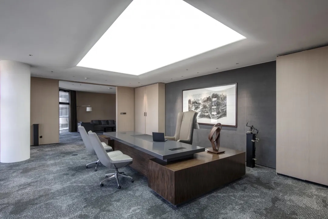 高管办公室内配有荷兰Limitless现代办公椅,金属质地与皮质的刚柔结合,酷尚前卫的造型,为空间增加时尚格调。