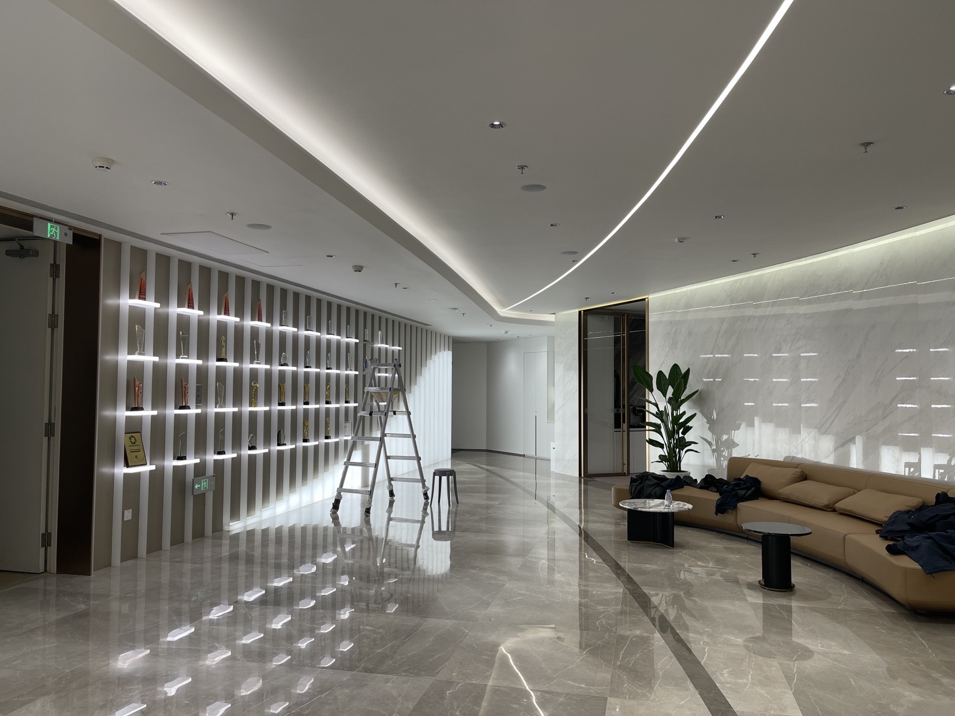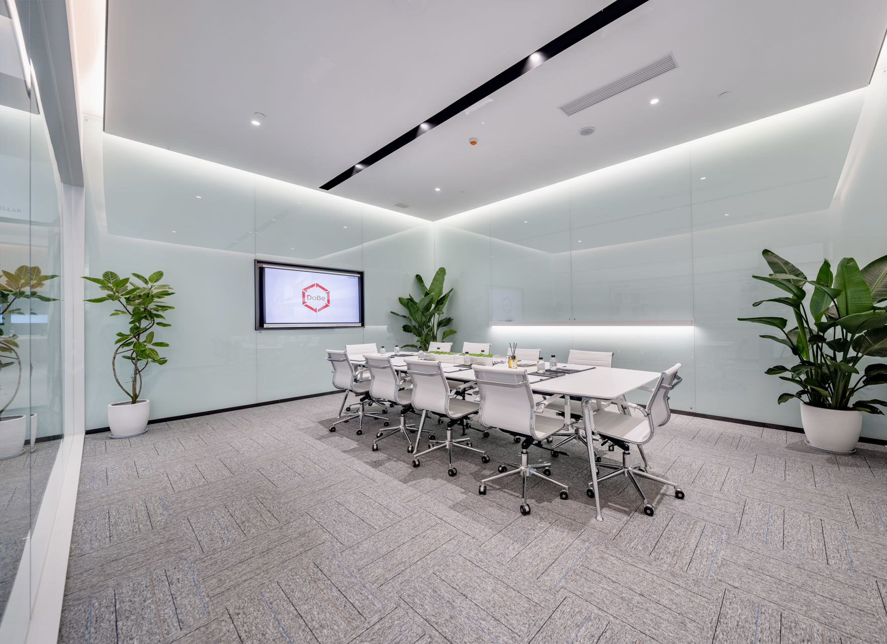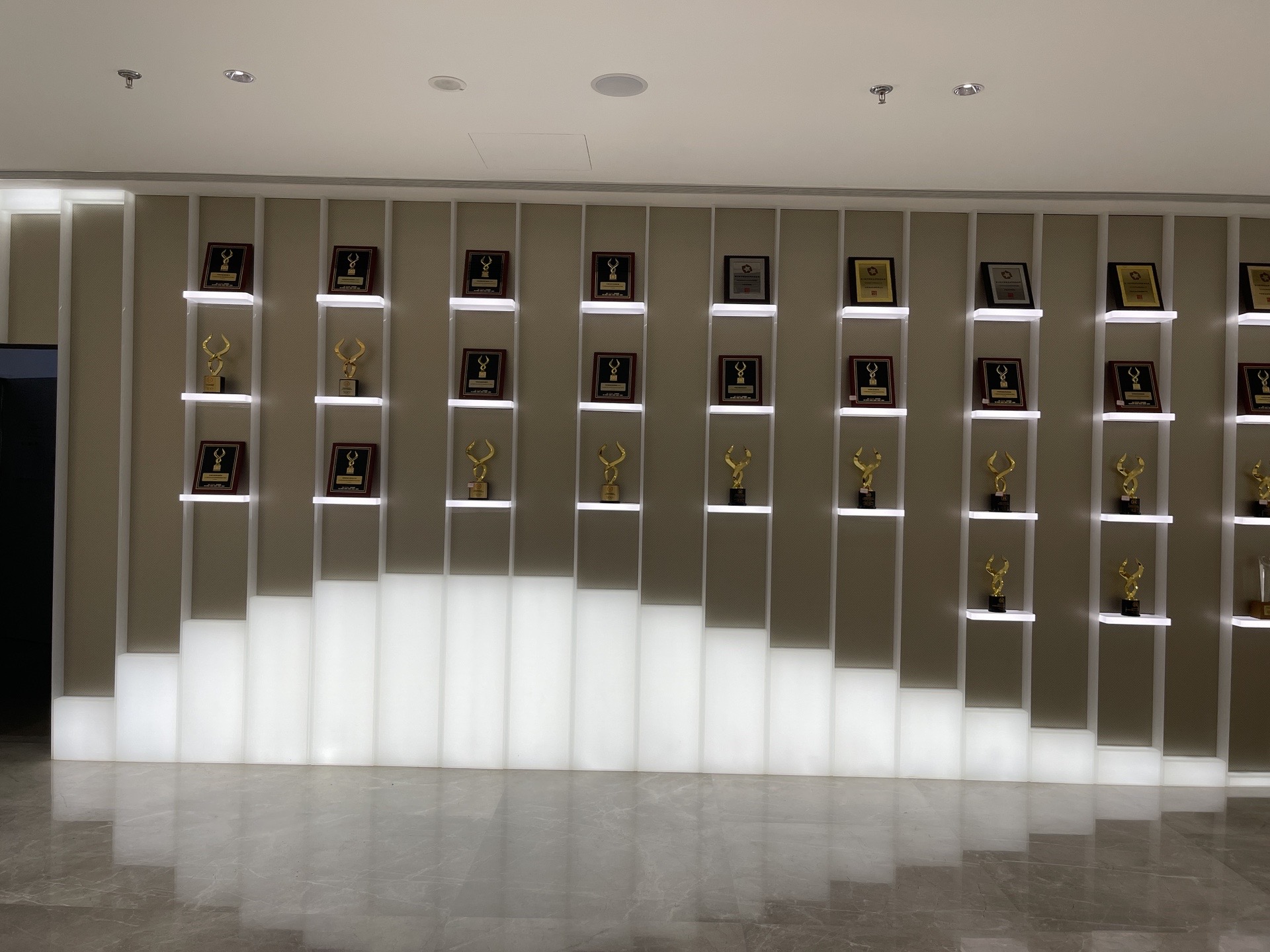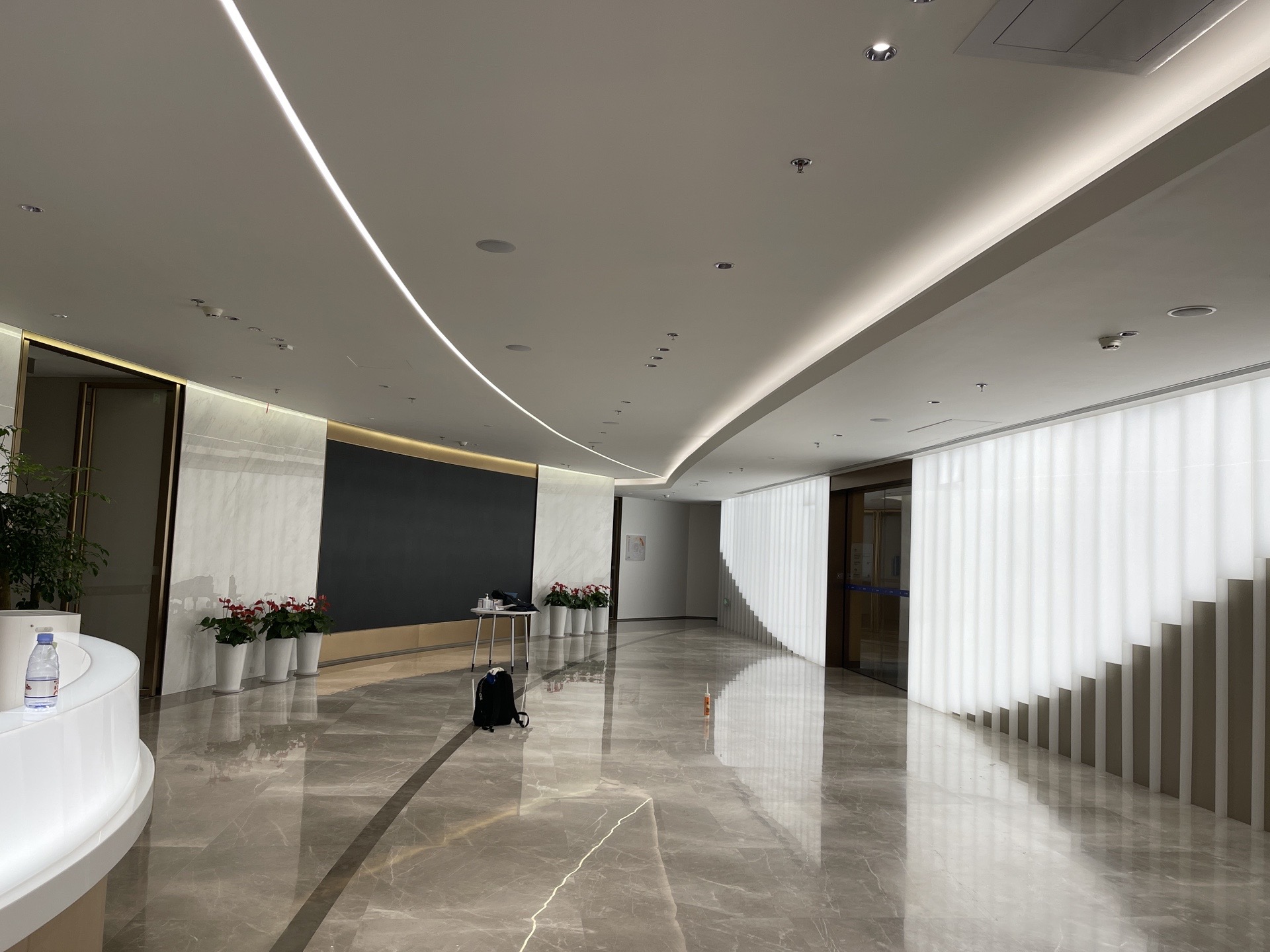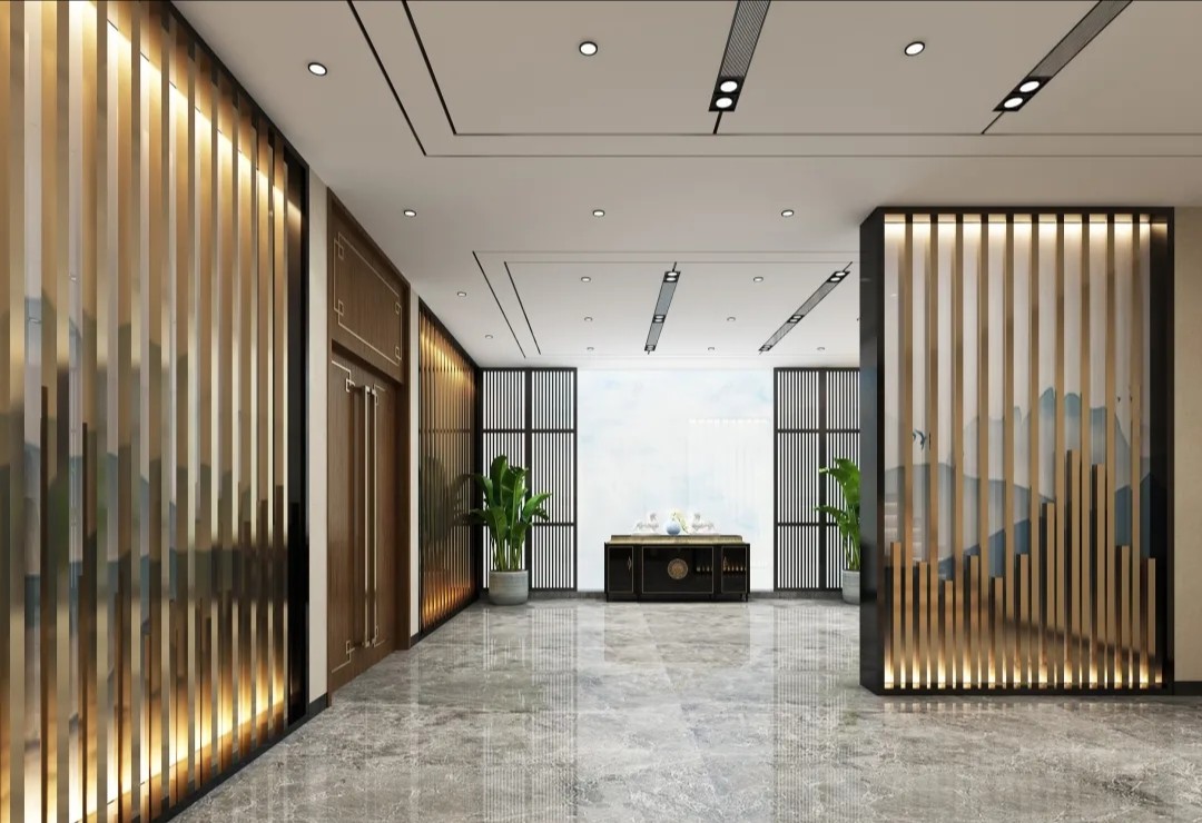以大面积的白通过形态的不同在灯光下形成多元层次,辅以细微变化的灰色以及简单的金属色线条造型,建立空间秩序