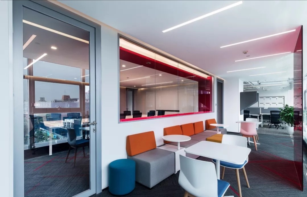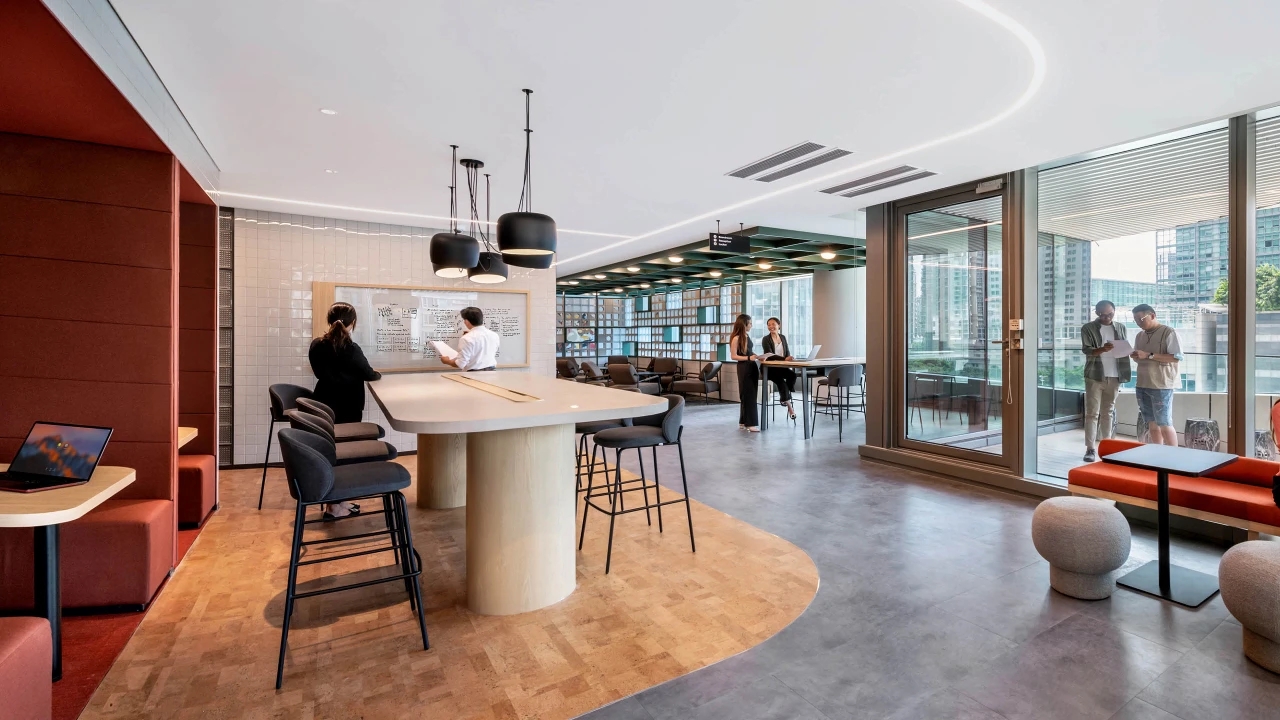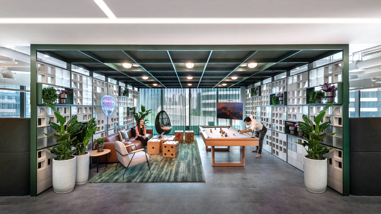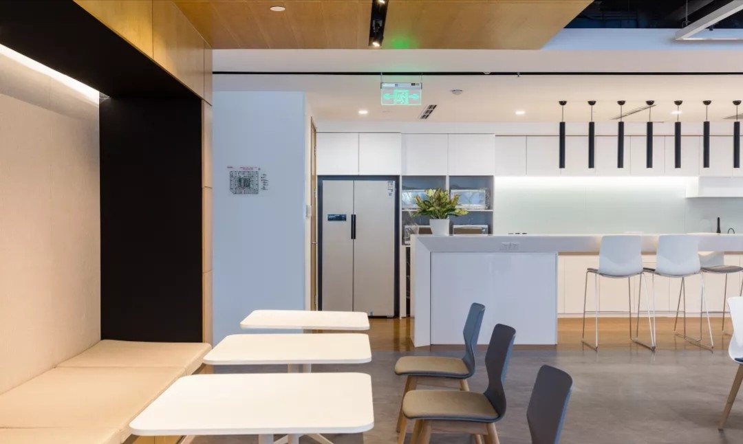 每层楼都有开放的工作区,采光良好,座位和工作环境交替排列,并配有附近的小吃间、一系列聚会包厢、电话座位和临时办公空间。办公室的核心特色是协作中心,它是一个多功能的空间和城镇大厅。办公室还设有更小的协作空间,在每个楼层都有一个游戏区域,以及安静的“避难所”区域,用于专注的工作。