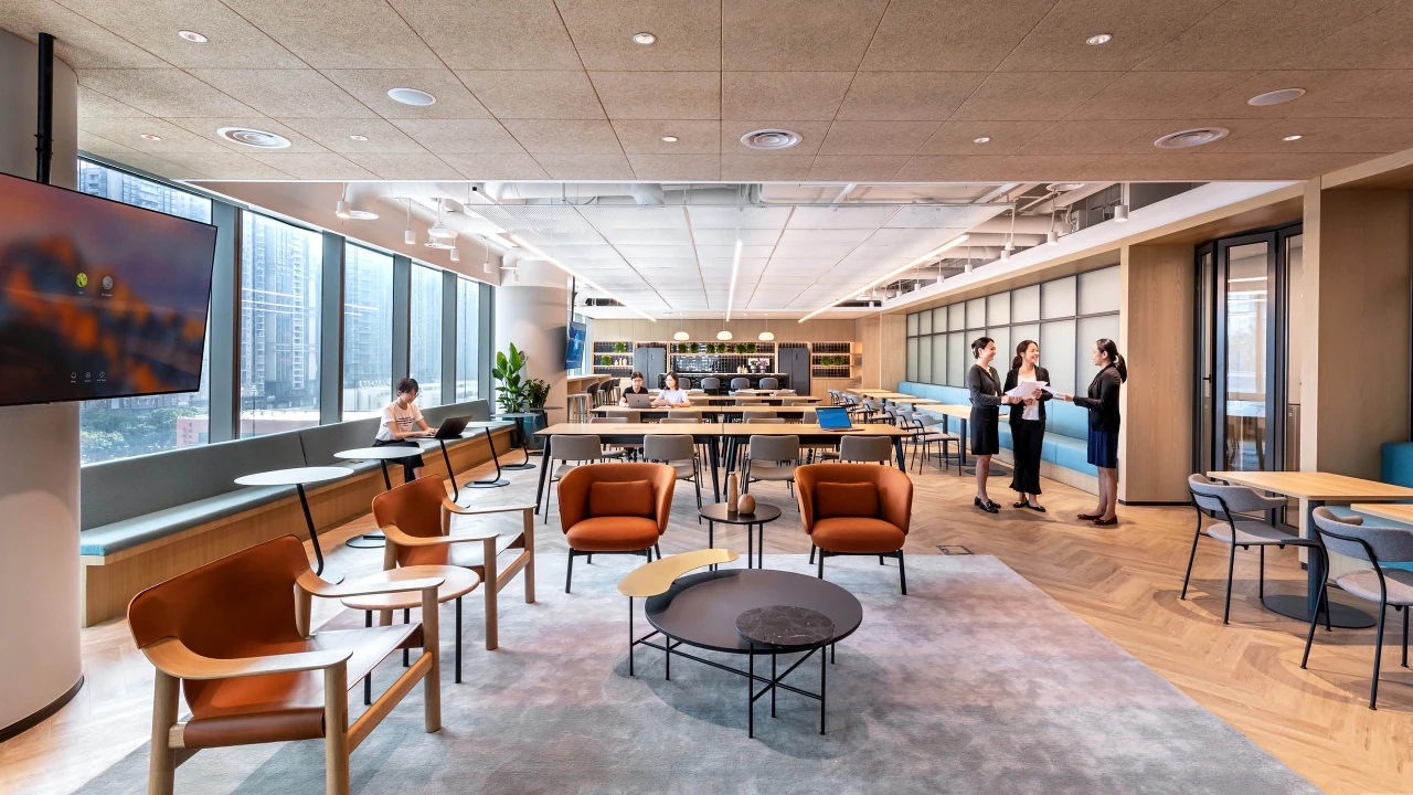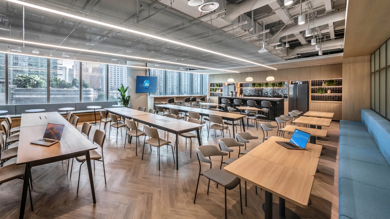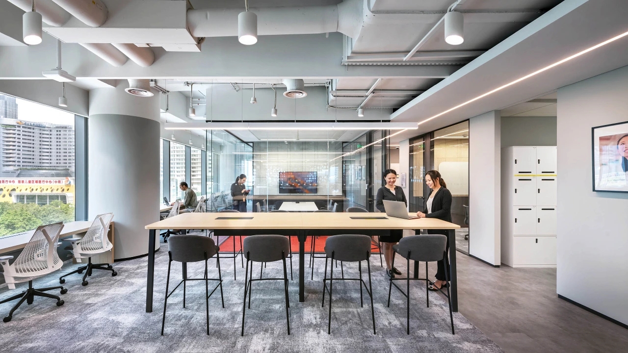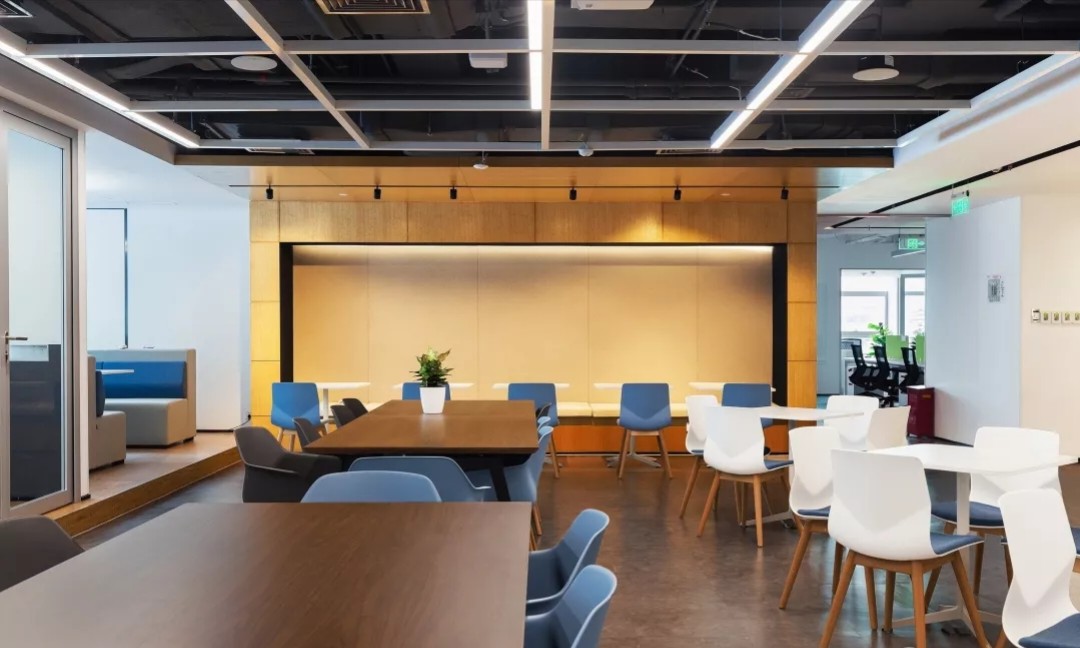 每层楼都有开放的工作区,采光良好,座位和工作环境交替排列,并配有附近的小吃间、一系列聚会包厢、电话座位和临时办公空间。办公室的核心特色是协作中心,它是一个多功能的空间和城镇大厅。办公室还设有更小的协作空间,在每个楼层都有一个游戏区域,以及安静的“避难所”区域,用于专注的工作。
