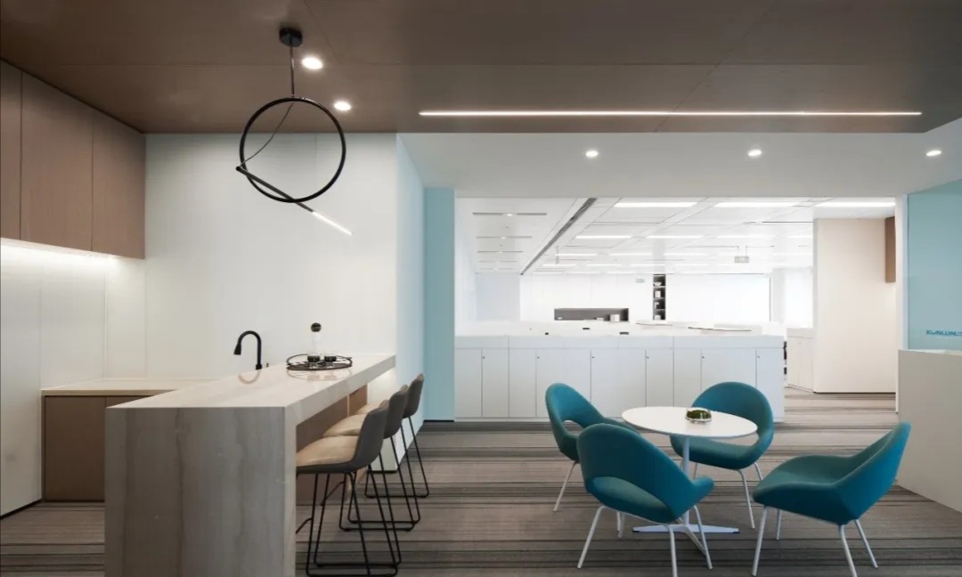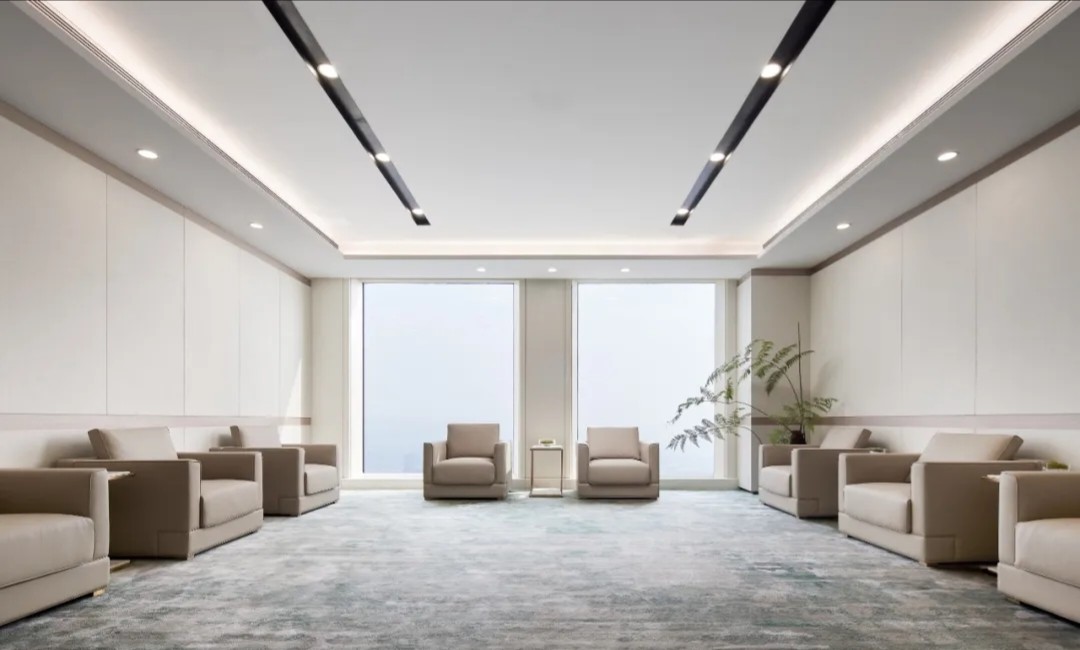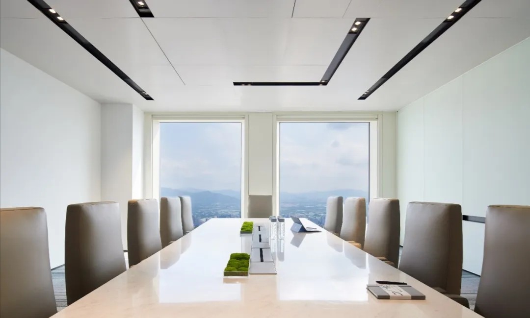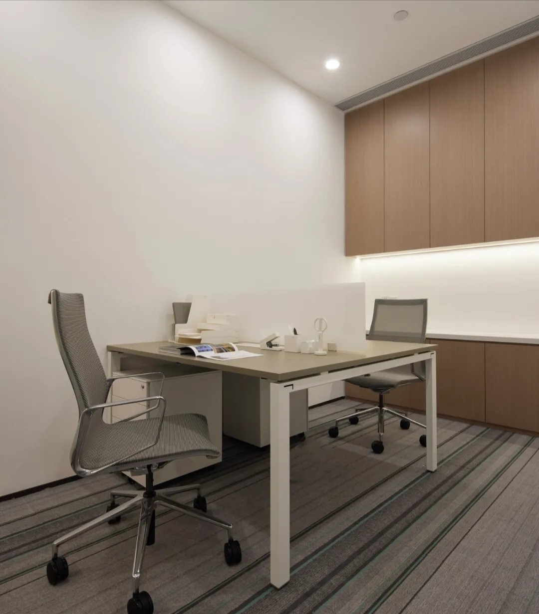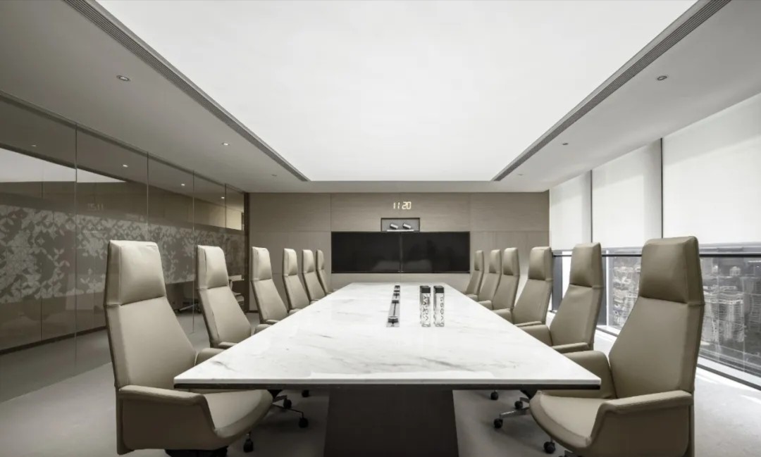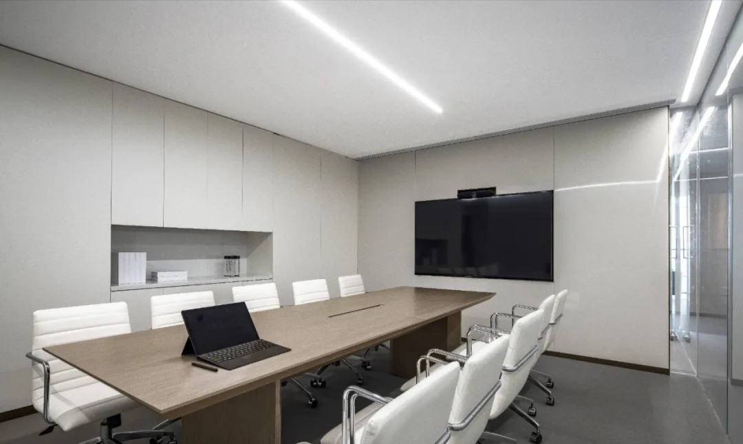 追寻更大的未来也不会忘记最初的美好。在倡导效率为先的办公职场中,以此张弛有度、轻松愉悦的空间致敬蔷薇控股的每一位伙伴。大会议室采用大面积发光灯膜来营造均匀天光的感受,Poltrona Frau的办公椅以阵列形式排开,皮革的质感在木饰面的衬托下,更能提升空间品质层次。