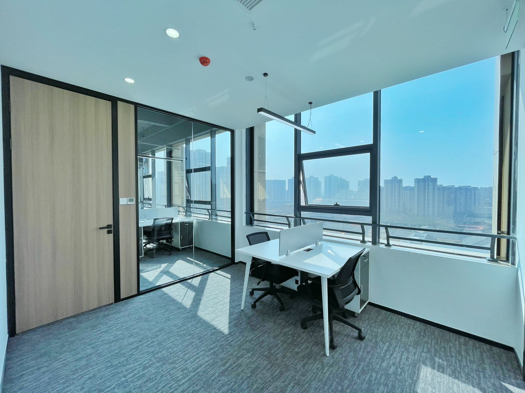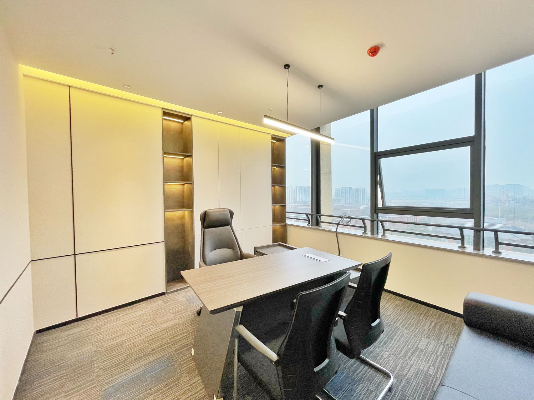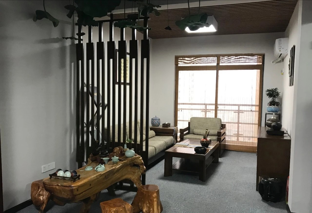 总裁办公室宽敞的格局搭配以一致的木色调,一股属于东方的文雅气场映入眼帘,临窗而坐静享那份与自然风景对饮的惬意。理性的线条拼接现代艺术轨迹,搭配低饱合的淡雅配色,都被包裹进低调的奢华中。