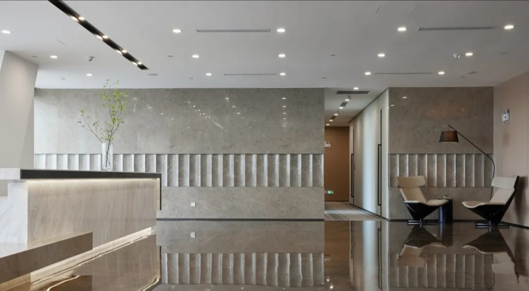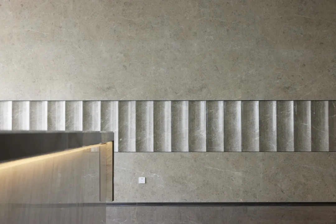 设计以人性为出发点,搭配出立体舒适的空间,一切都简洁明快。配合柔和的灯光,在色彩、材料、灯光的整体搭配下,视觉感受更加柔和。发光玉石的纹理线条演化成建筑相呼应的山水元素,轻柔的讲述着在京城的中国故事。
