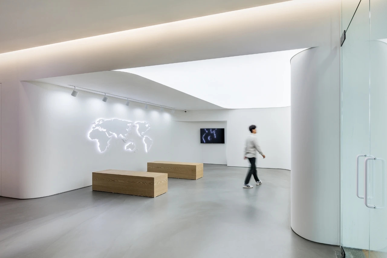 “艺术的目的不是给予答案,而是引发更多的思考”,与硬朗的直线块状形体相比,其张力形成了自由的情绪力量,给予了室内以丰富的想象力拓展,重新打开了城市天际线“新界面”。