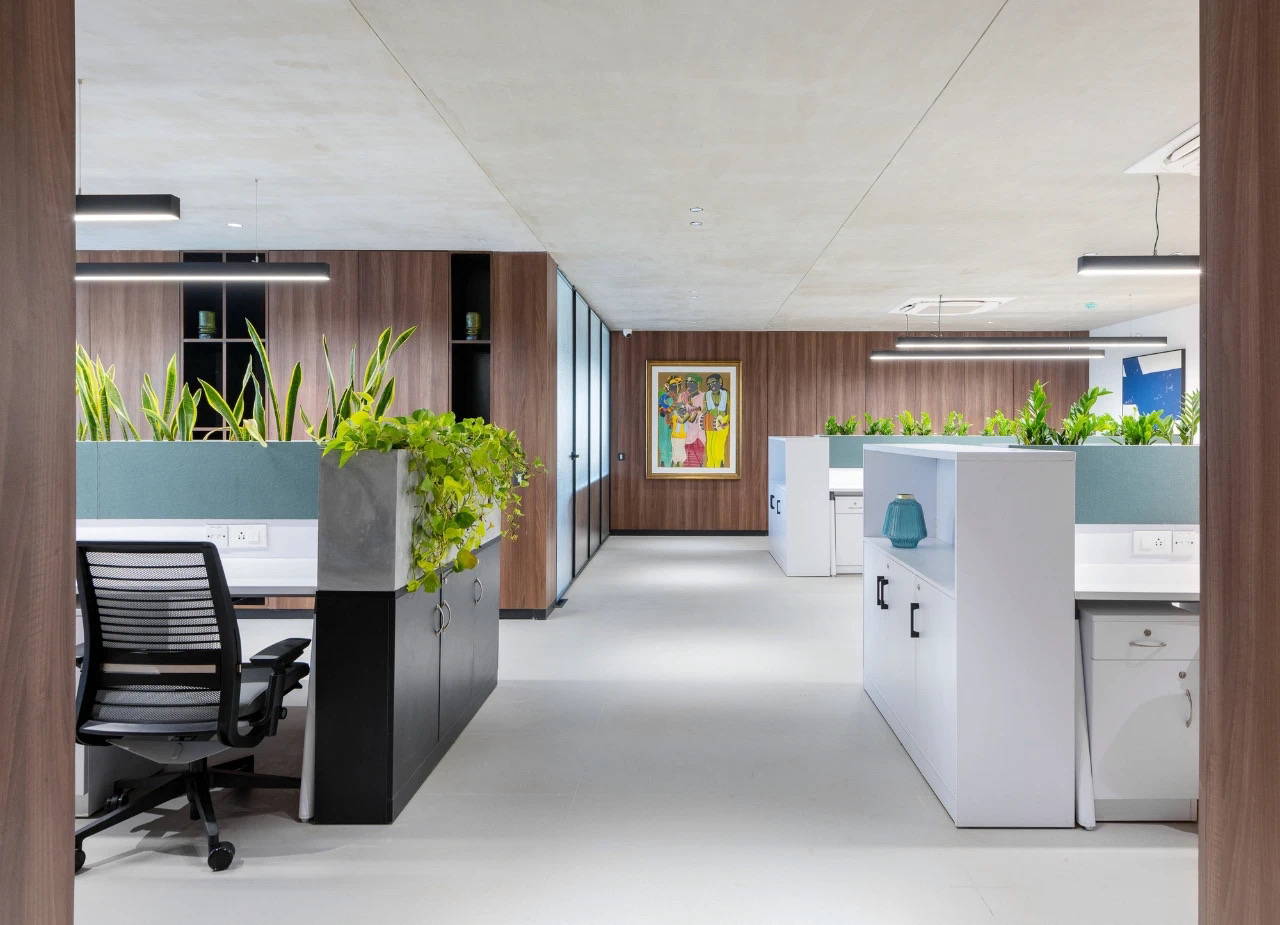 木质色调搭配现代感的办公桌椅让整个空间显得低调而不失活力。