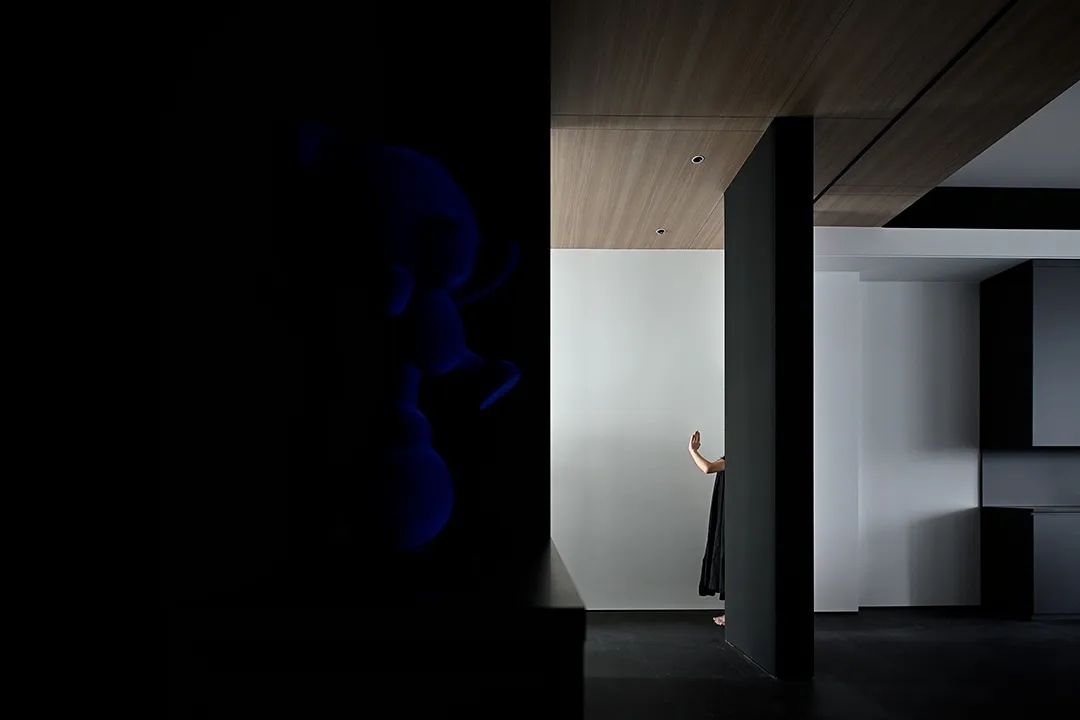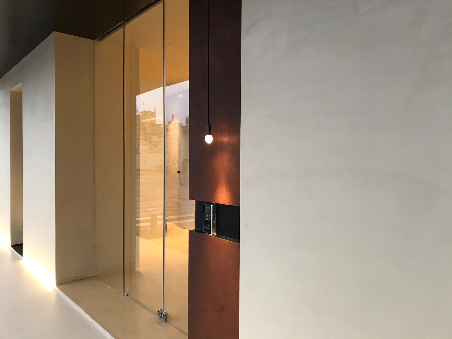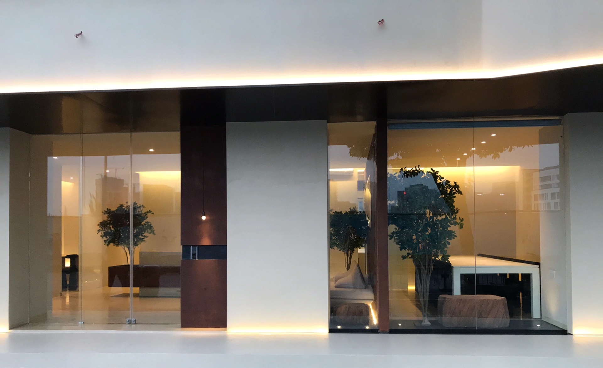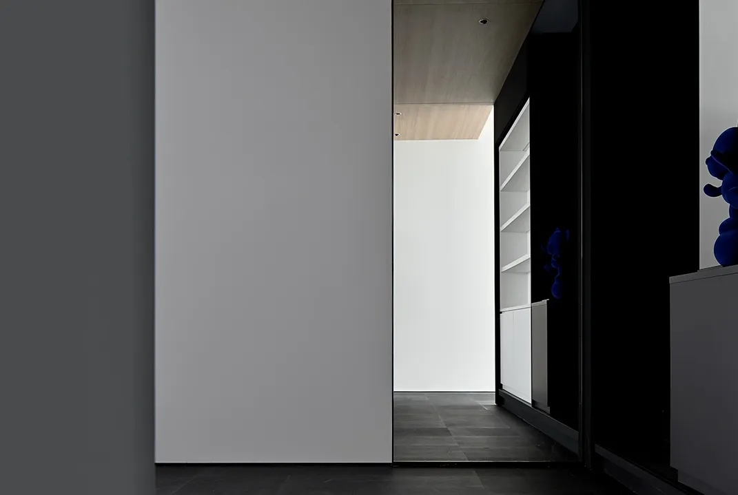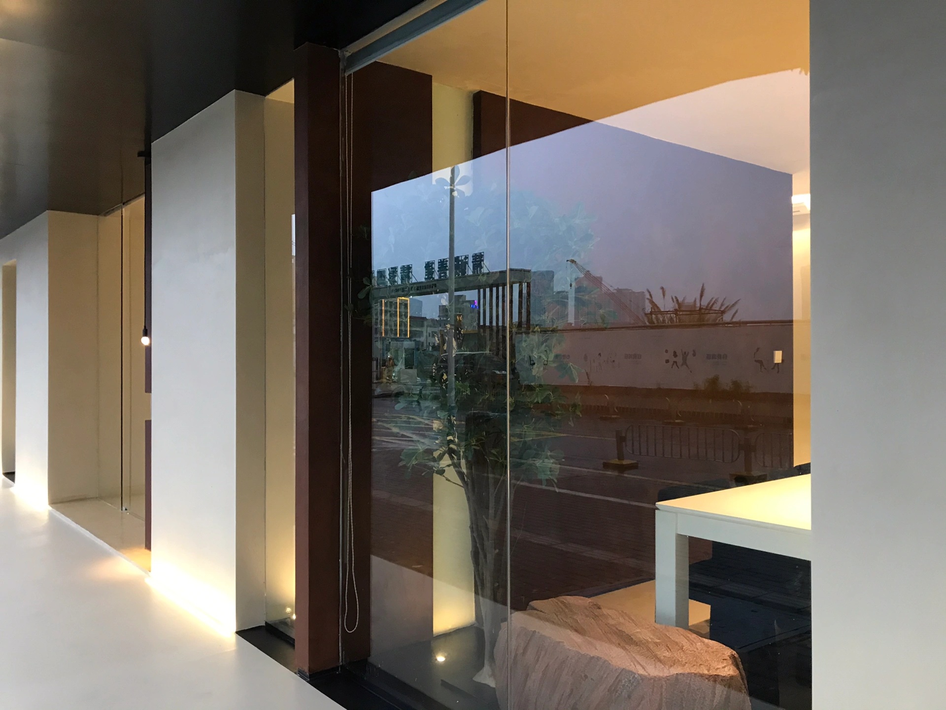 无论是转角处的一面镜子,还是半开放式玻璃空间,空间结构的块面,被折射的光勾勒出层次分明的旋律。