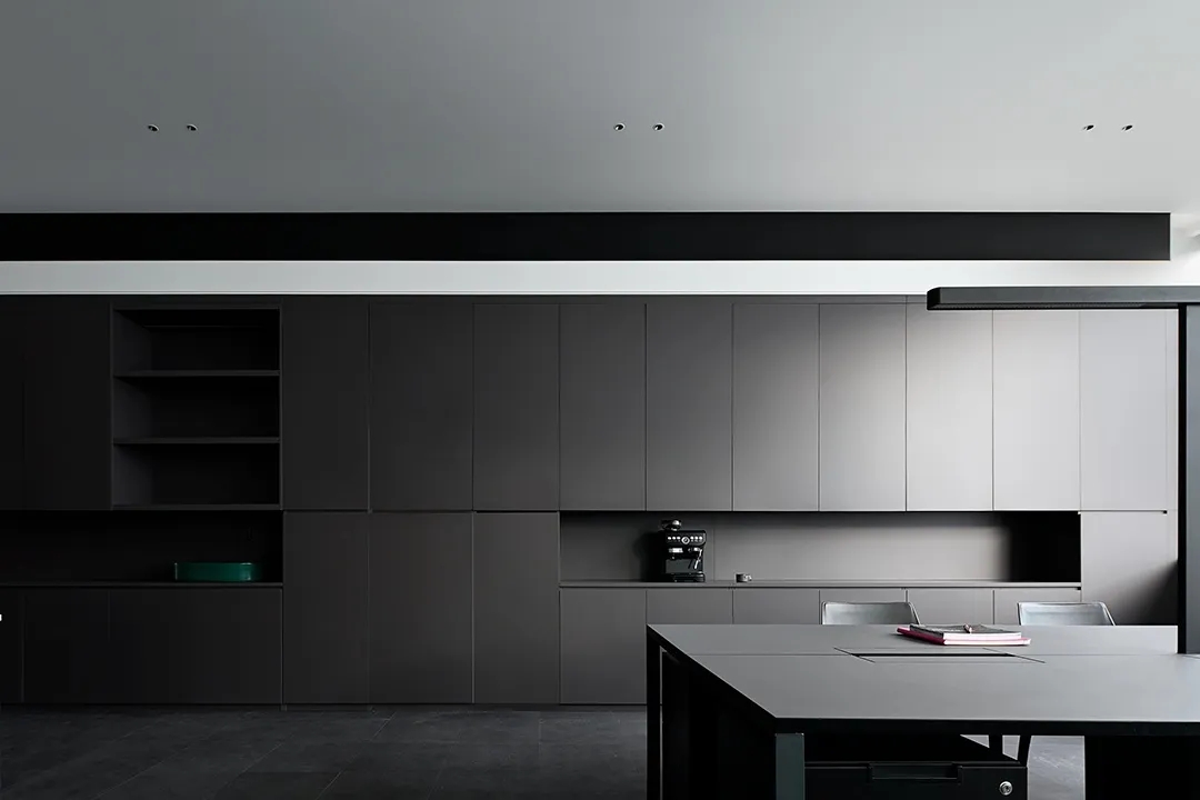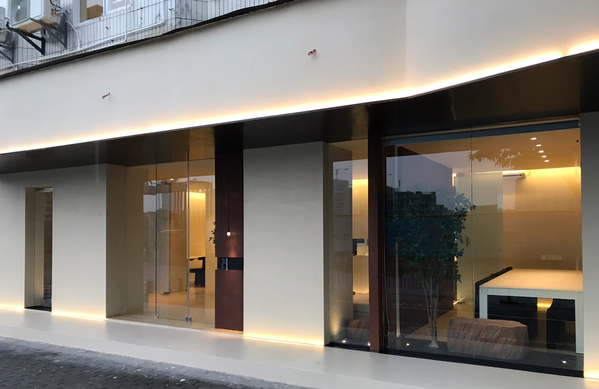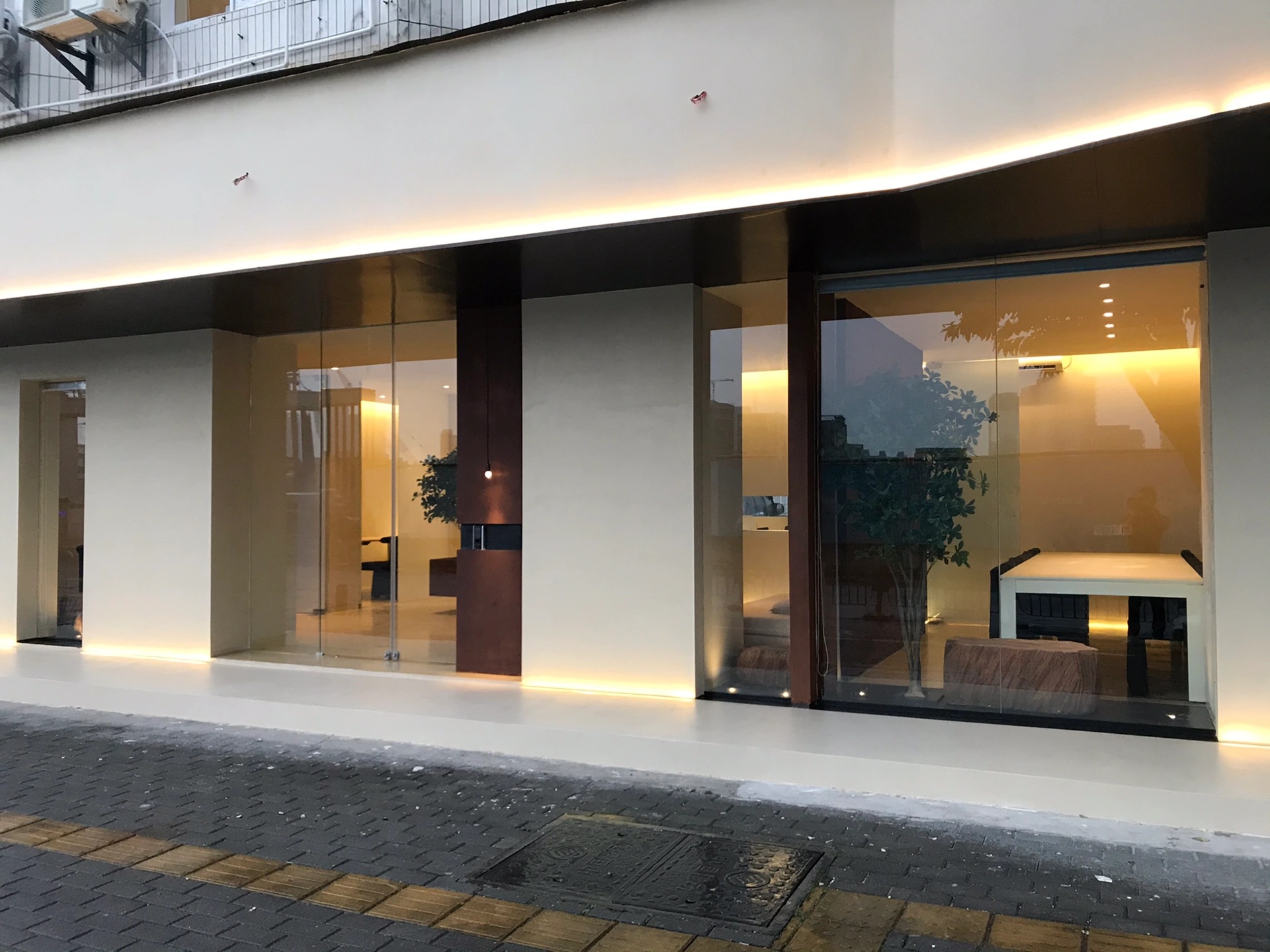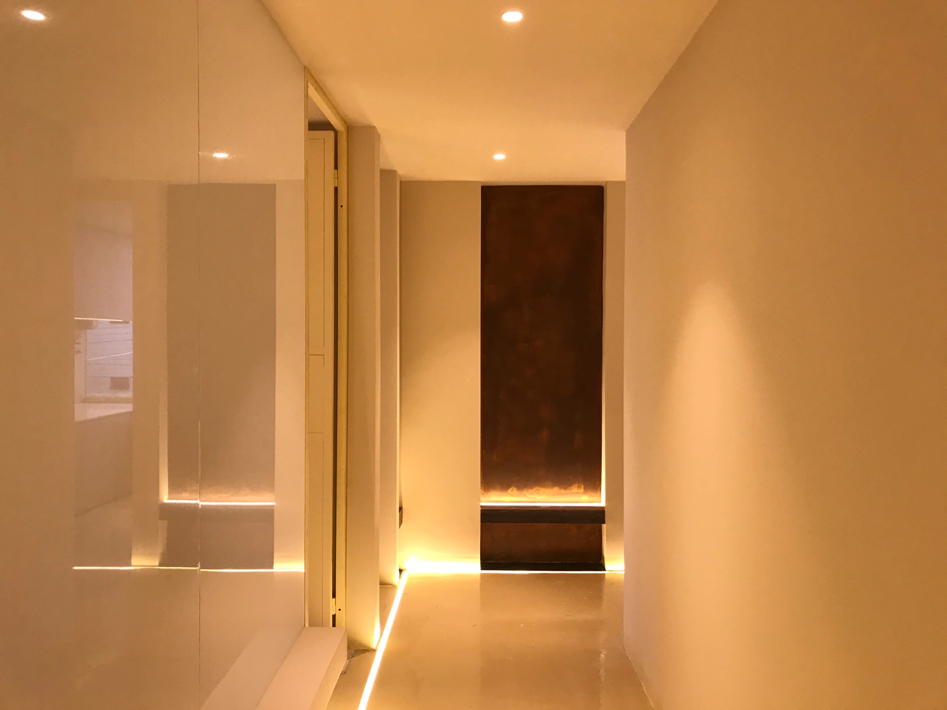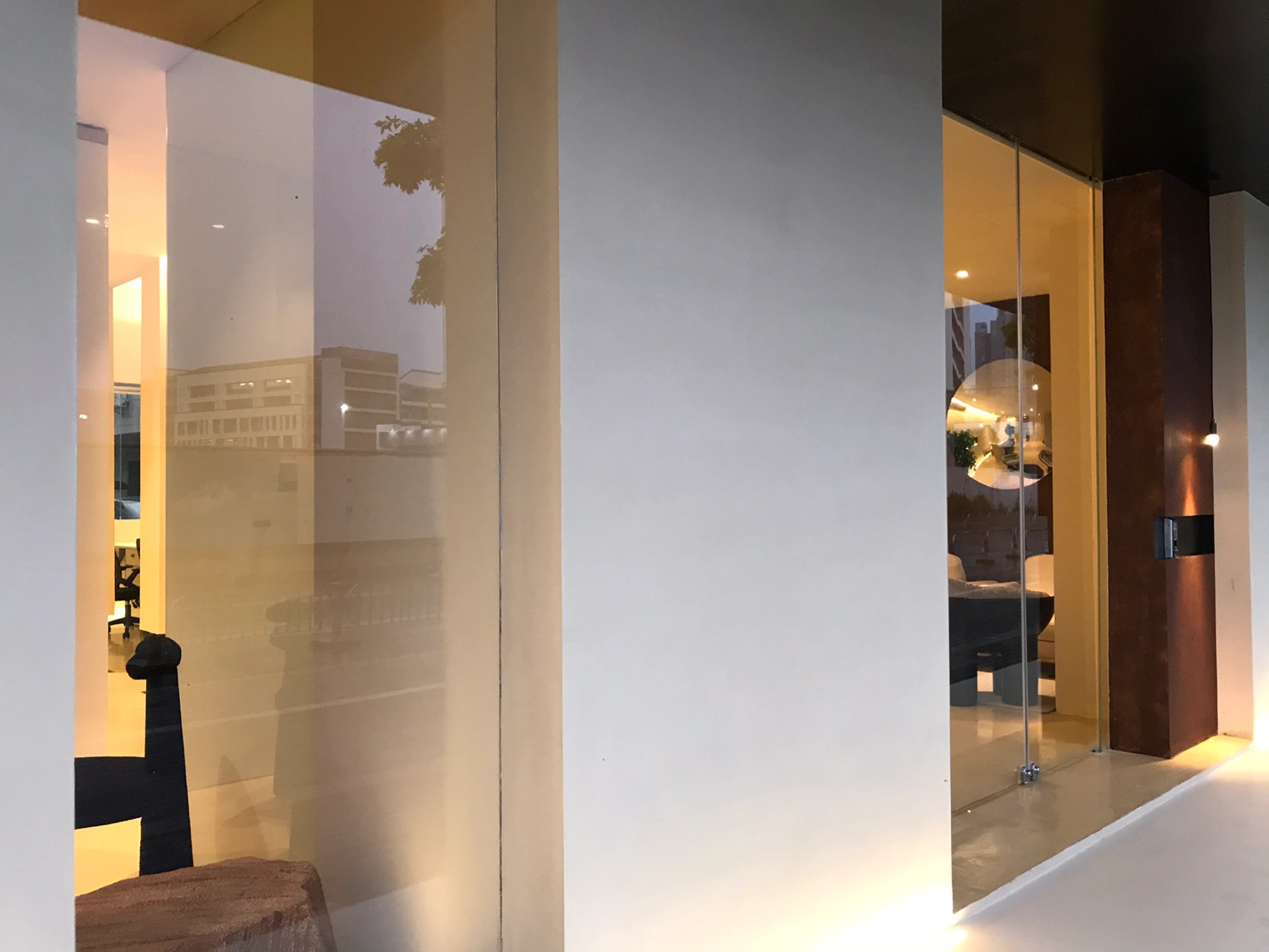 无论是转角处的一面镜子,还是半开放式玻璃空间,空间结构的块面,被折射的光勾勒出层次分明的旋律。