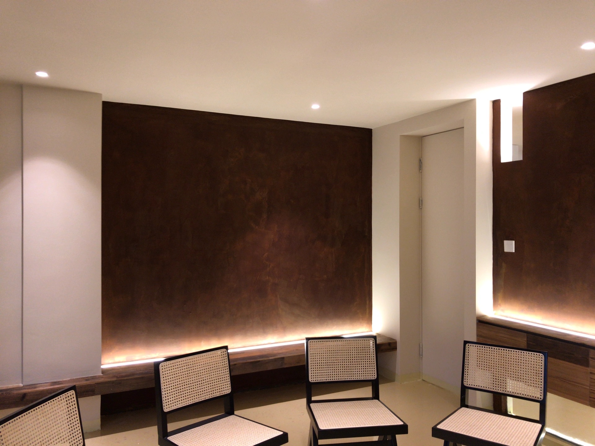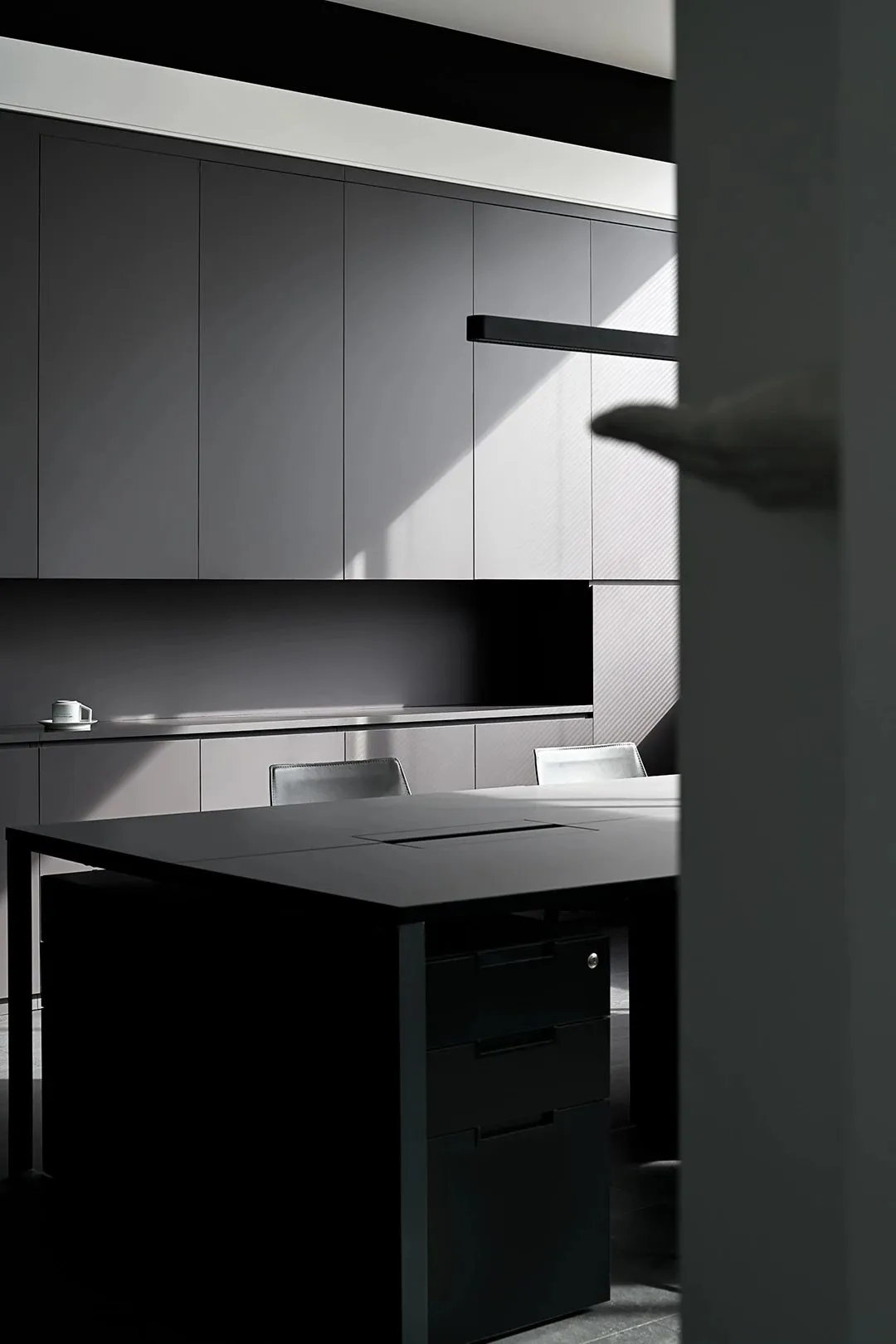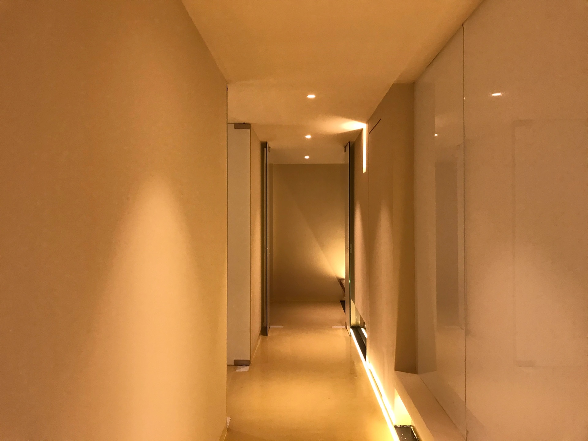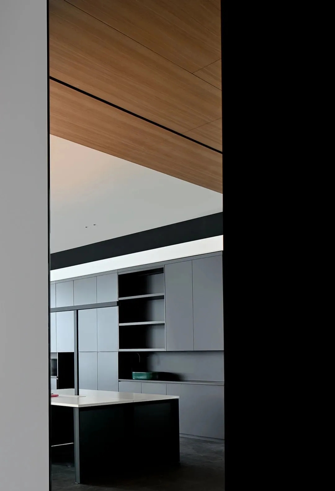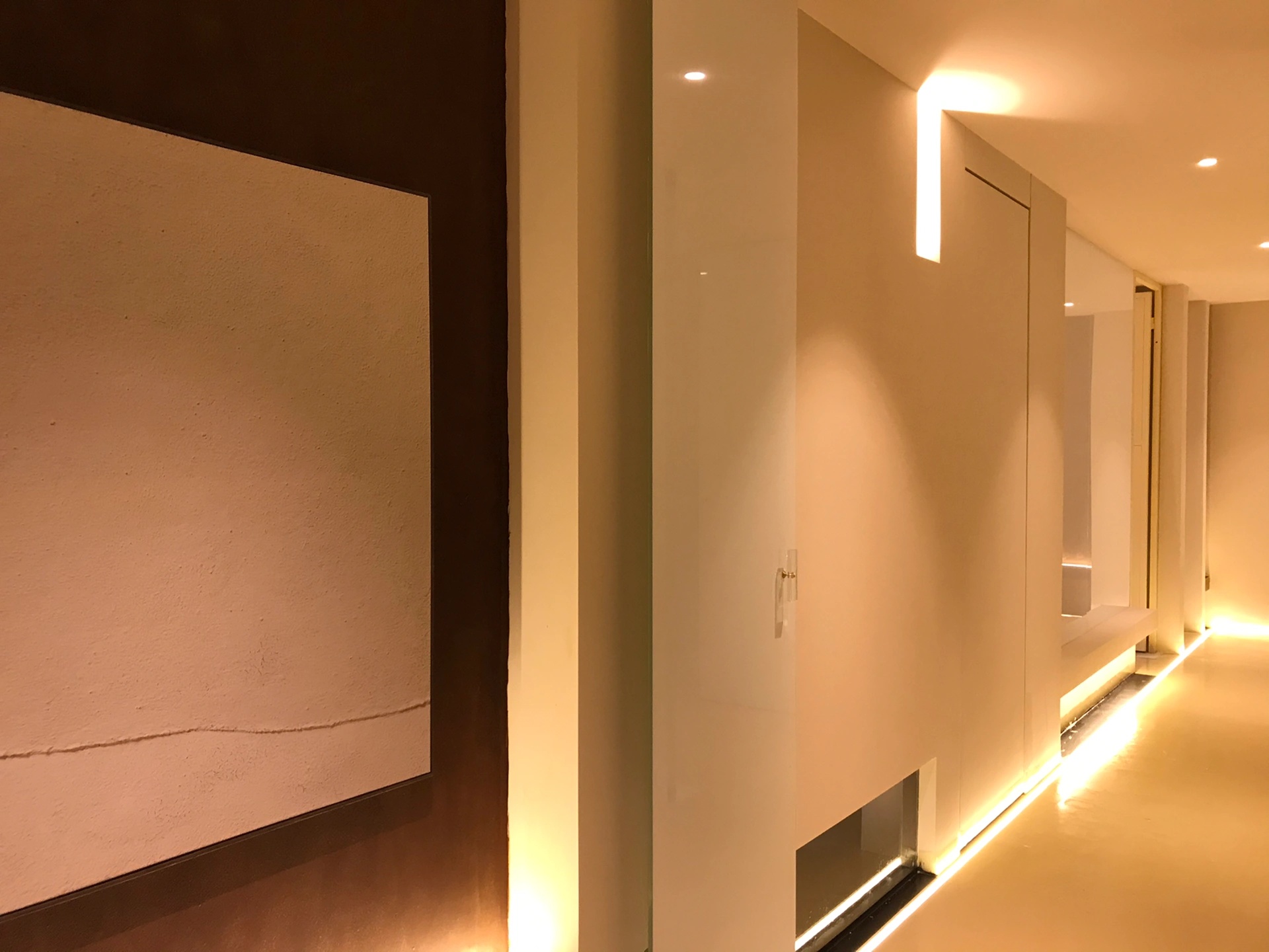 无论是转角处的一面镜子,还是半开放式玻璃空间,空间结构的块面,被折射的光勾勒出层次分明的旋律。