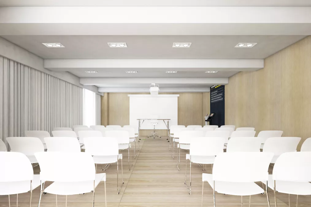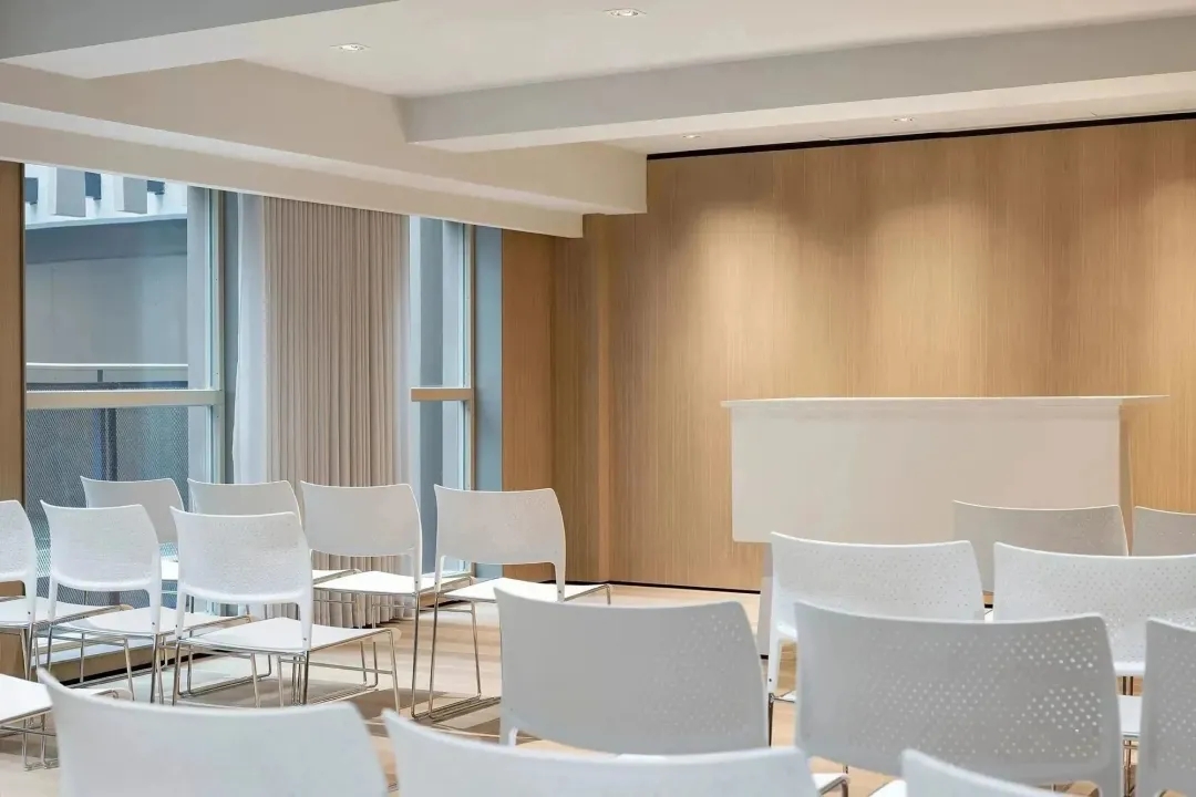 多功能会议室整体都秉承着现代简约的理念。通过色彩与质感合理区分出沉静讲究与年轻质感的空间。原木色空间采用的色彩与质地尽显细节之处的严谨,满足功能之外创造接近自然的精神需求;简洁空间从“轻量”着手, 减少商务厚重感。桌椅与天花的适度留白,及柔软地毯的色泽,体现了理性与感性平衡的现代风格。同时每一间均配备多端智能共享设施,充分满足企业各类型商务洽谈。