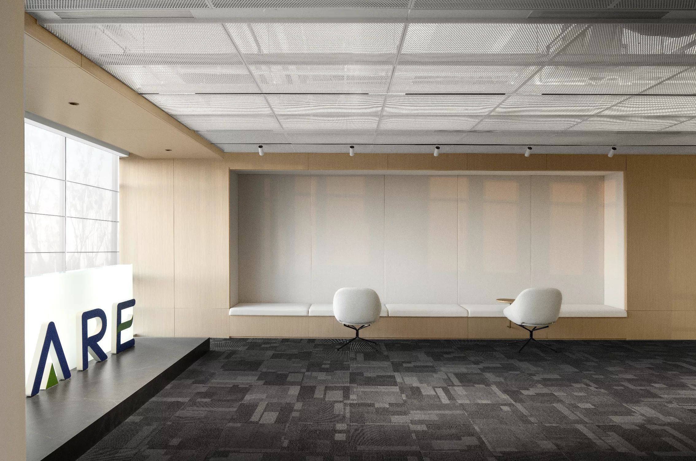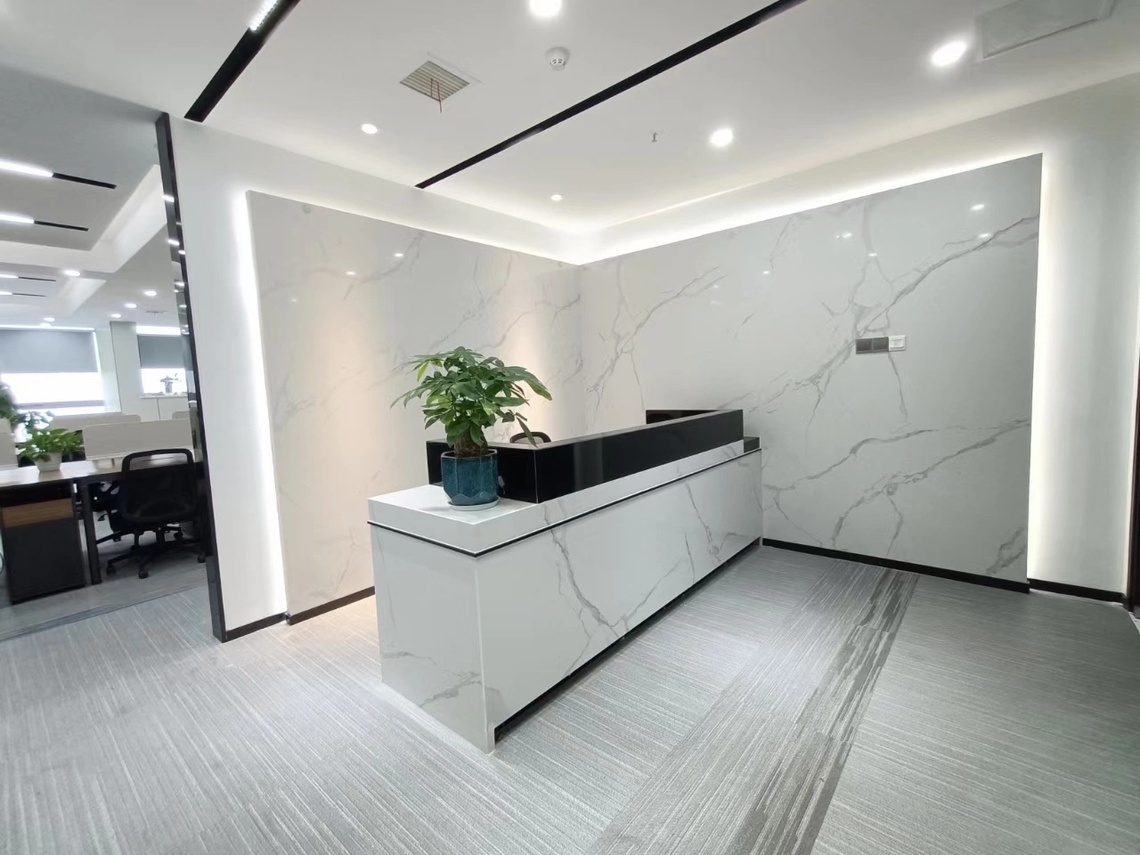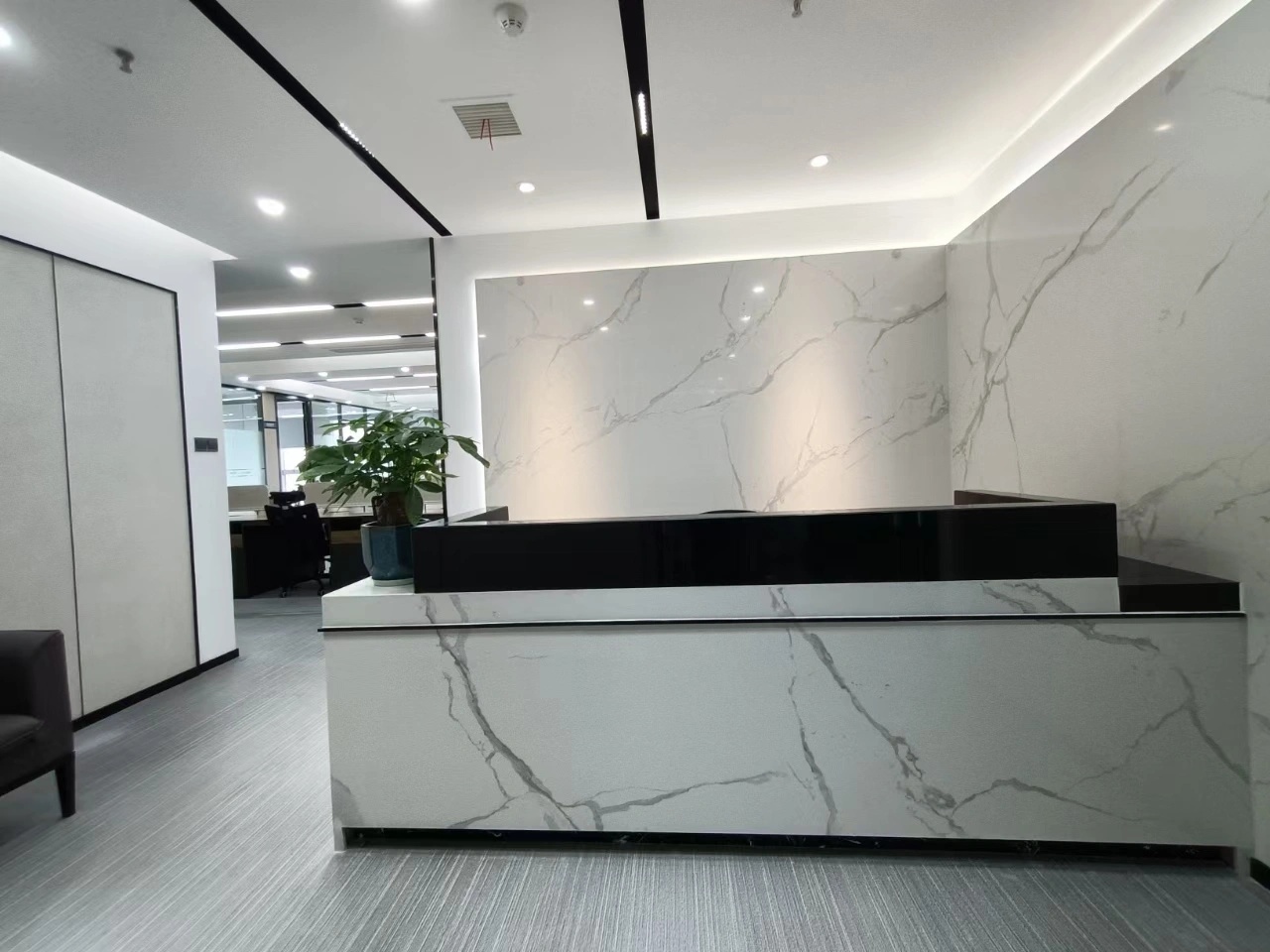 进门的迎宾区给到访的客户呈现了一个开阔的视觉空间,设计师将空间打开,将北面的阳光引入整个空间,是首次进入公司的人感受到空间赋予品牌的气场。