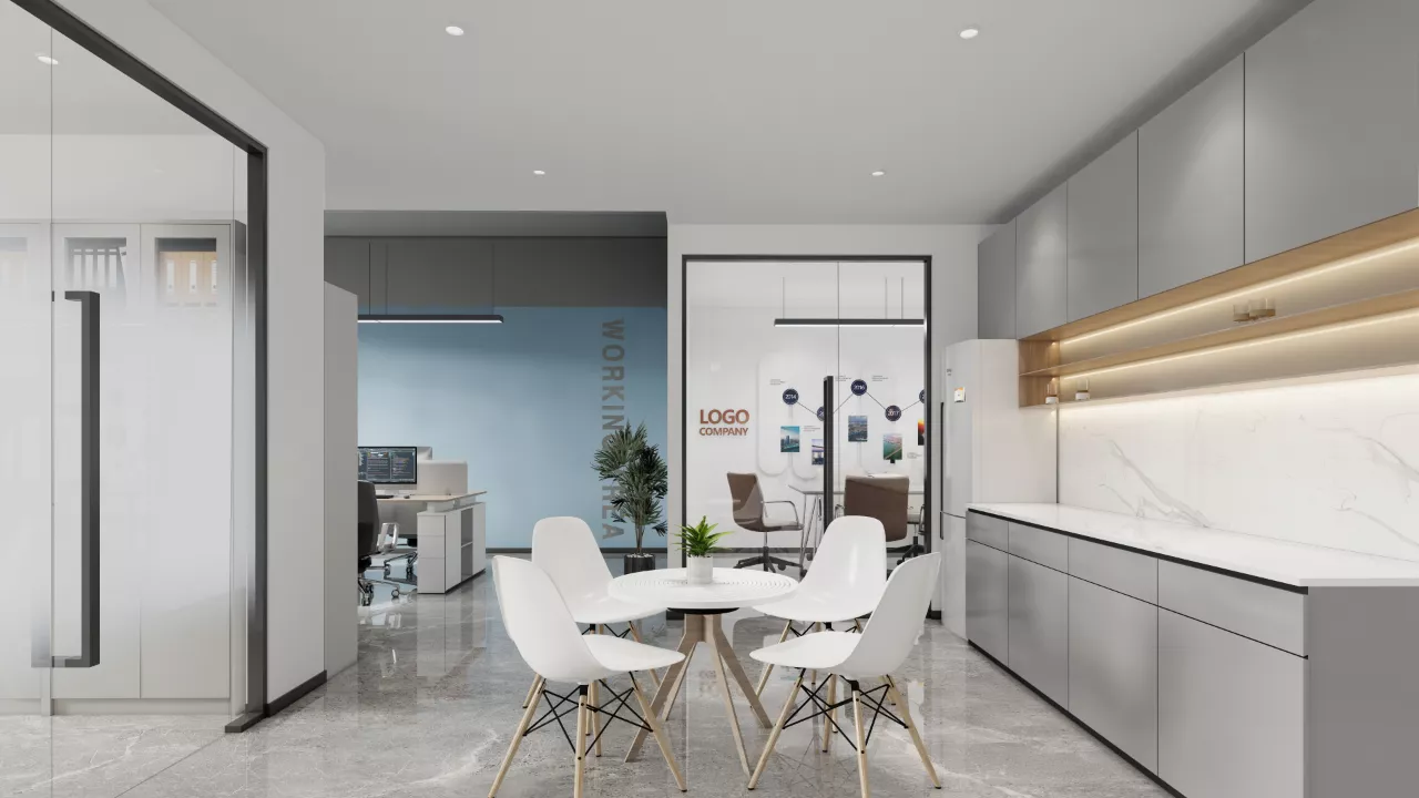 接待区旁边设置了洽谈区,让等候的客人可以从容的坐下喝一杯热茶,在如此舒适的办公环境中憧憬接下来的沟通洽谈。