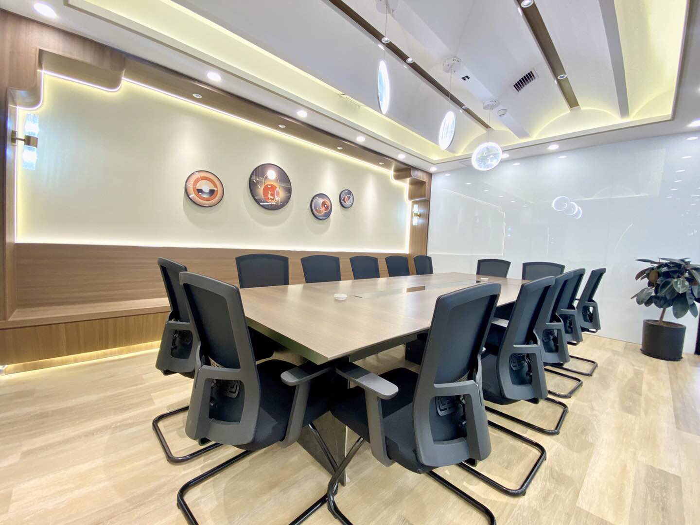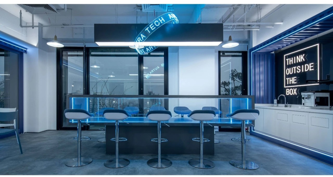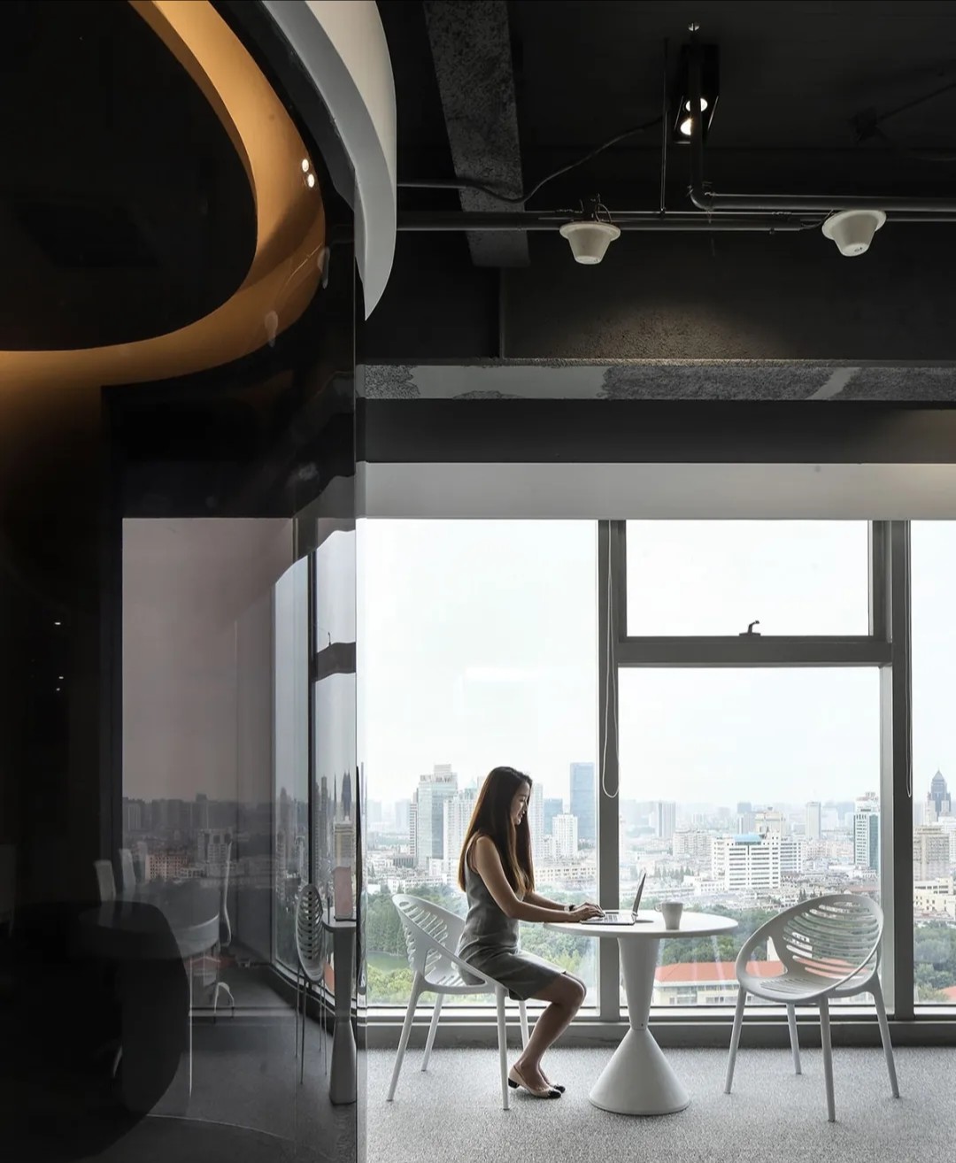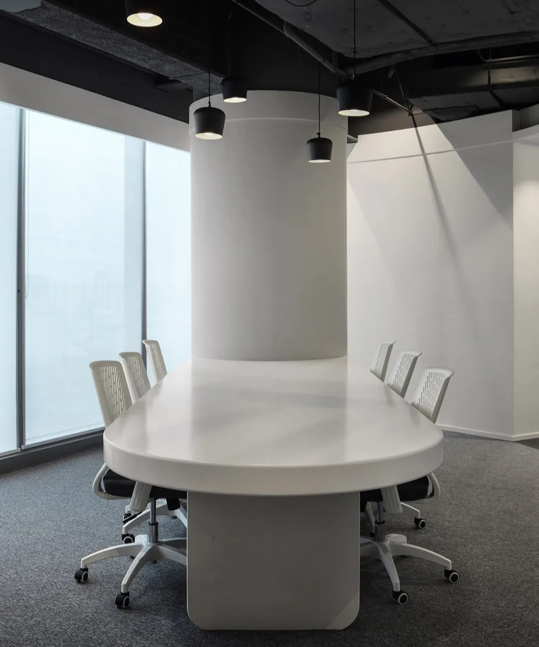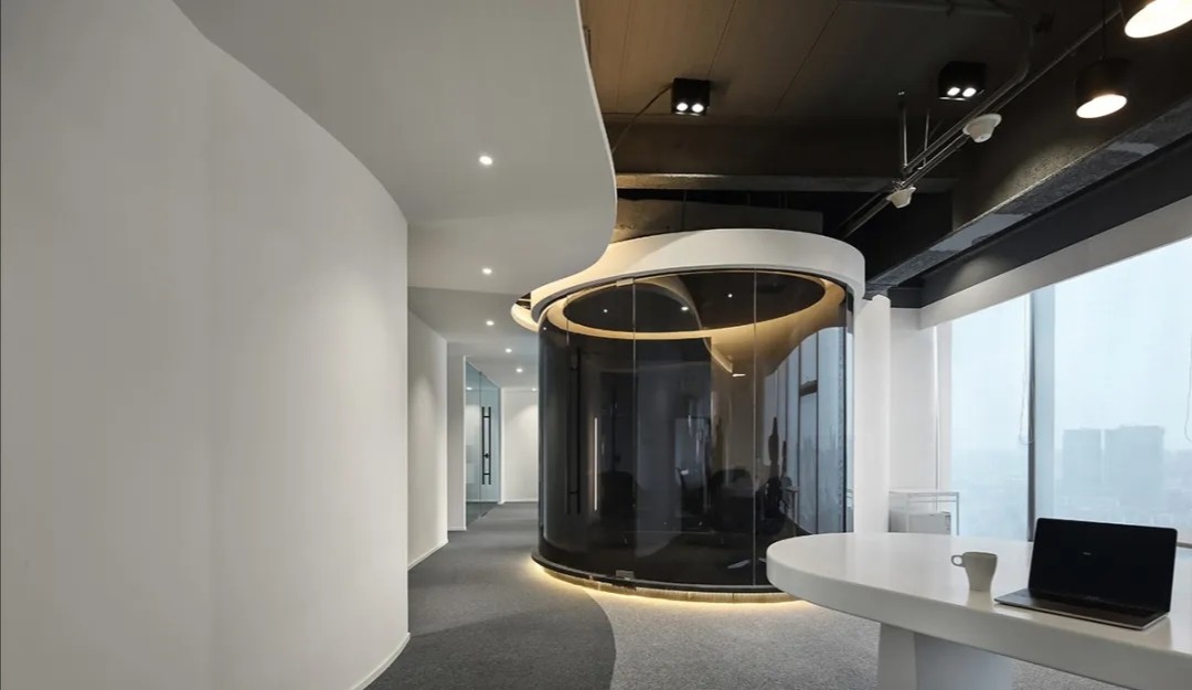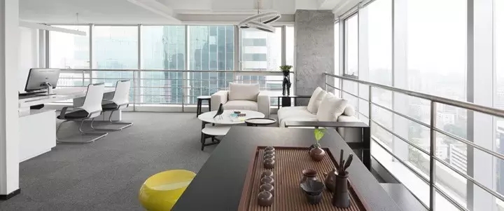 有两面墙是儿童白描手绘了这里的梦想,洽谈室是表达企业文化的茁壮大树向上的主题,办公区则是表达企业未来无限可能的游乐王国的主题。以“白、灰、绿”的色调融合简洁的线条呈现了现代办公美学空间的格调,在有形的场所中领悟无形的精神“喜悦、乐趣、宁静”。这里是梦想的开始,一个绿色的梦。