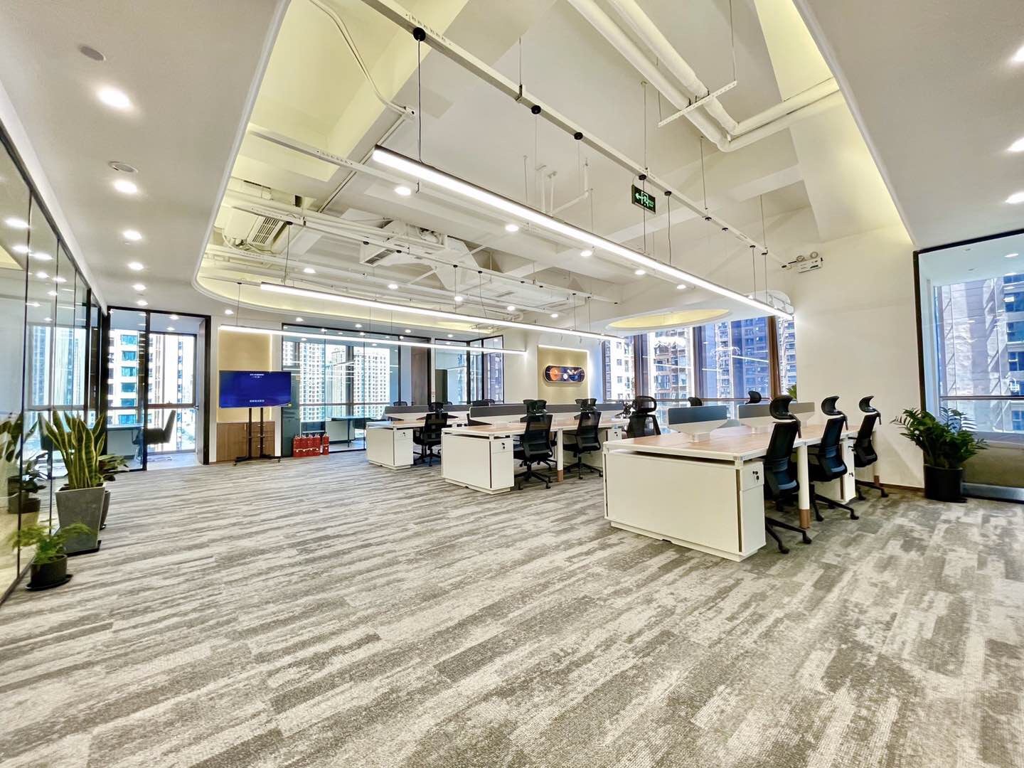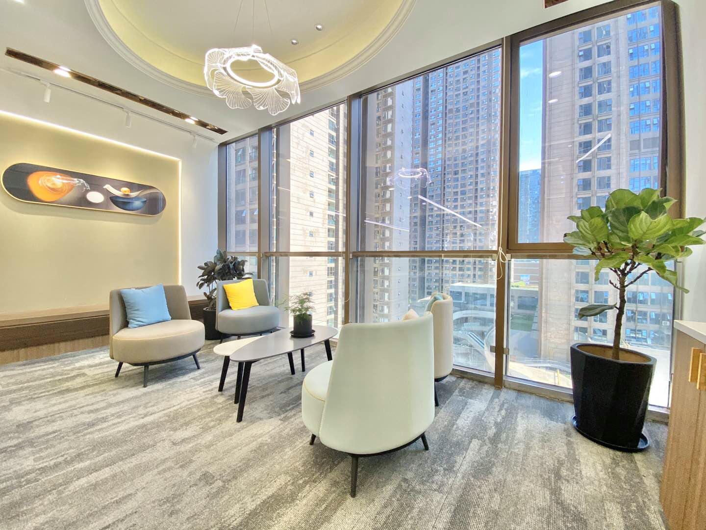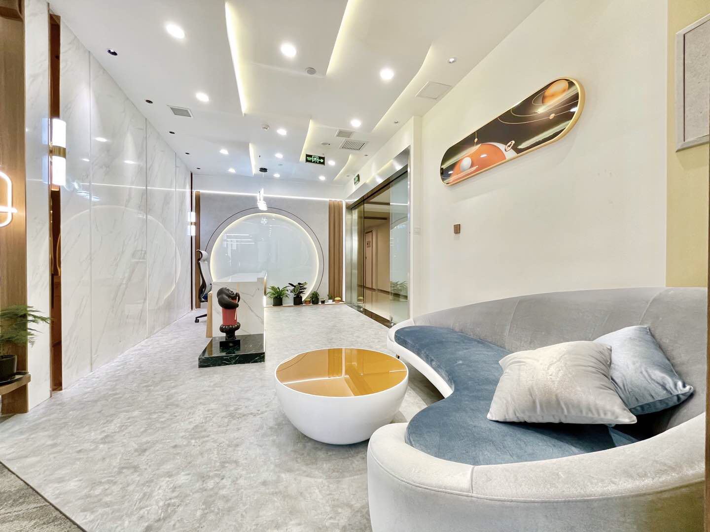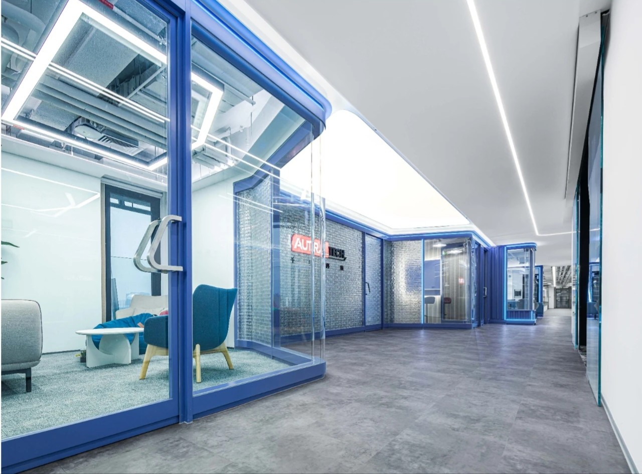 有两面墙是儿童白描手绘了这里的梦想,洽谈室是表达企业文化的茁壮大树向上的主题,办公区则是表达企业未来无限可能的游乐王国的主题。以“白、灰、绿”的色调融合简洁的线条呈现了现代办公美学空间的格调,在有形的场所中领悟无形的精神“喜悦、乐趣、宁静”。这里是梦想的开始,一个绿色的梦。