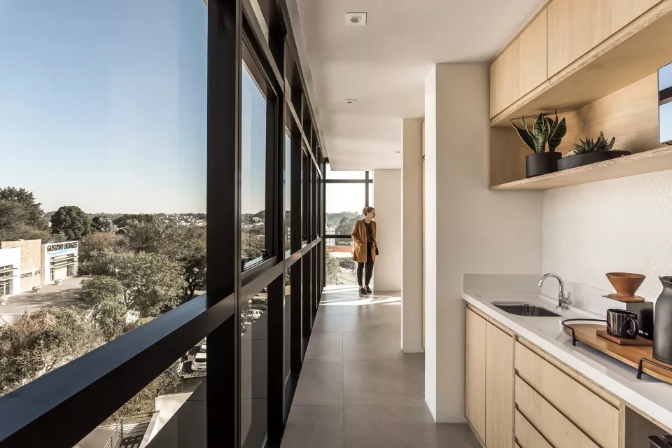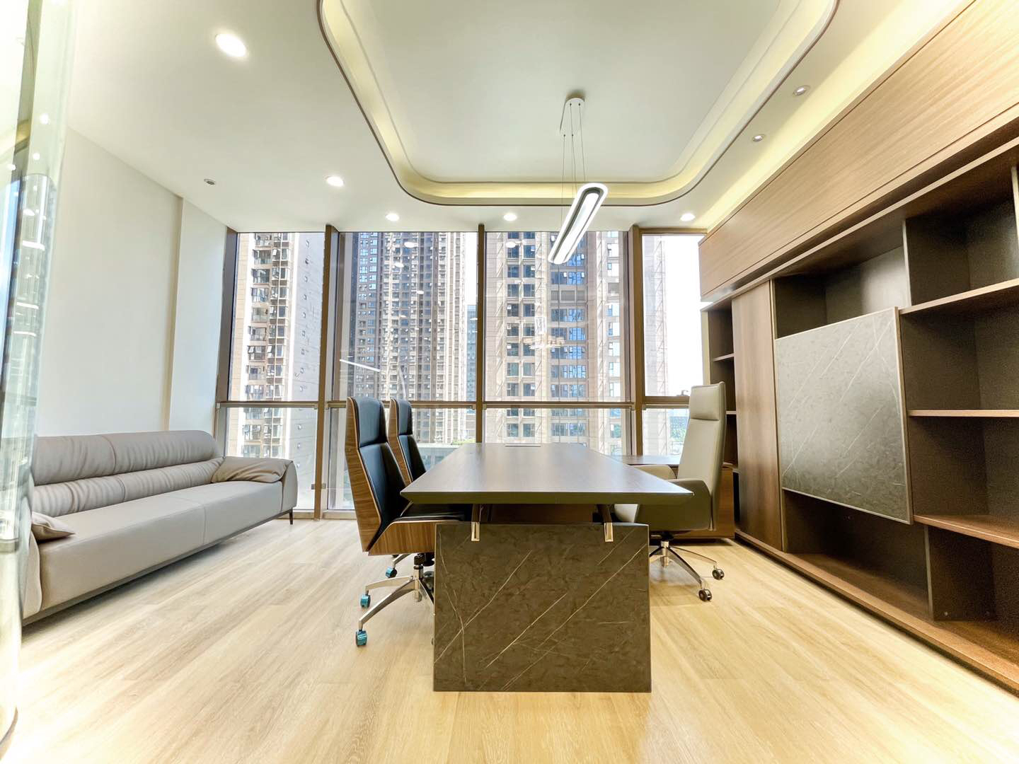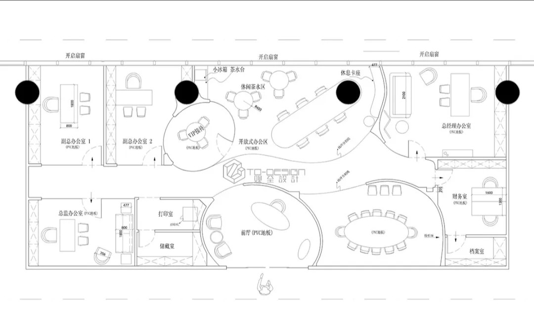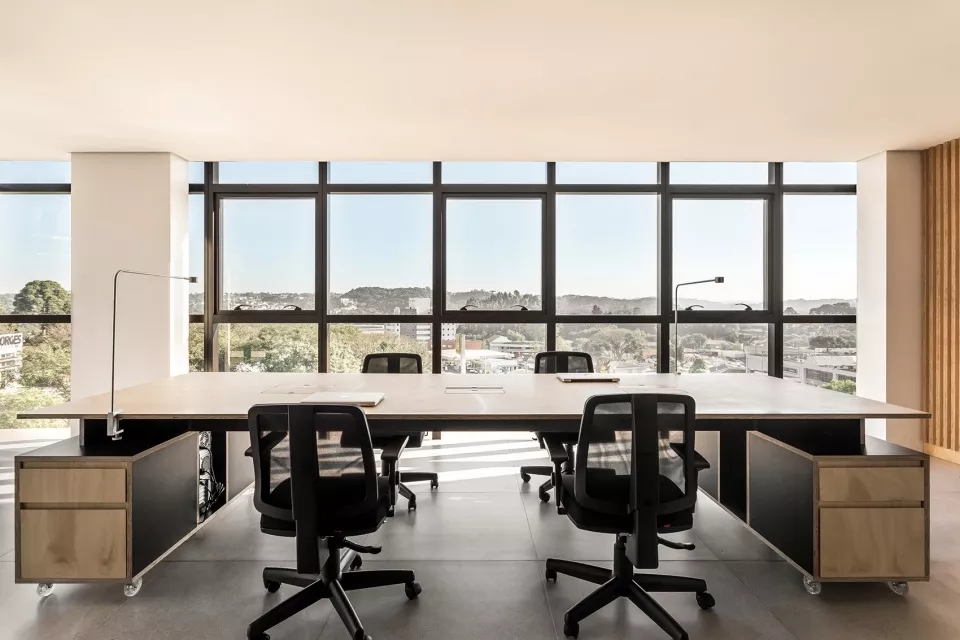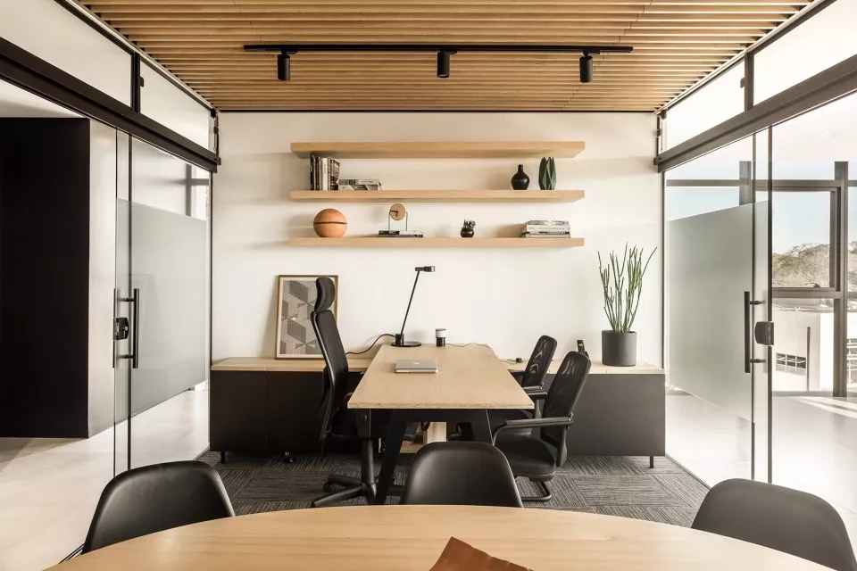 项目最大的挑战是房间中央区域作为支撑中心体量和划分空间组织的中心柱。而余下的挑战是客户需要一间封闭的会议室和一间封闭但同时具备开阔视野的办公空间。解决方案是利用沿周长设定的交通空间串联起整个项目的空间。设计师在现有柱子的位置建造了两堵平行的墙壁,墙中包括储藏空间、档案空间和一个位于中央的既作为办公空间又充当会议空间的玻璃盒子。凭借这种开明的解决方案,项目不仅保留了面朝整个公园的广阔视野,并且还保证了房间内充足的自然光线。