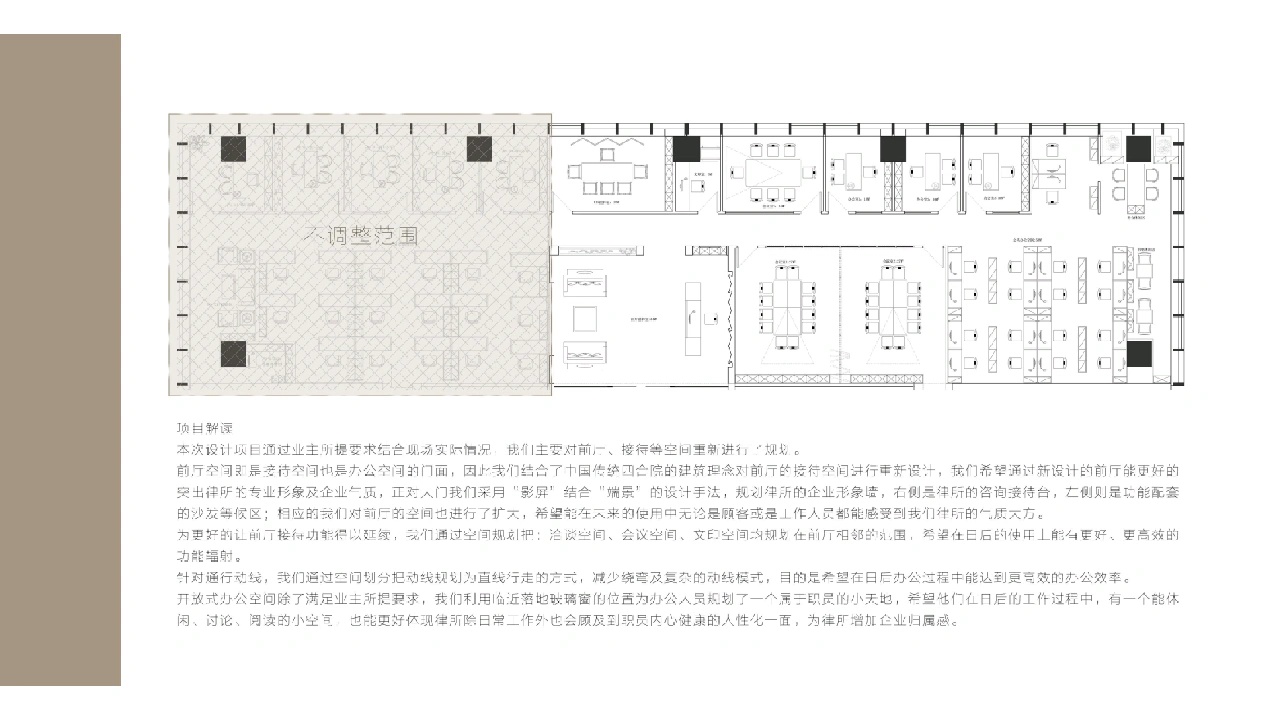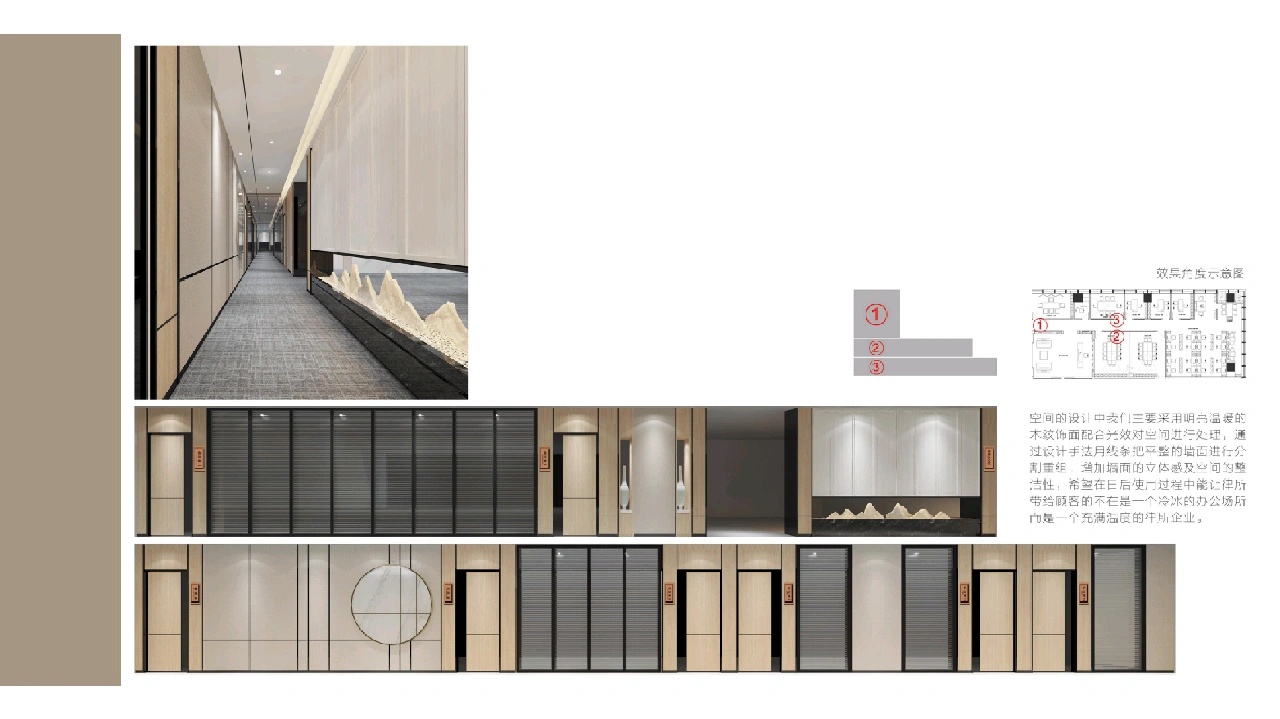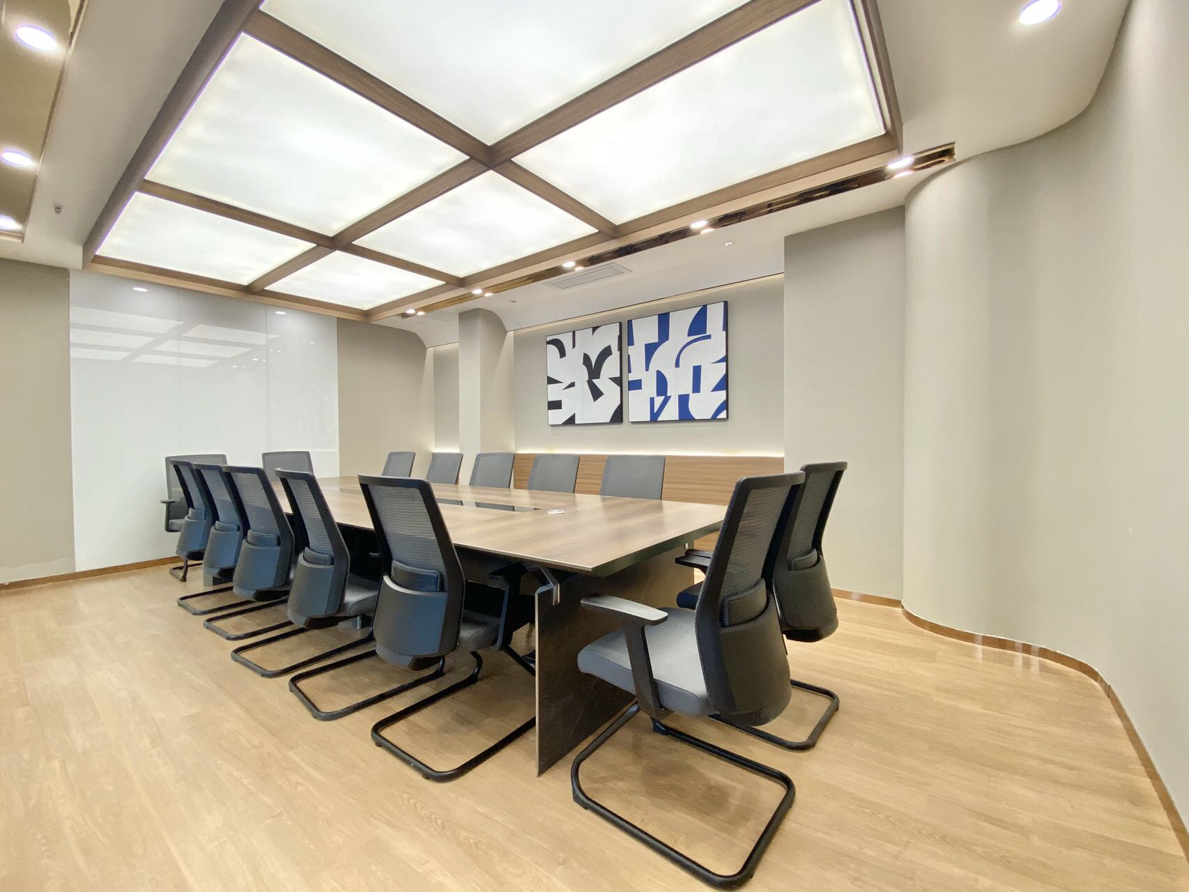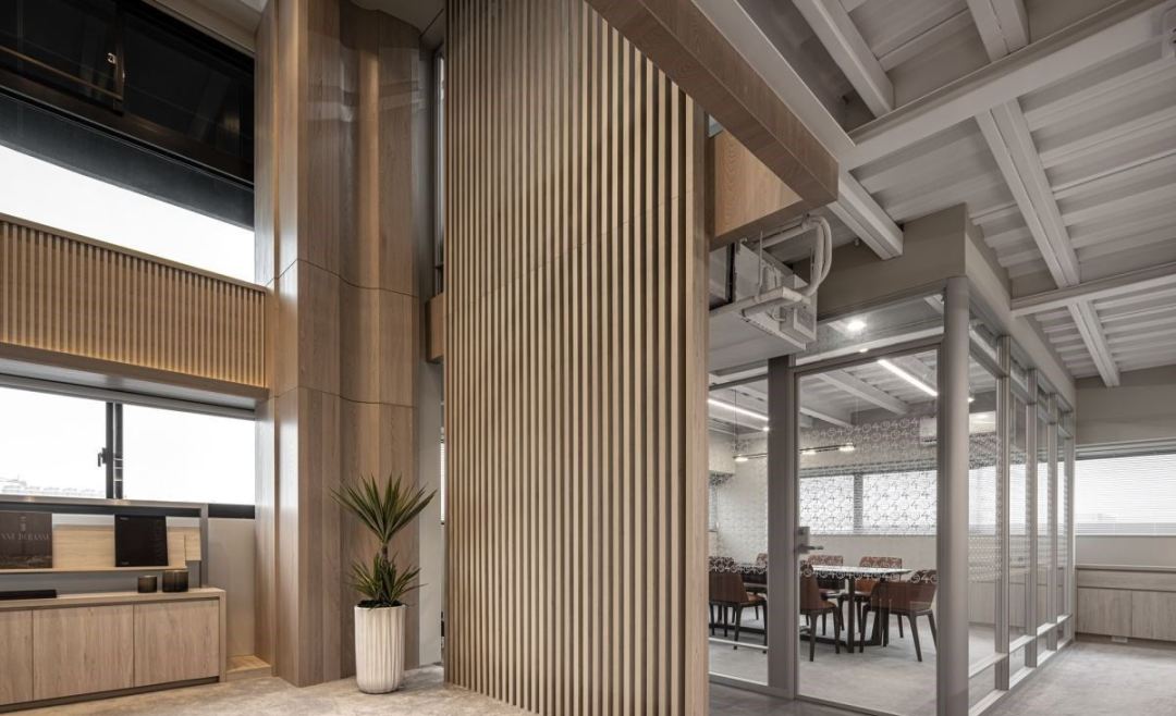 采用现代简约风格的办公空间,洋溢着理性时尚的舒适感,色调选择上以纯白色为主轴,结合利落的结构线性和简洁和谐的视觉表现,提升思考和工作的效率。而空间底端为浅木色格栅的垂直梳络,既延展温润而大器的高度比例,也在光影和视线的隐现之间,给予充分的会议隐私性。