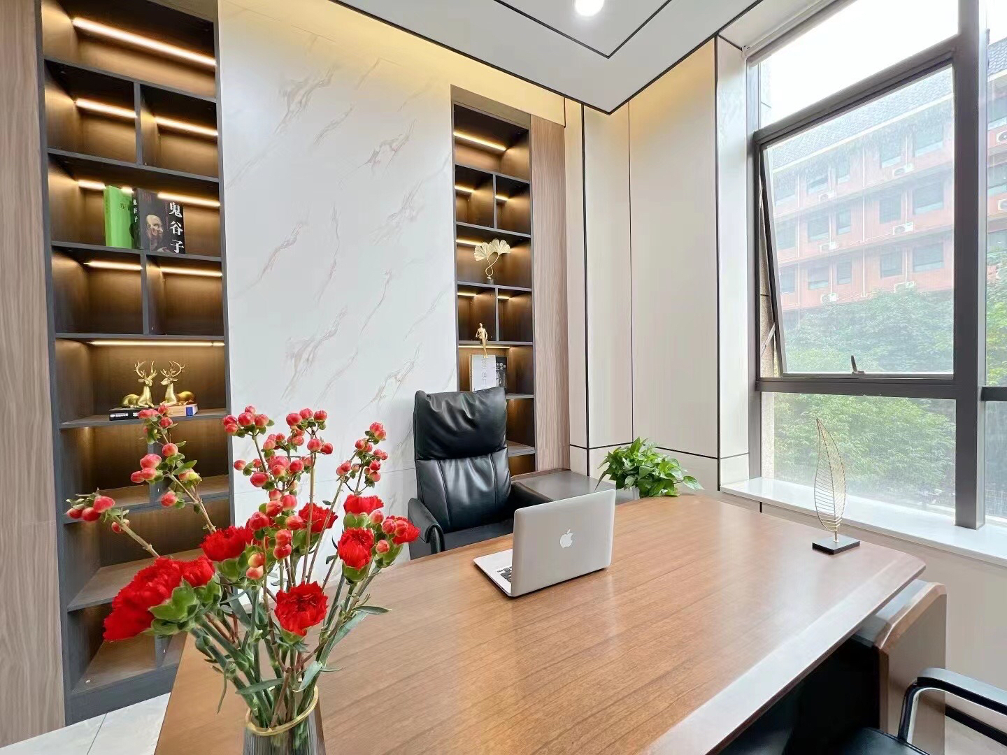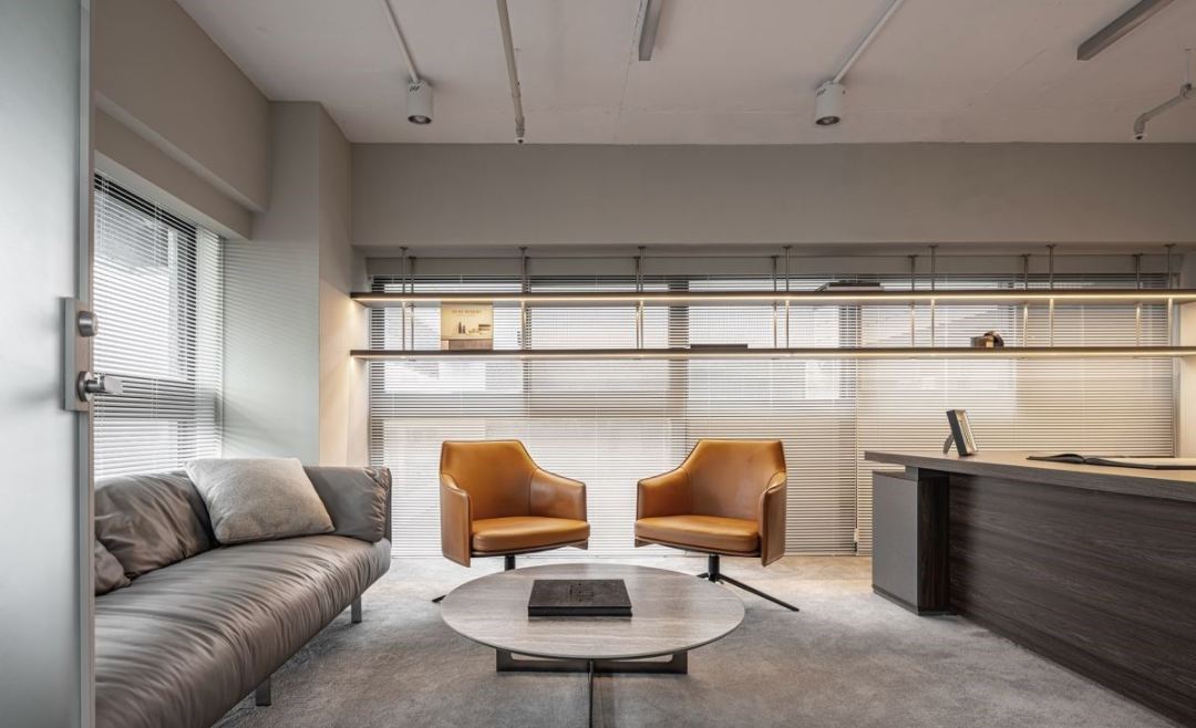 主管办公室安排于二楼空间,纳入工作和会客的机能,室内延续简洁理性的线条和色彩使用,并以温醇厚实的木质办公桌,搭配鲜艳的单椅色彩,既展现高阶管理者的气度,也带来了崭新时髦的企业意象。