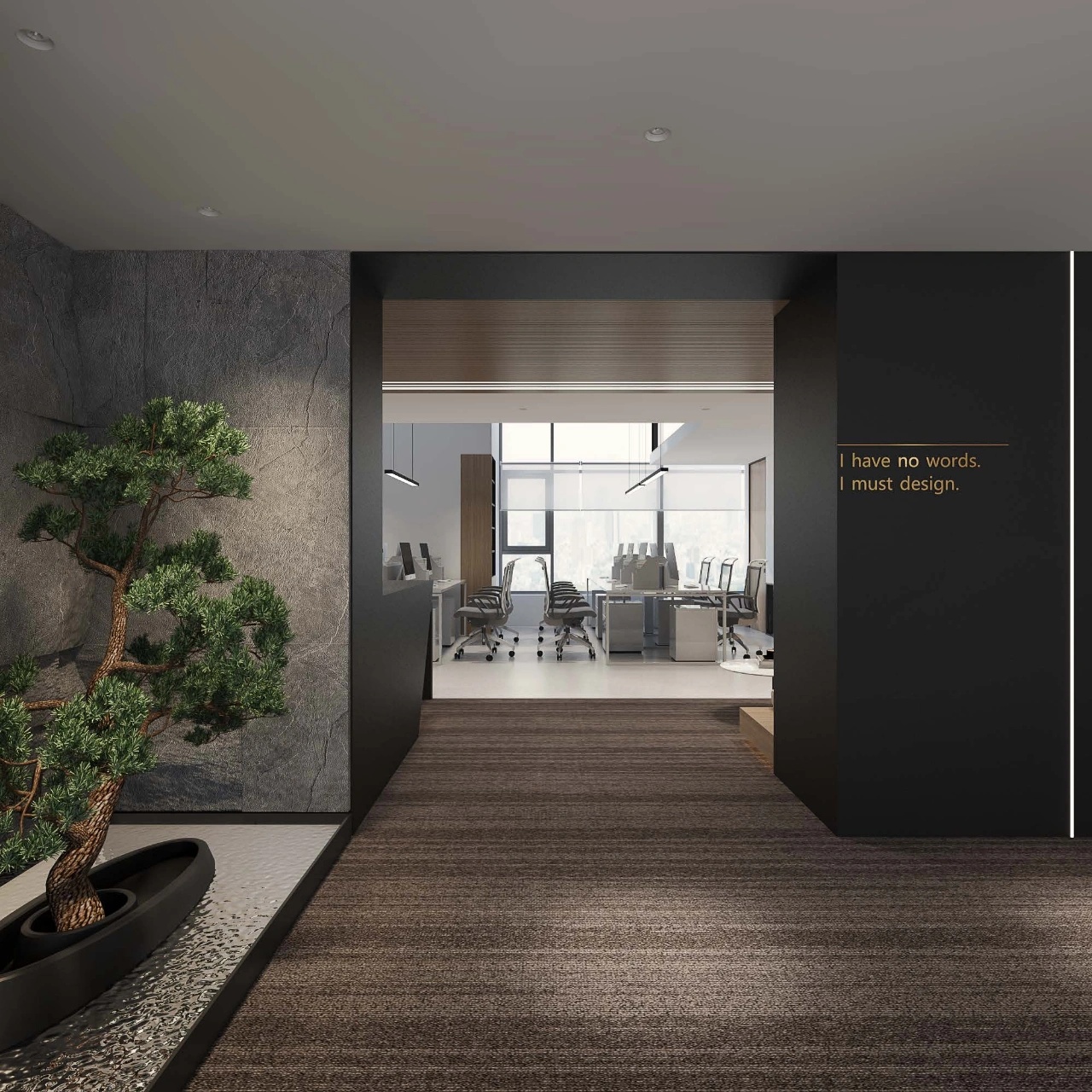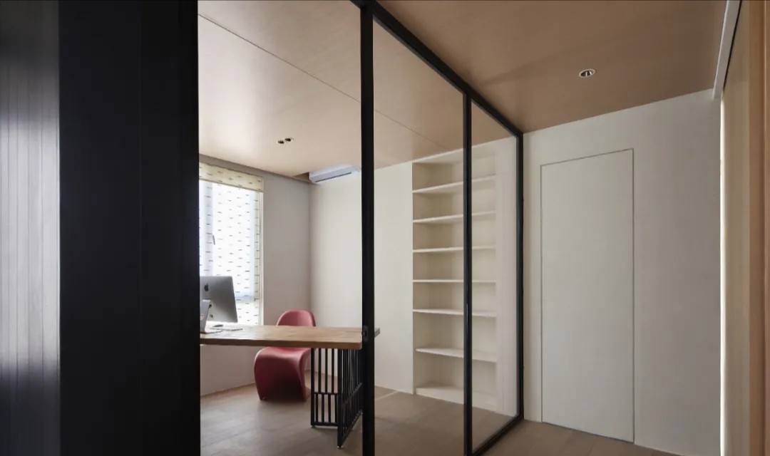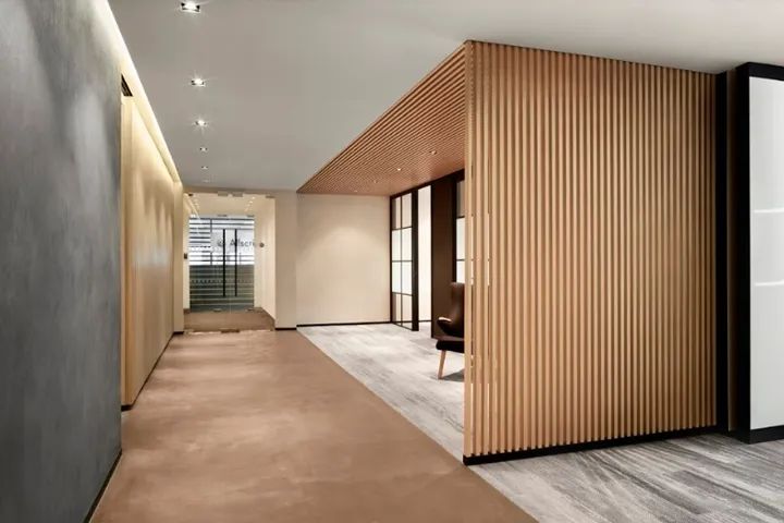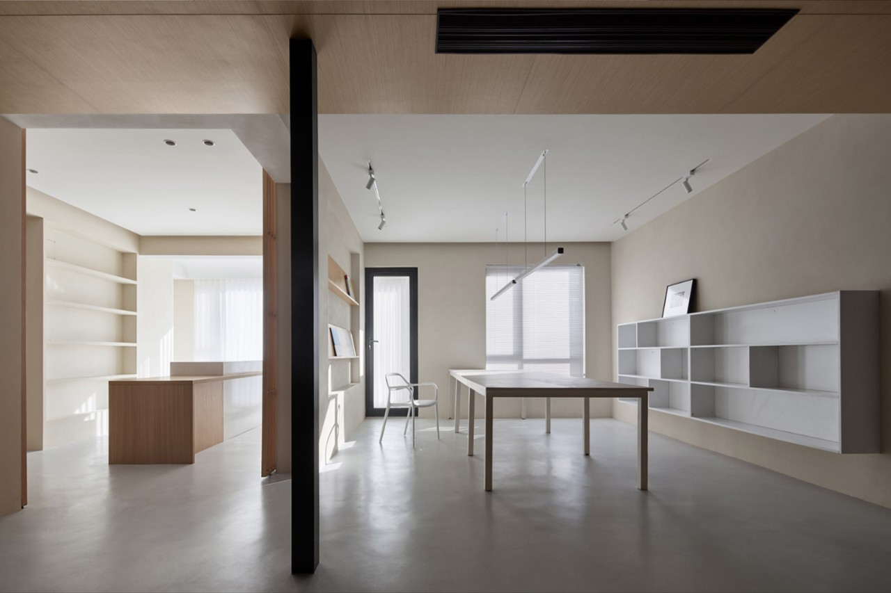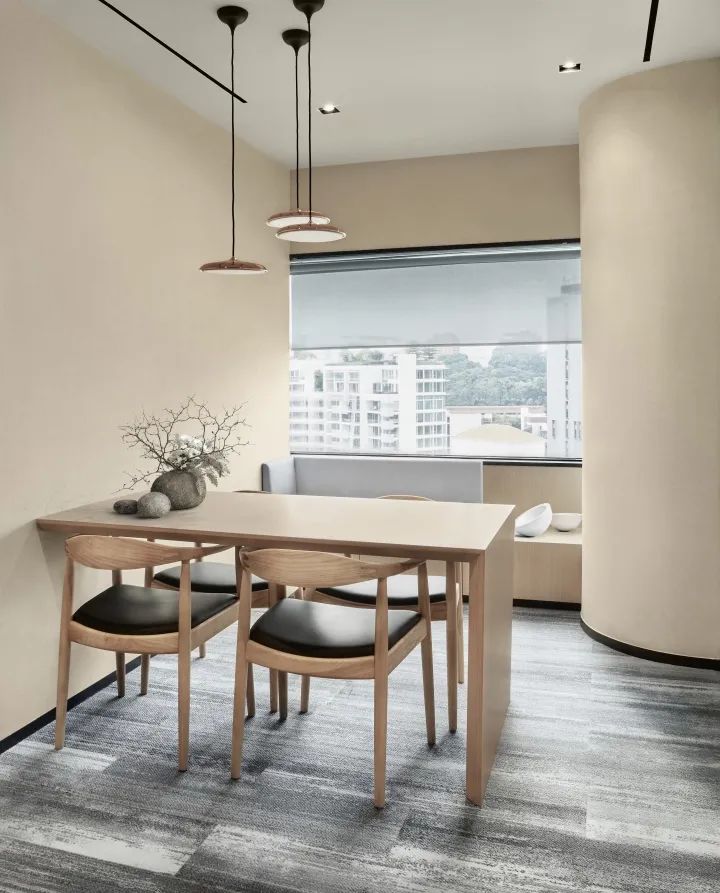 前台右侧位是两间采光良好的洽谈室,洽谈室内侧则隐藏着一间实用的收发室。设计的智慧在于物尽其用每一寸空间,感受上却又毫无局促之感,只觉是自然流淌,一切尽在情理之中。