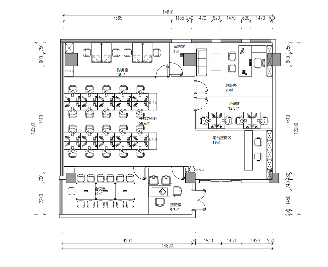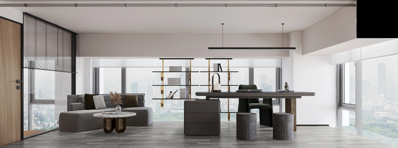 总经理办公室和会议室均采用石膏板吊顶,彰显空间大气,又确保其私密性