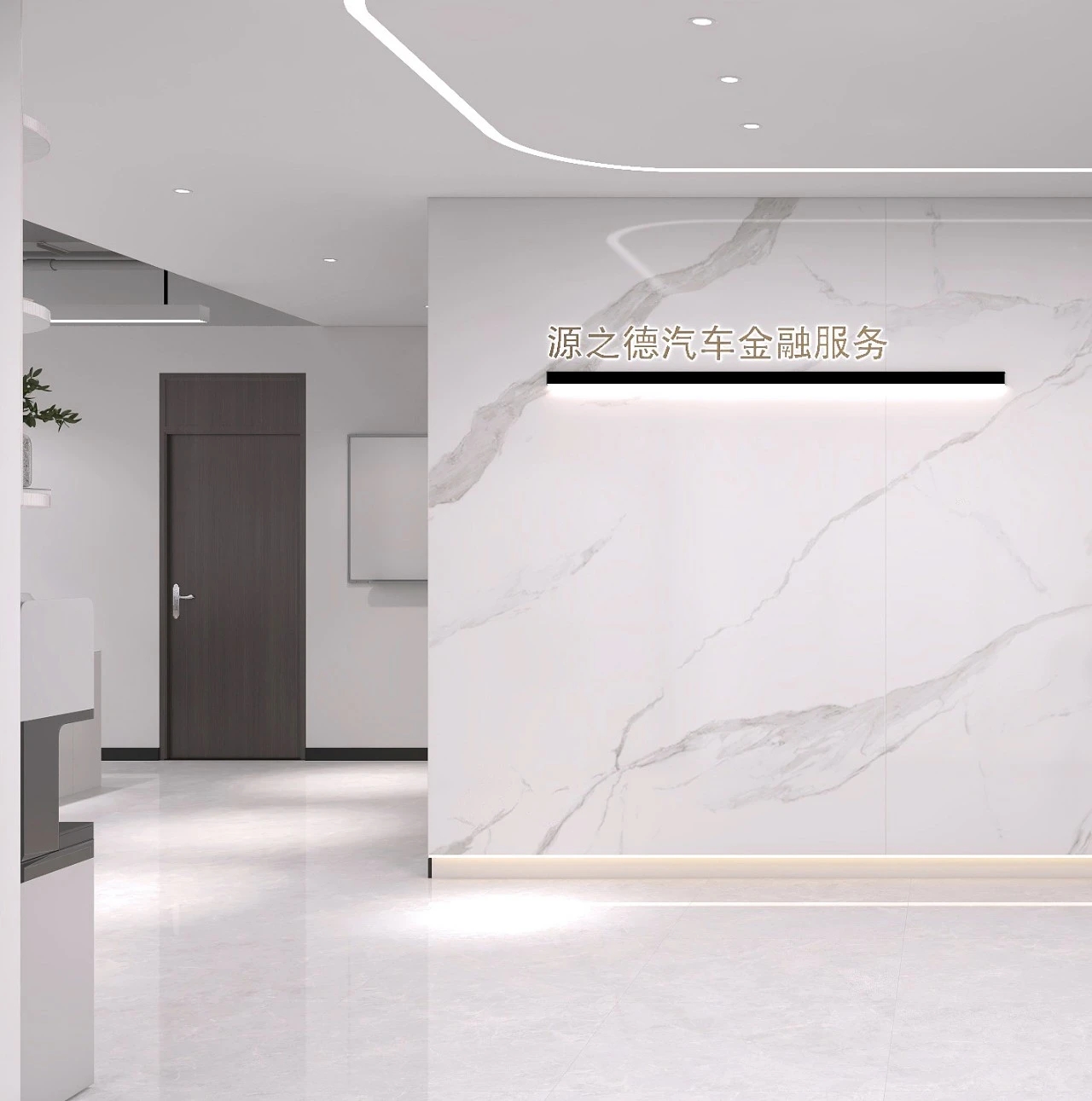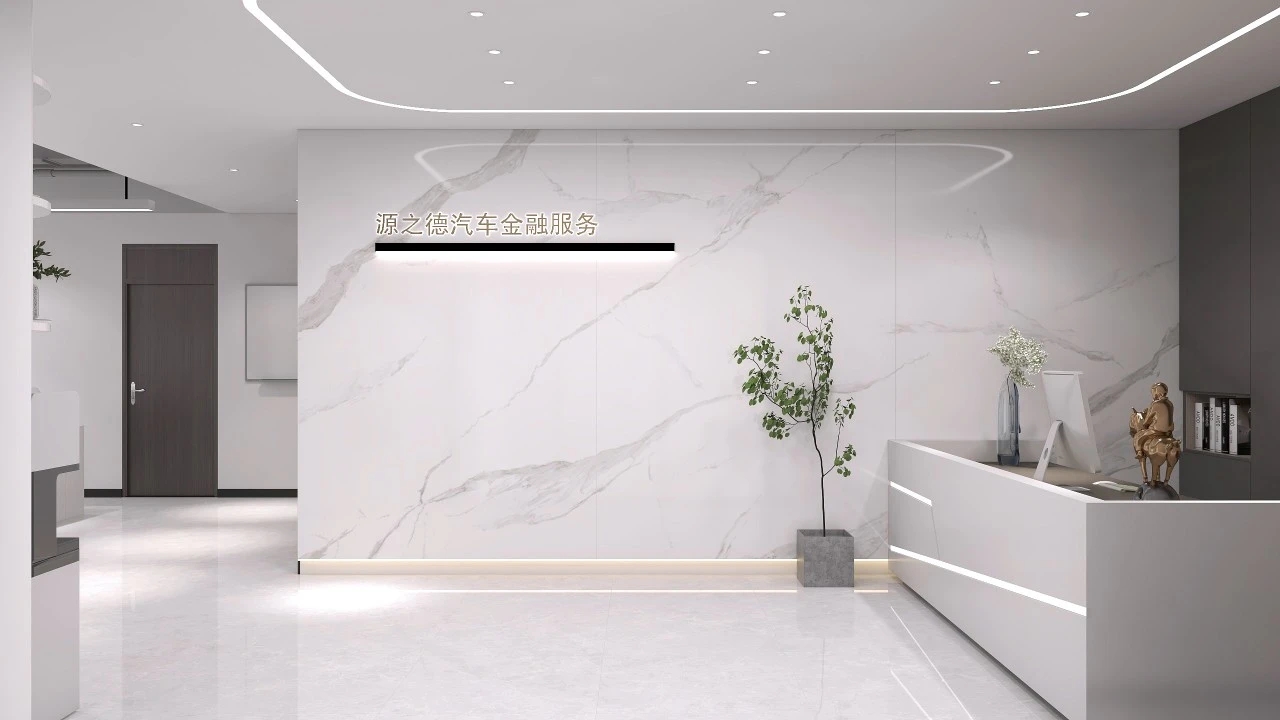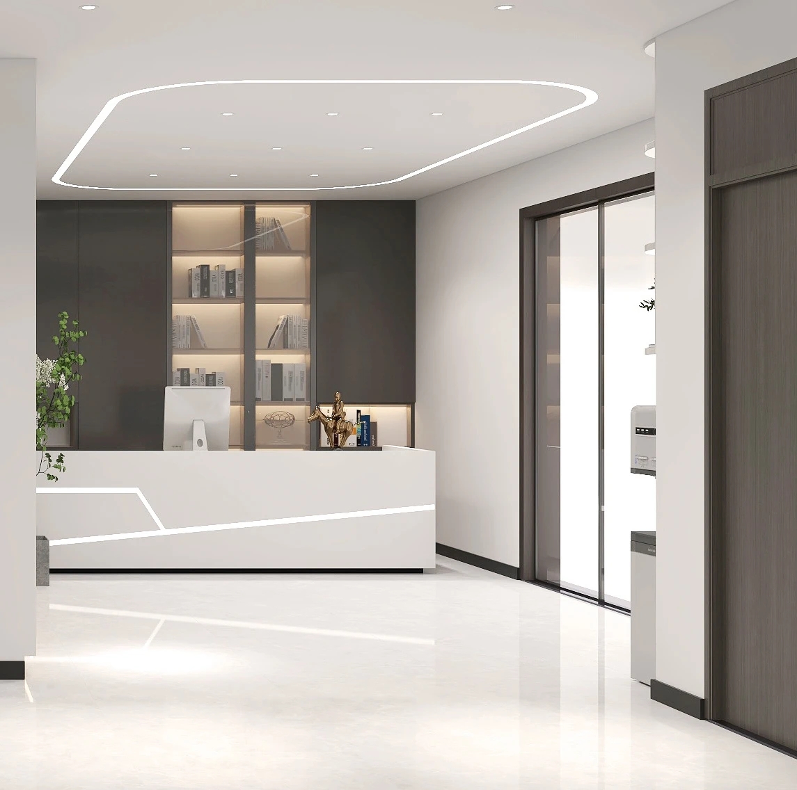 入户前厅设计,前台+形象墙,石膏板隔墙加石材,结合弧形灯光,让空间显得明亮,有气魄。