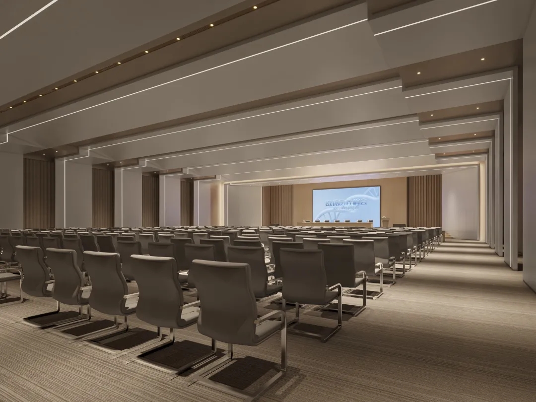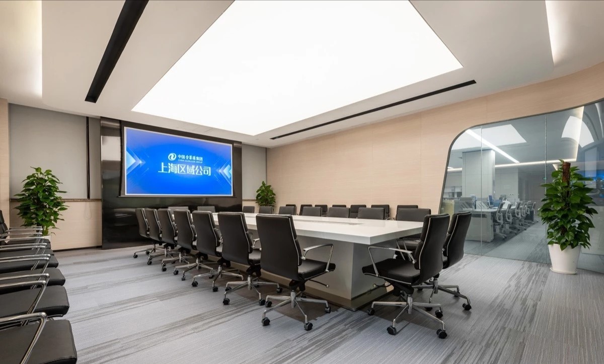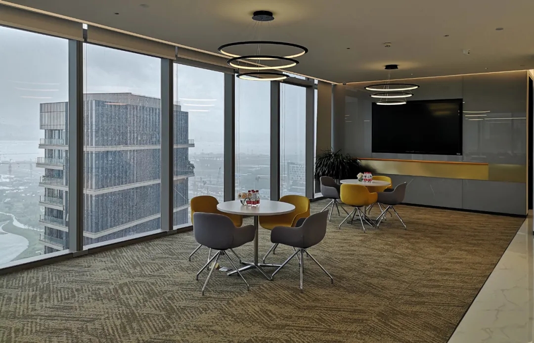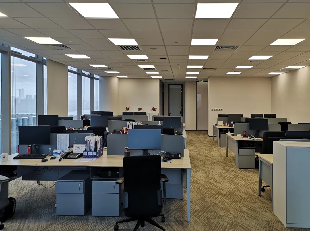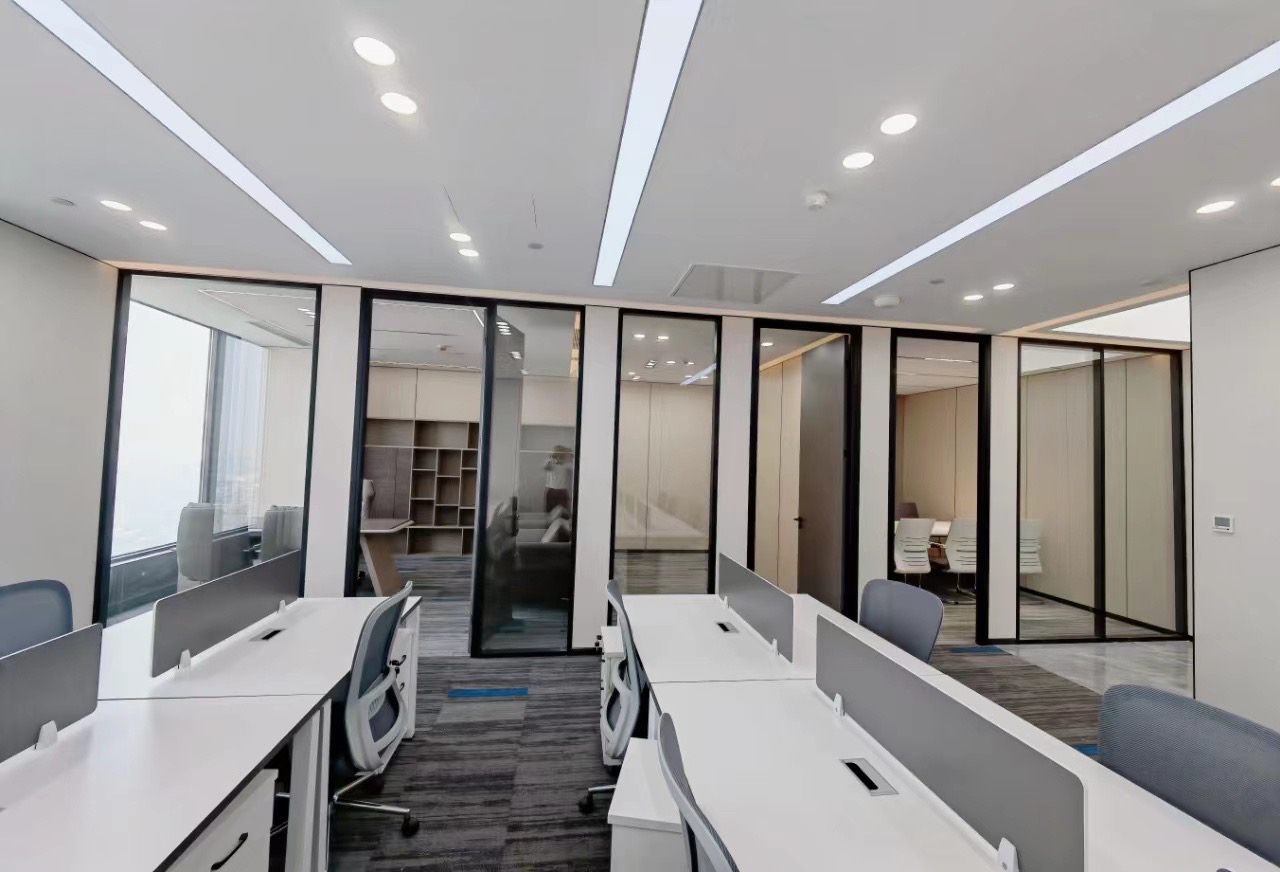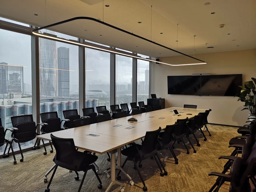 开敞办公区采用线条灯无缝拼接,与室内家具陈列相呼应,强调空间动线,局部区域采用深照型宽光筒灯,保证工作面的照度及均匀度的同时很好的避免了眩光,满足空间视觉舒适度。边柜内部暗藏灯带,丰富空间整体层次,提升空间内在意境。