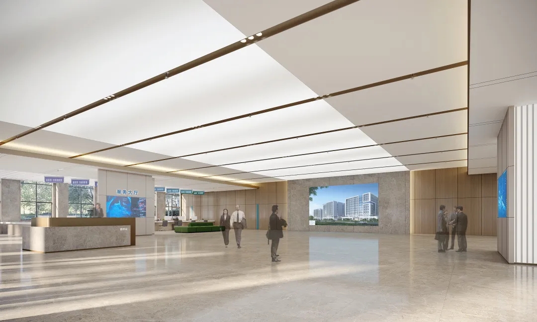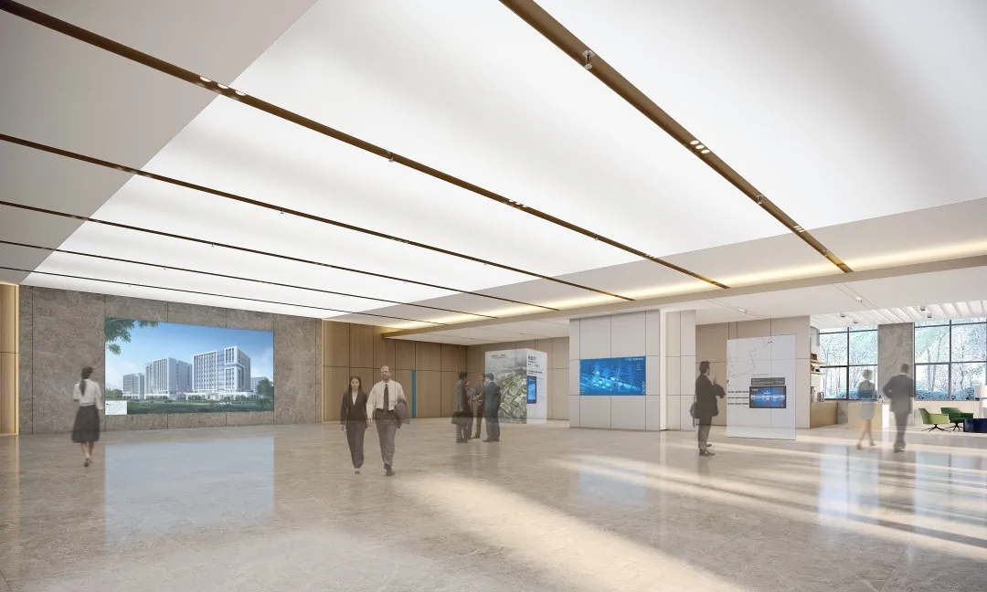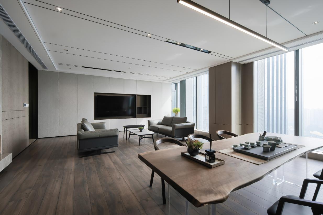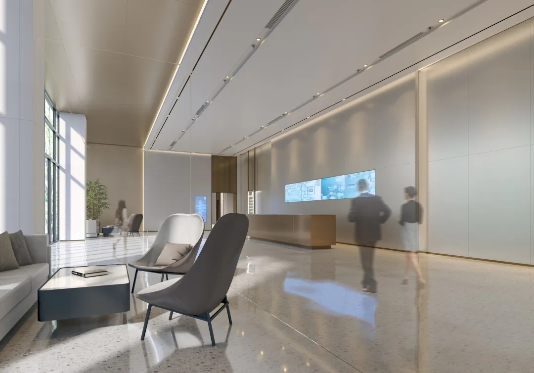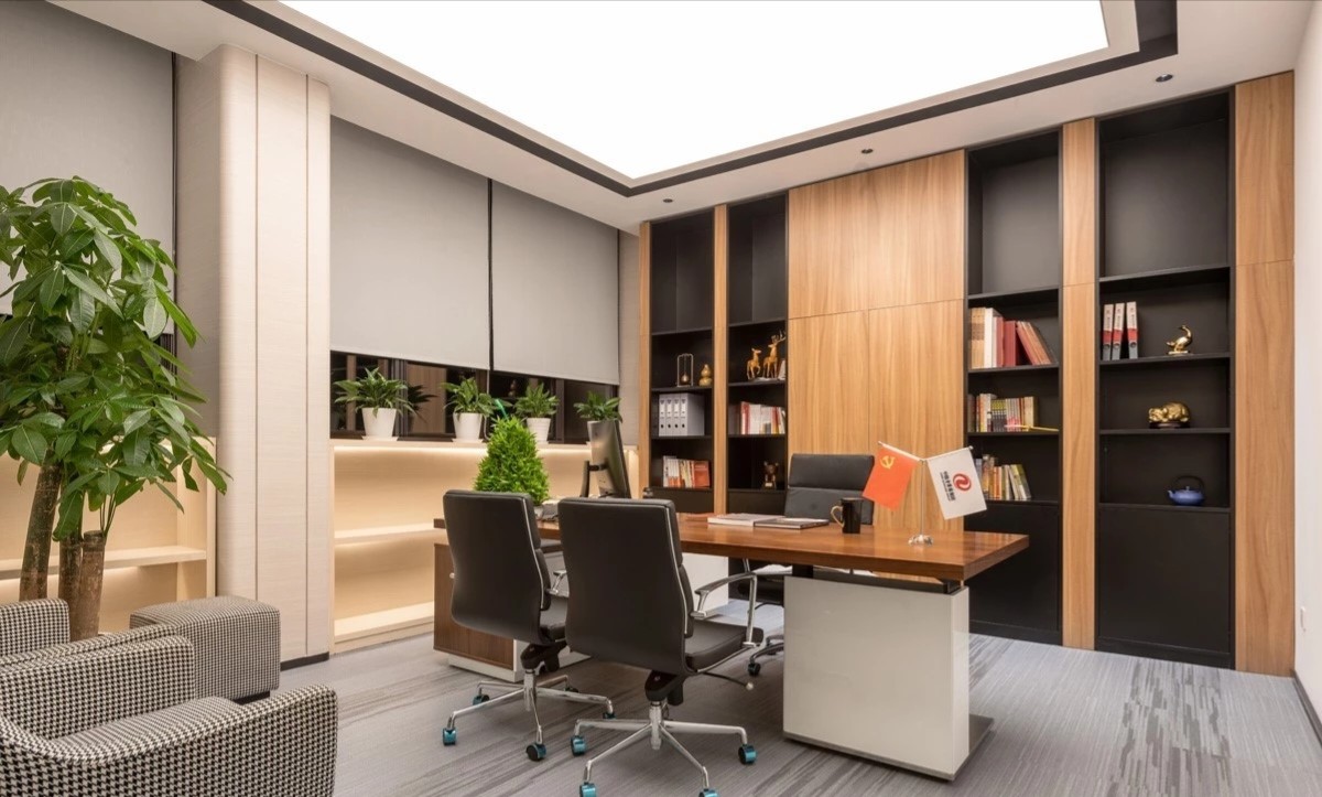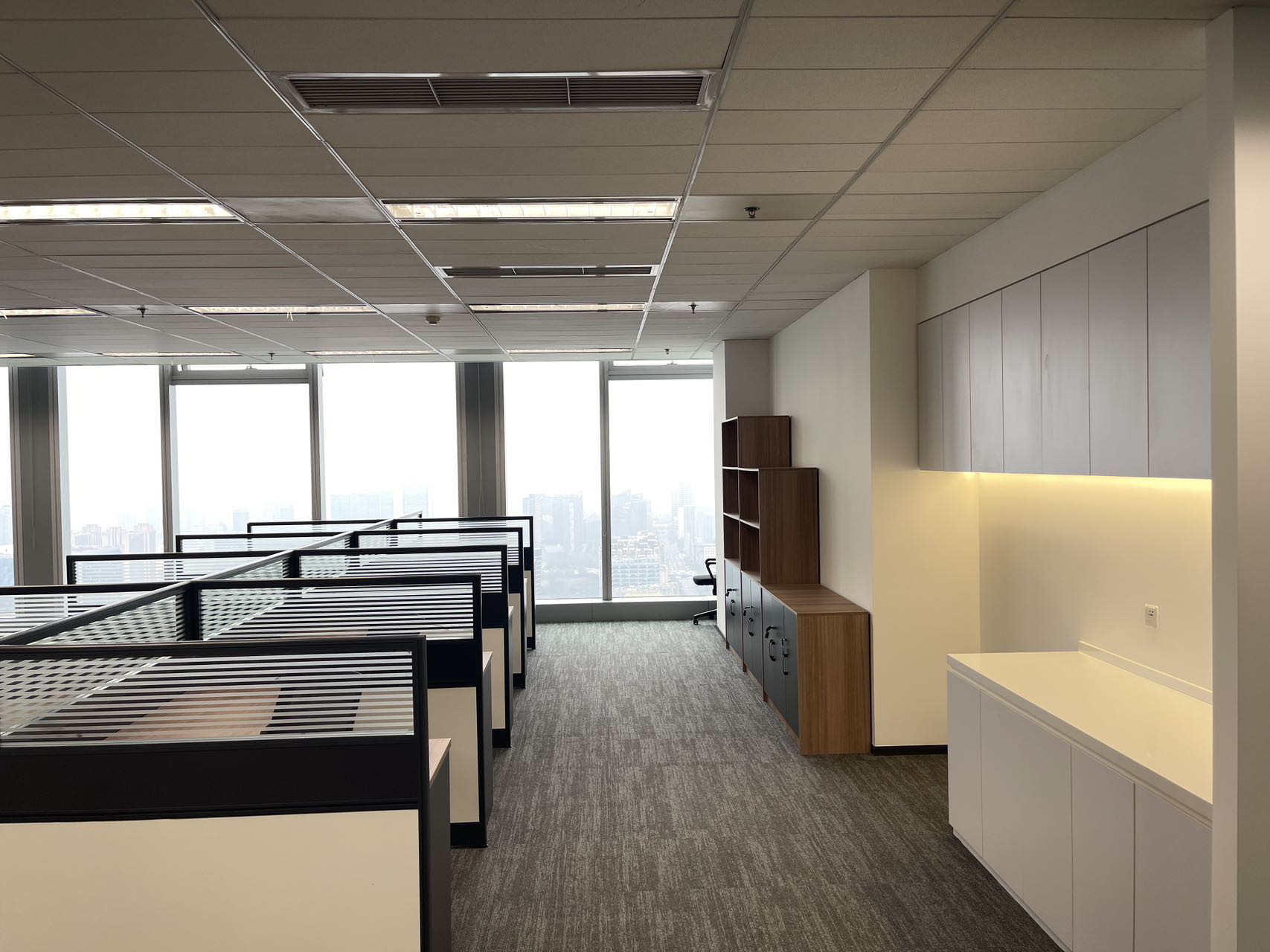 开敞办公区采用线条灯无缝拼接,与室内家具陈列相呼应,强调空间动线,局部区域采用深照型宽光筒灯,保证工作面的照度及均匀度的同时很好的避免了眩光,满足空间视觉舒适度。边柜内部暗藏灯带,丰富空间整体层次,提升空间内在意境。