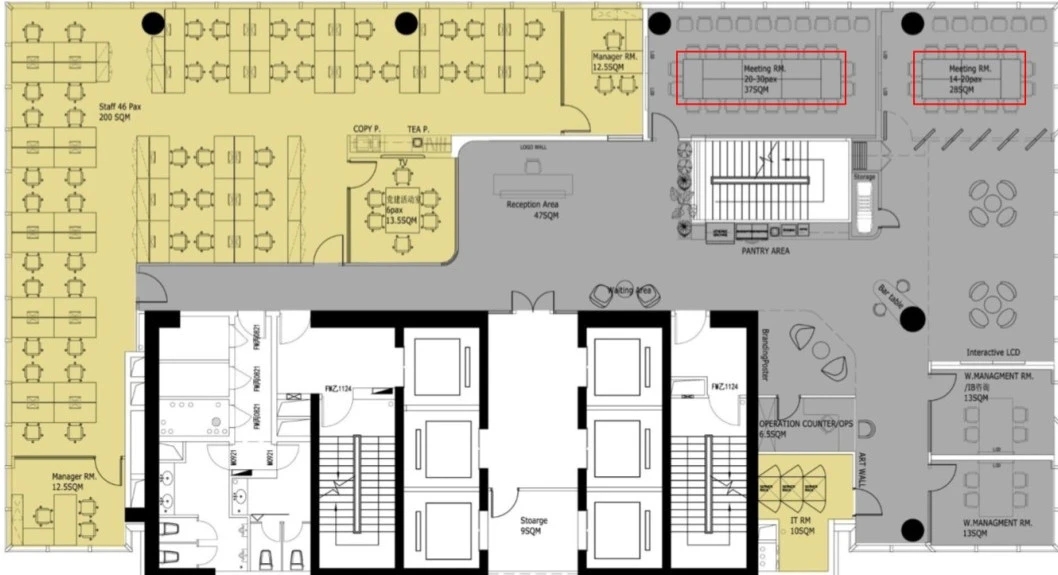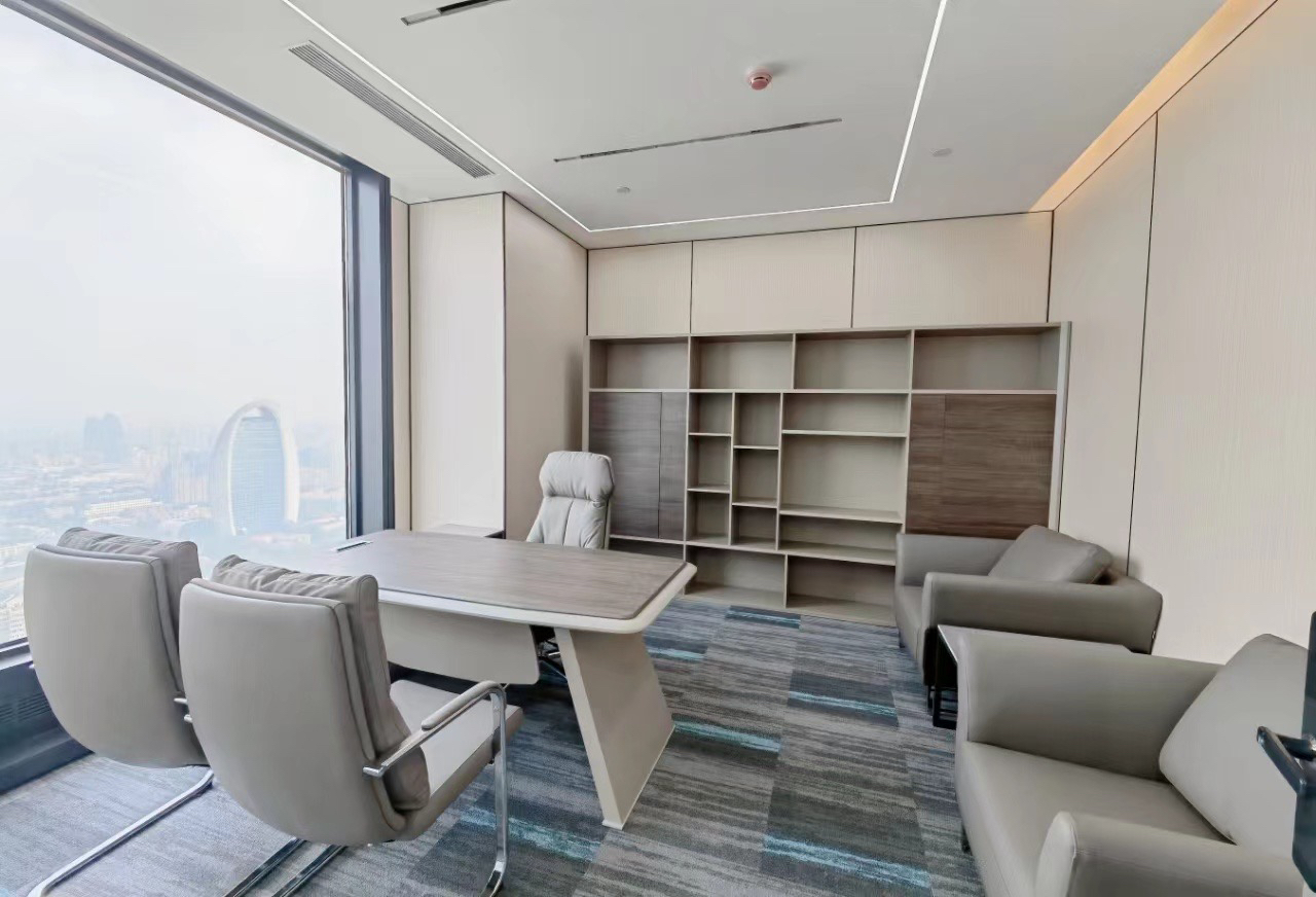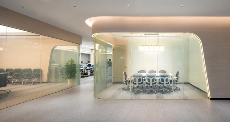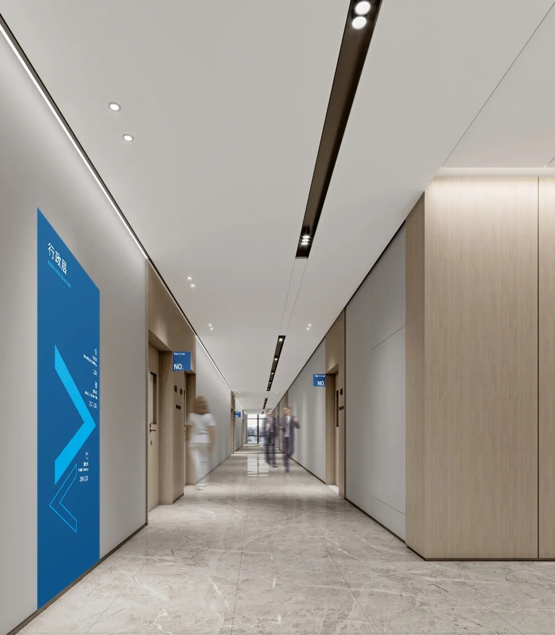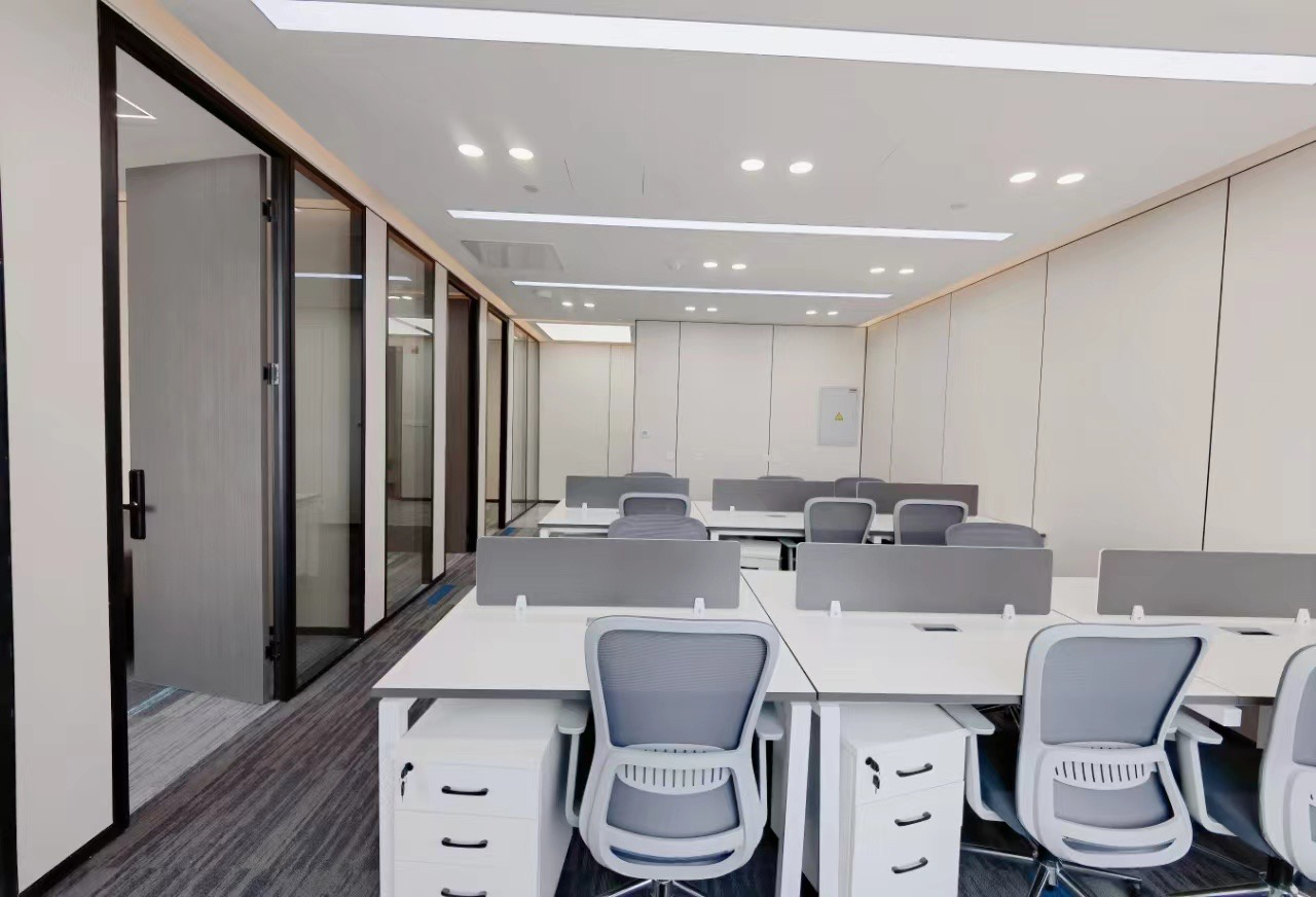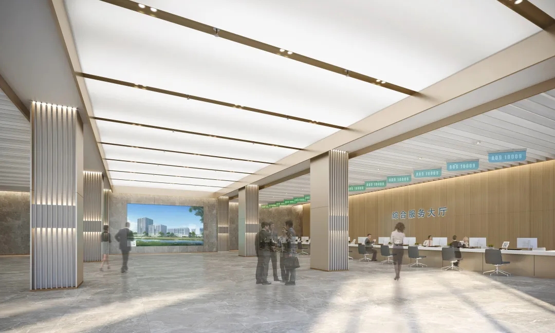 开敞办公区采用线条灯无缝拼接,与室内家具陈列相呼应,强调空间动线,局部区域采用深照型宽光筒灯,保证工作面的照度及均匀度的同时很好的避免了眩光,满足空间视觉舒适度。边柜内部暗藏灯带,丰富空间整体层次,提升空间内在意境。