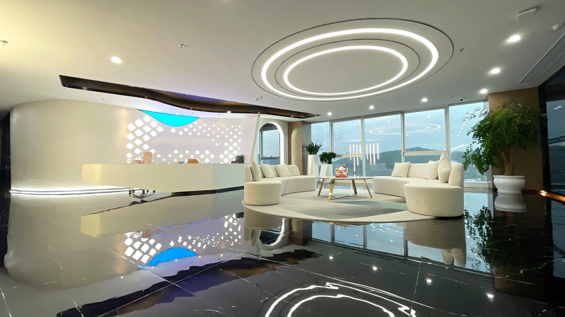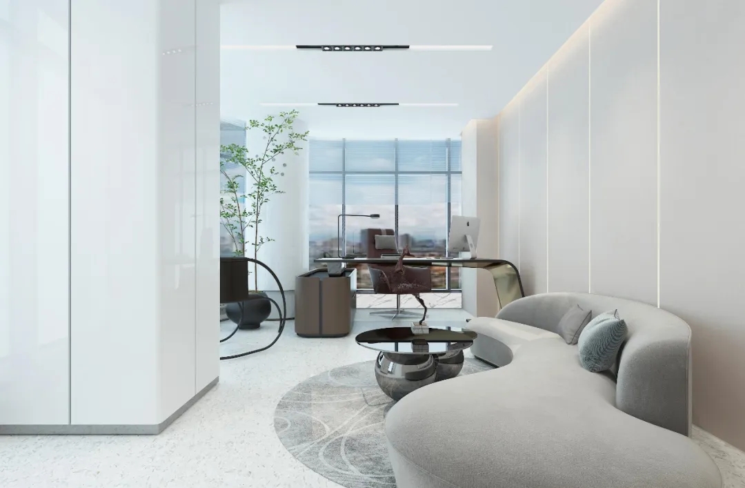 简洁的色彩搭配以灯光凸显空间的科技属性