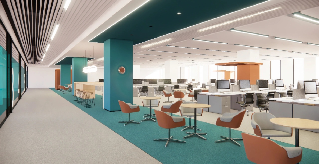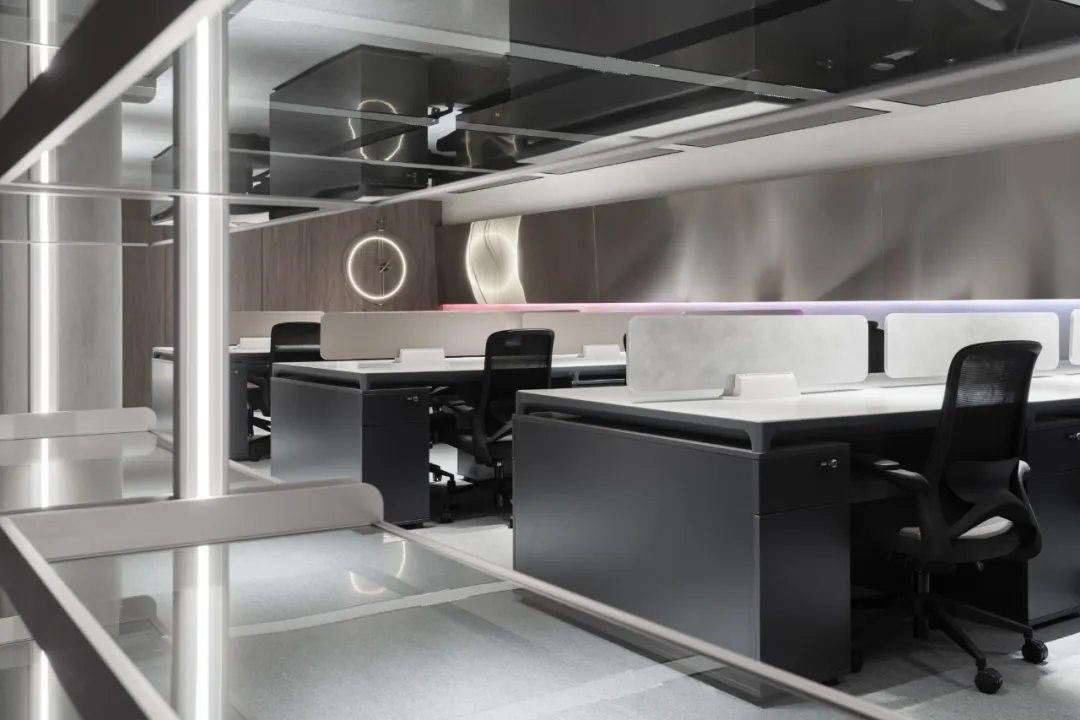 传统办公意识中认为,每个独立的办公区间能使人更专注于工作本身,但人处于封闭空间内的状态往往是消极且自我的,而当人处于集体工作环境内,其竞争意识及积极性会受周边他人的状态影响,从而促使人专注于工作表现。