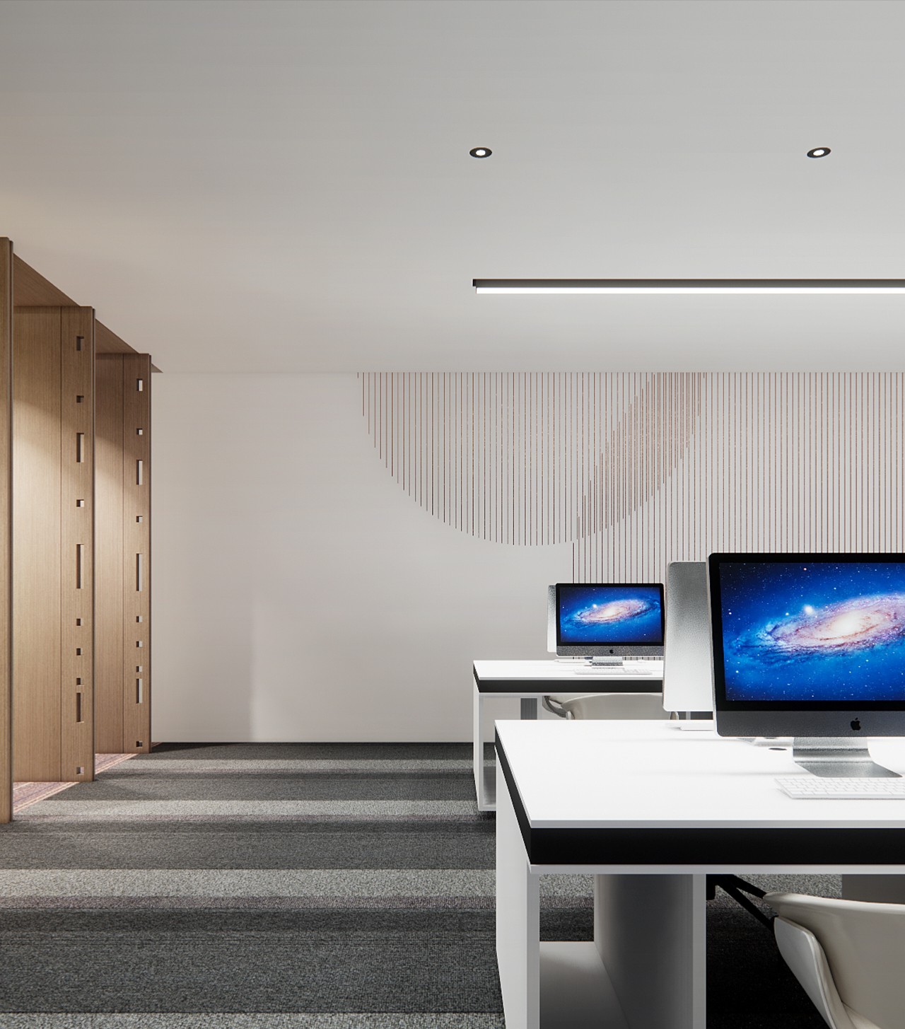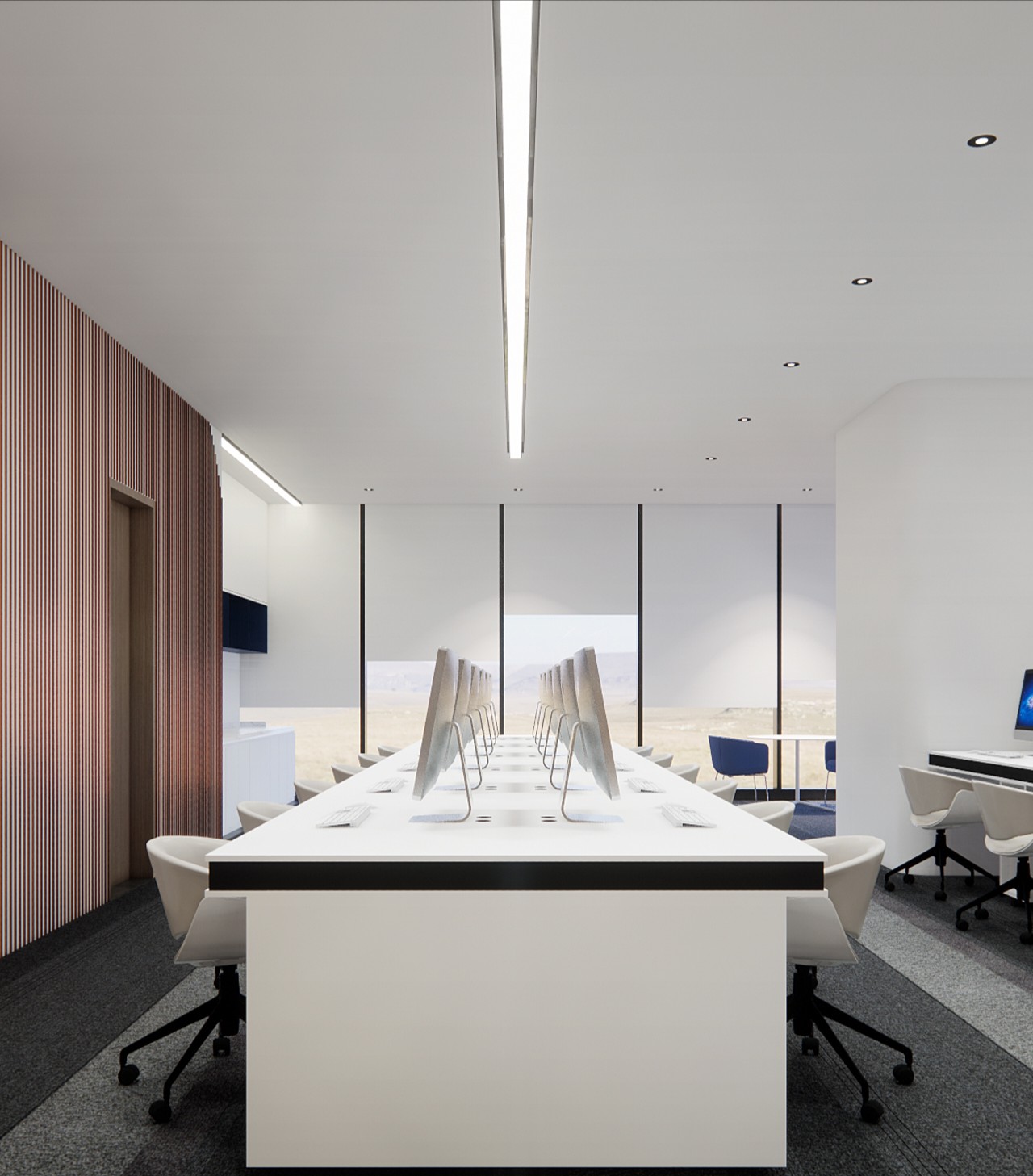 因此在这次设计中,我们希望能够打破传统意义上的封闭式秩序感,创建出自由状态的办公环境。所有人的工作状态都将处于集体的可视范围内,每一个工作区间都为开放式的无遮挡状态,所有的行为规范及秩序性都在同事间的自我约束中产生,从而构成积极化的工作环境。