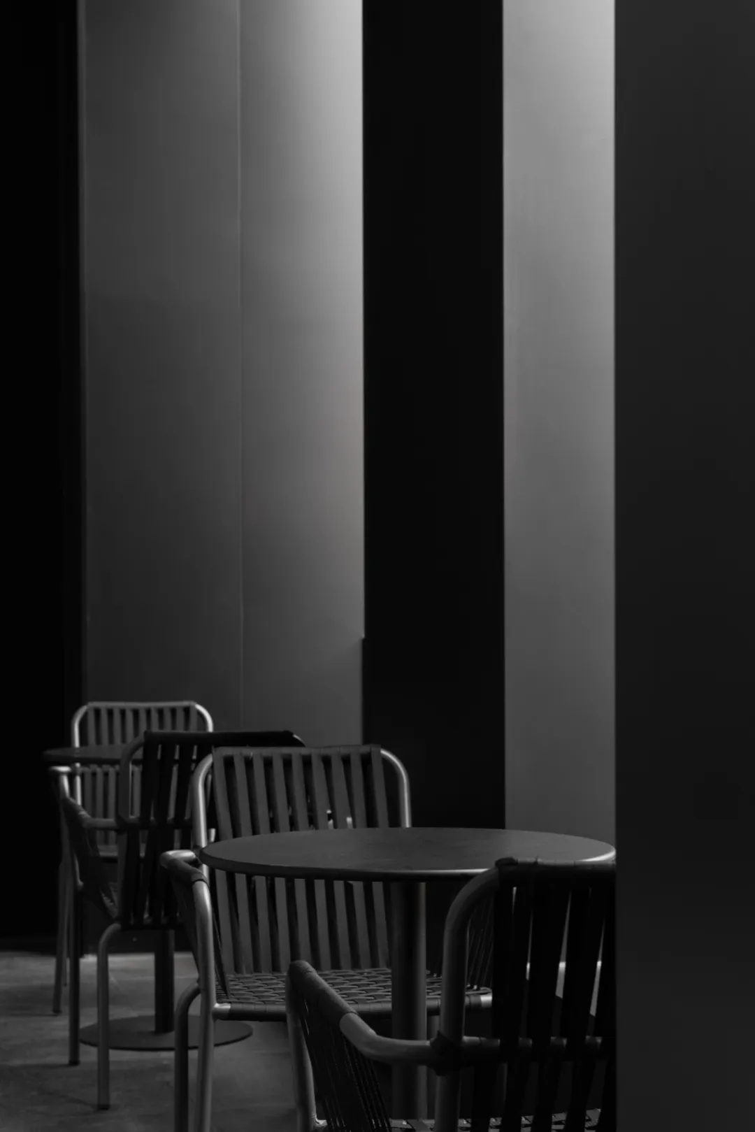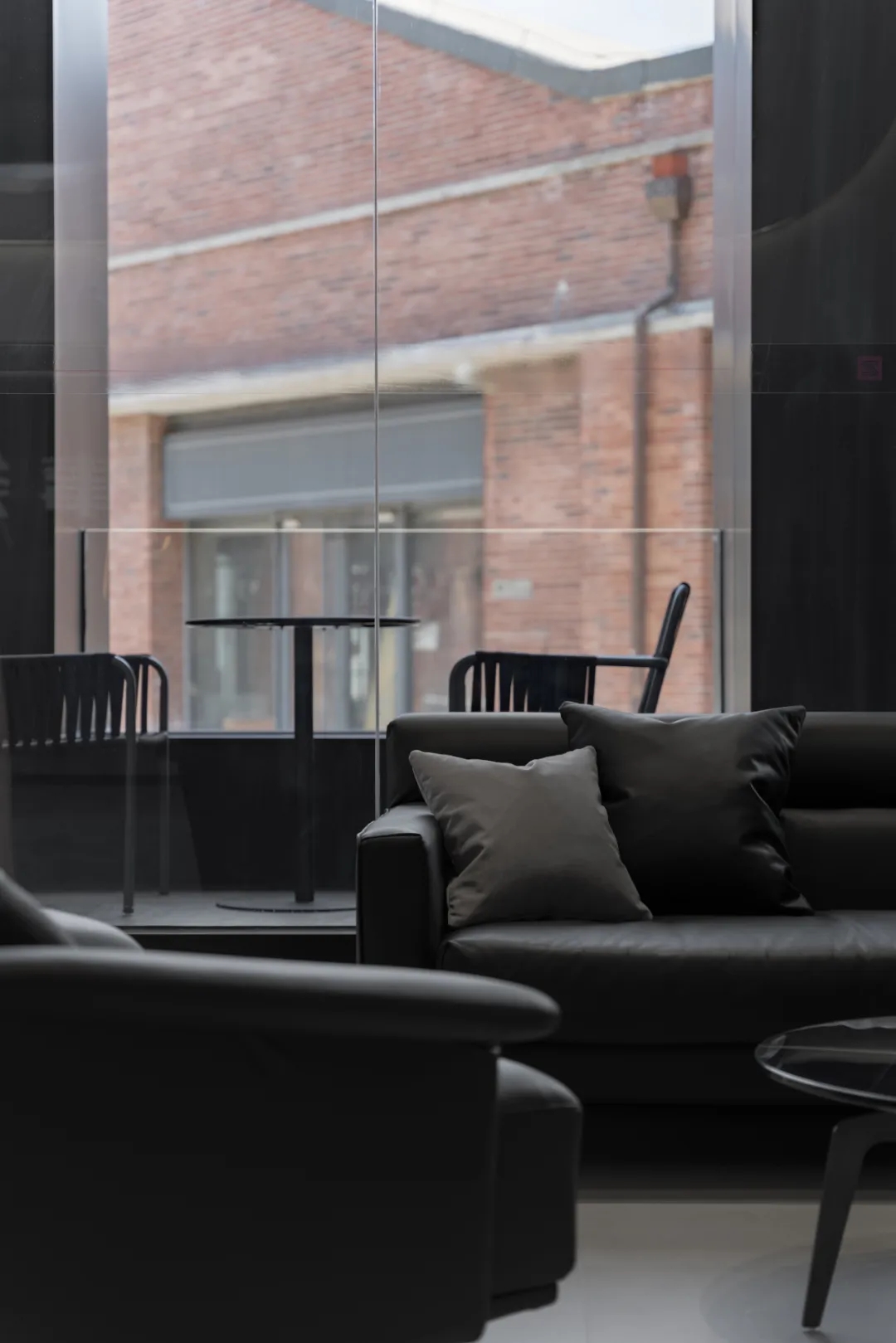 选用超透的亚克力立柱稳固地支撑起了整个桌子,像是幽灵一样,因此空间不会出现闭塞感。