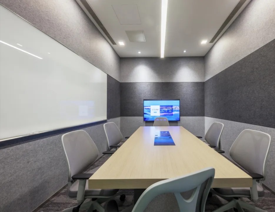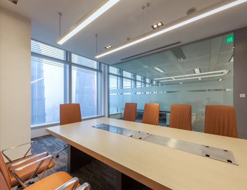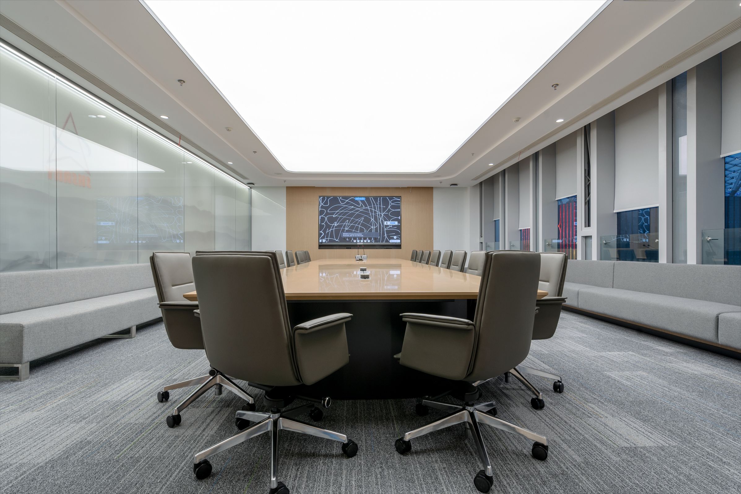 大型会议室在空间打造上,着重烘托公司形象,注重多方会议的使用功能,智能化的灯光运用,打造一个个性有活力有品质的会议空间。