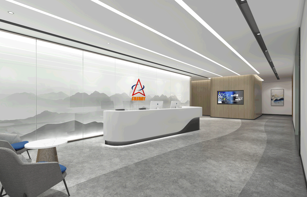 前厅接待区,象征着企业的整体文化与形象,白色为主色调,清冷的大理石材质与柔和光线隐藏其中,通透的背景墙可随意切换,为视线带来视野的纵深感,营造出多维的视觉效果,展示其公司的人文、专业性以及包容性。