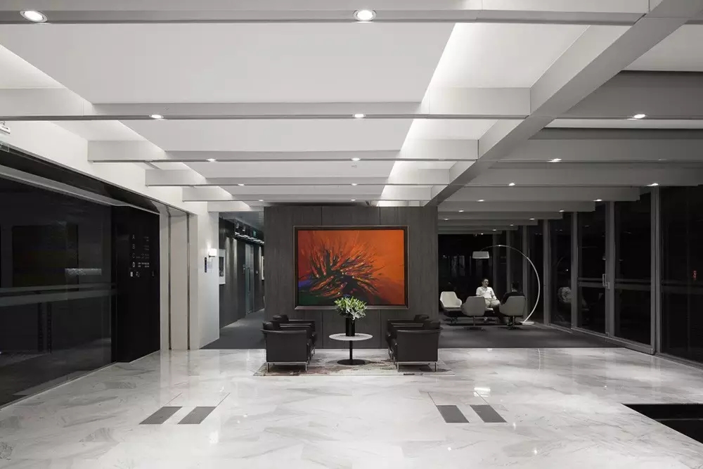还是在色彩上的大胆运用——整体设计基调采用黑色,打破了传统律师行业的特点。但深色在空间中并不显得压抑,反而制造出儒雅的气氛,给人一份安静和信任感。