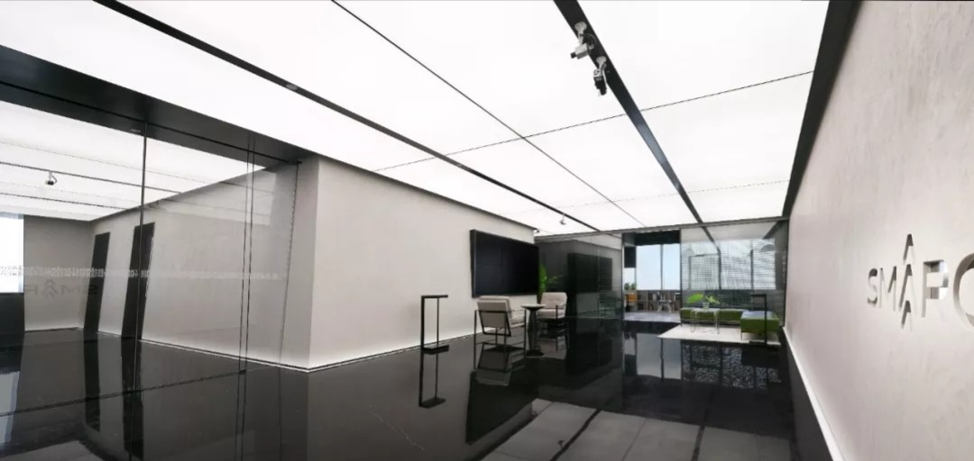 全厅无前台设置,一切均采用智慧设备来进行接待及管理。平面结合到访动线做出对应的斜面设计,无形之中赋予了空间引导性。立面由下而上、有小变大的斜面造型配合整面发光灯膜,也隐喻着艺术和智慧不断向上并永无止境。