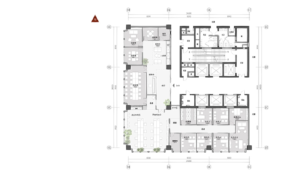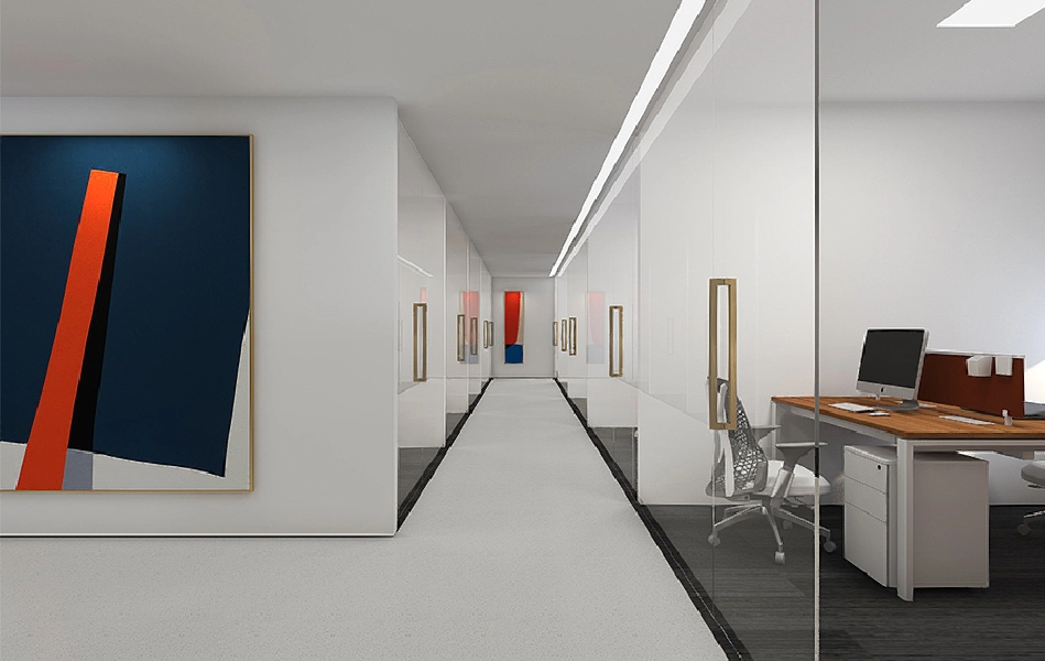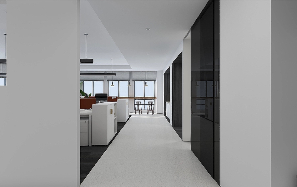 空间风格上,摒弃了一切复杂、炫技、花哨、繁冗的装饰铺陈,目光聚焦在空间本身,白色为主色调,搭配水磨石地面,本色、木色和局部的彩色家具。明净的色彩基调、极简的空间布局,是否也正是呼应了法律人“去伪存真”的本初呢?简约、现代的室内设计改变了律师事务所固有形象。通过建筑语言和开放的空间感去营造摩登的空间气质,集中而多元化的工作空间为当下的需求提供了切实可行的应用。