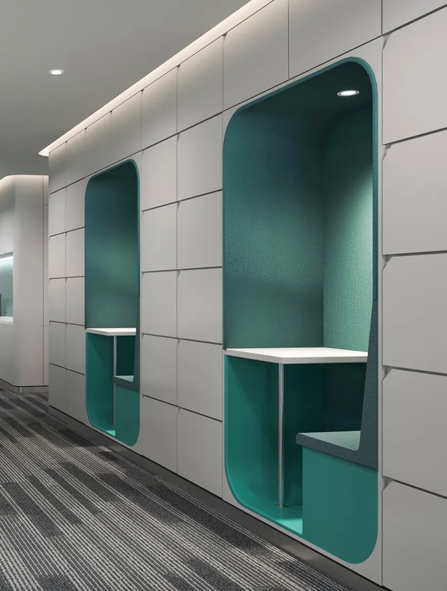 走廊是顺承各局部单元的共享之地,多重维度的关联赋予其多重价值体现。以质感灰白色结构堆叠艺术呈现,各部分体块为衍生空间审美有序铺陈,留痕于此,孕育个人价值茂然新生。