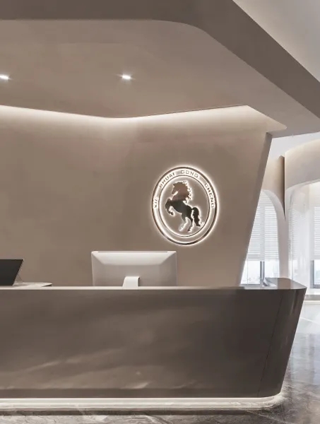 落脚于空间的始端,前台展现出稳重严谨之姿态,无需繁杂装饰,明晰清朗的线条组合引导而成视觉动向,置身于此,使命之感油然而生,聚焦起磁场宏大的精神场域。
